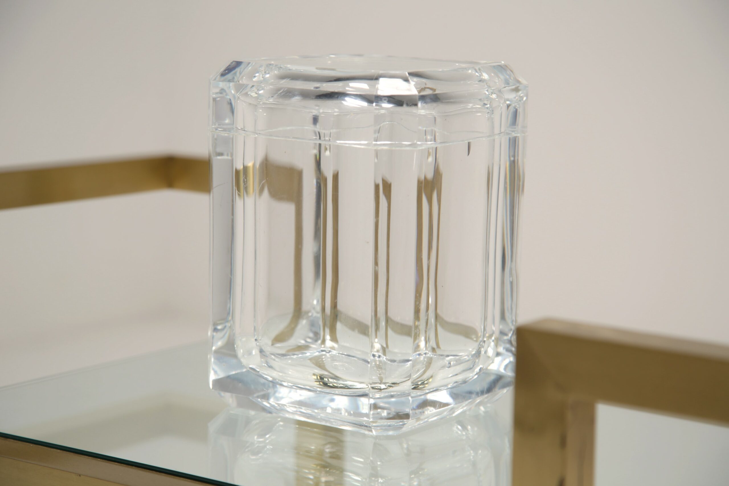 Introducing a true gem from the mid-century modern era, the Vintage Alessandro Albrizzi Lucite Faceted Ice Bucket. Crafted with exquisite attention to detail, this ice bucket is a testament to the innovative design principles that defined the era.