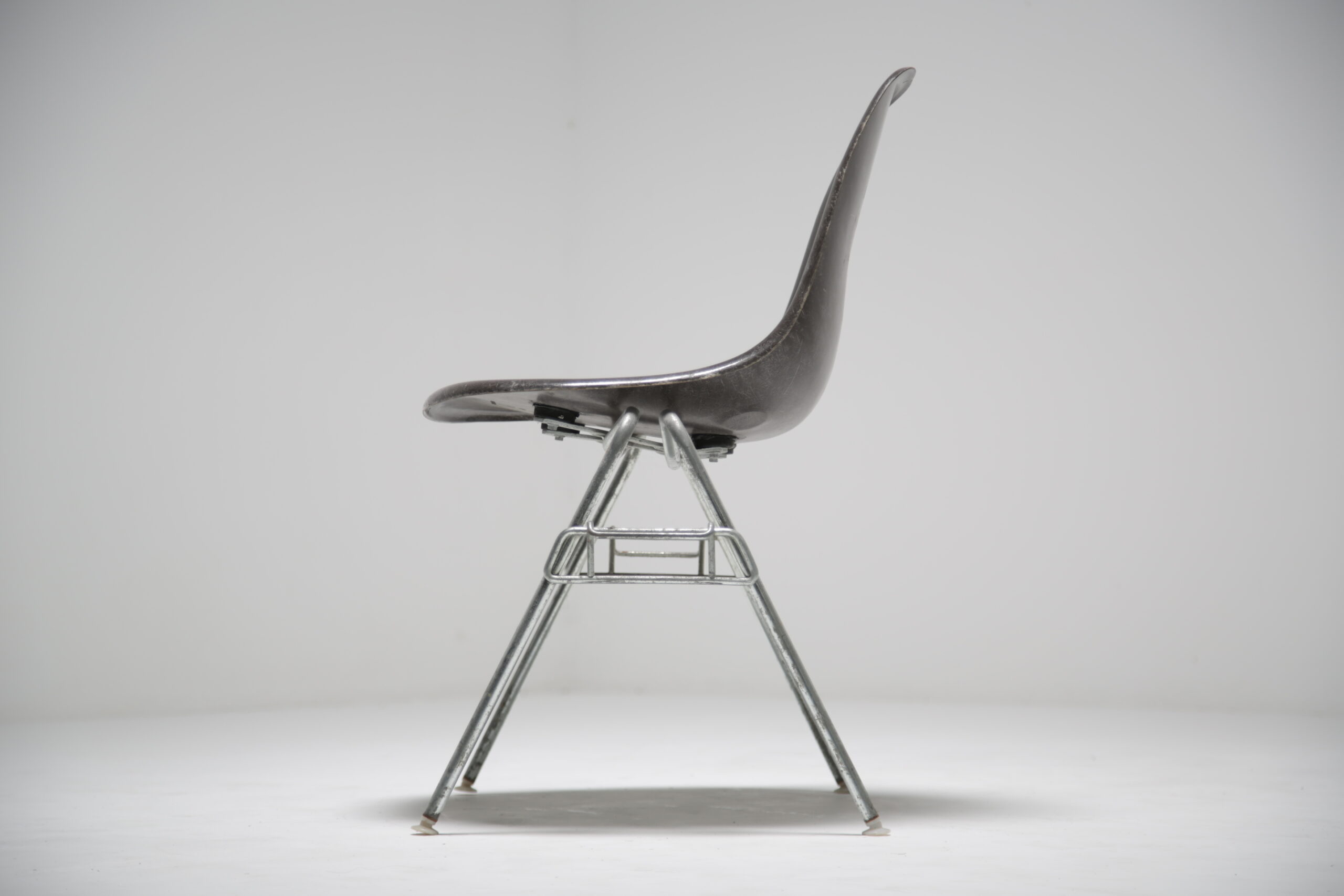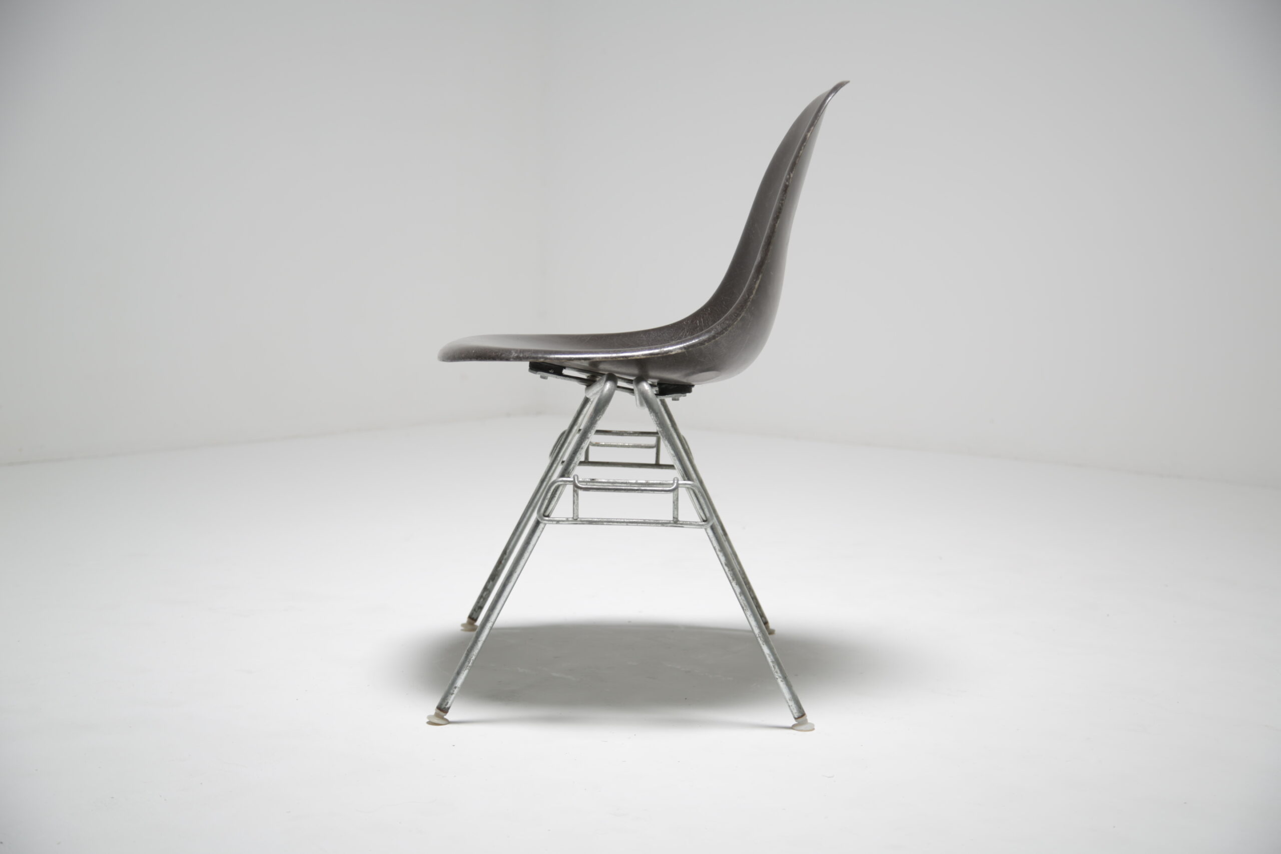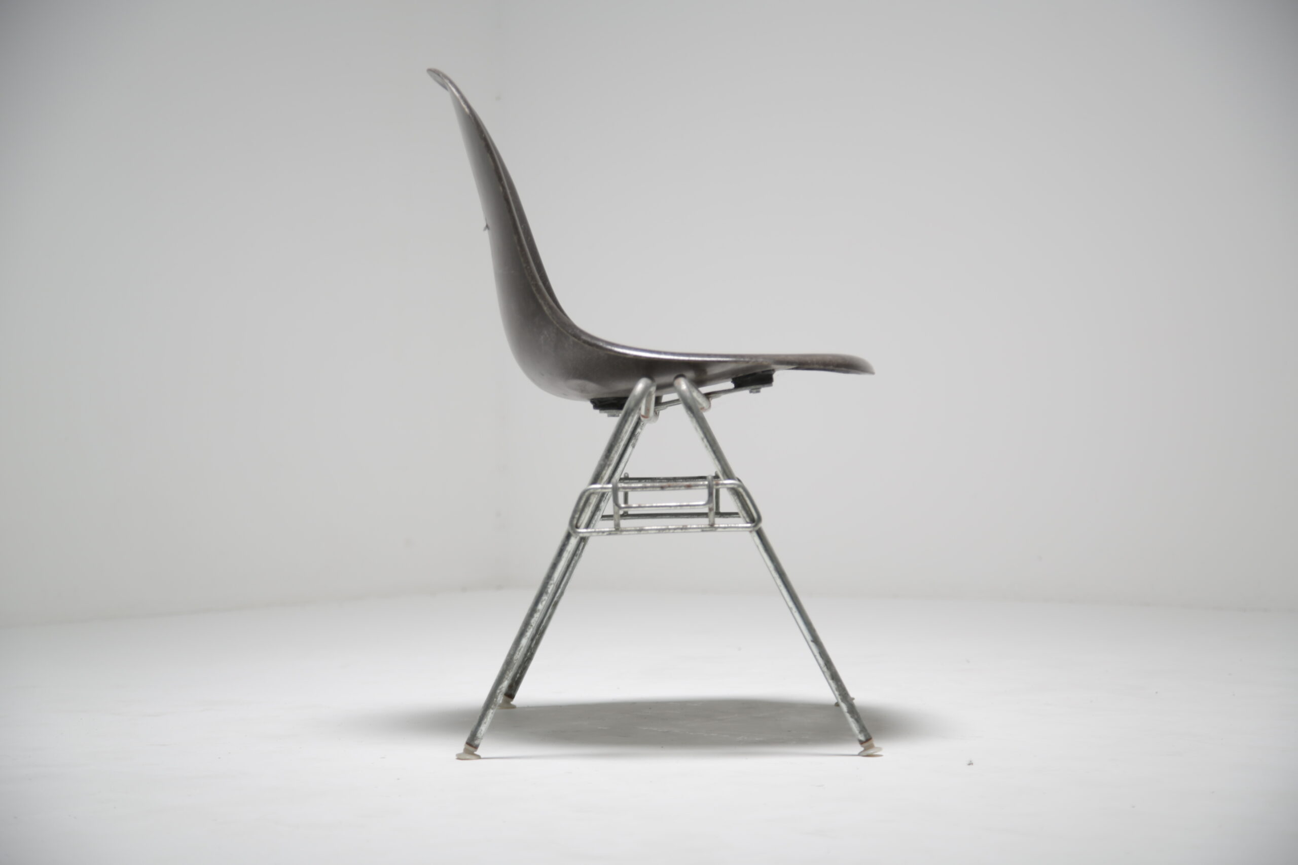 Vintage Grey Stacking Chair – Style, functionality and innovation, Charles and Ray Eames where certainly ahead of their time when it came to seating and is still iconic today. DSS, which stands for “dining side stacking,” encapsulates the essence of versatile seating. Its sleek chrome frame base combined with a seat in fiberglass not only adds a touch of modern elegance but also provides robust support that ensures lasting durability.