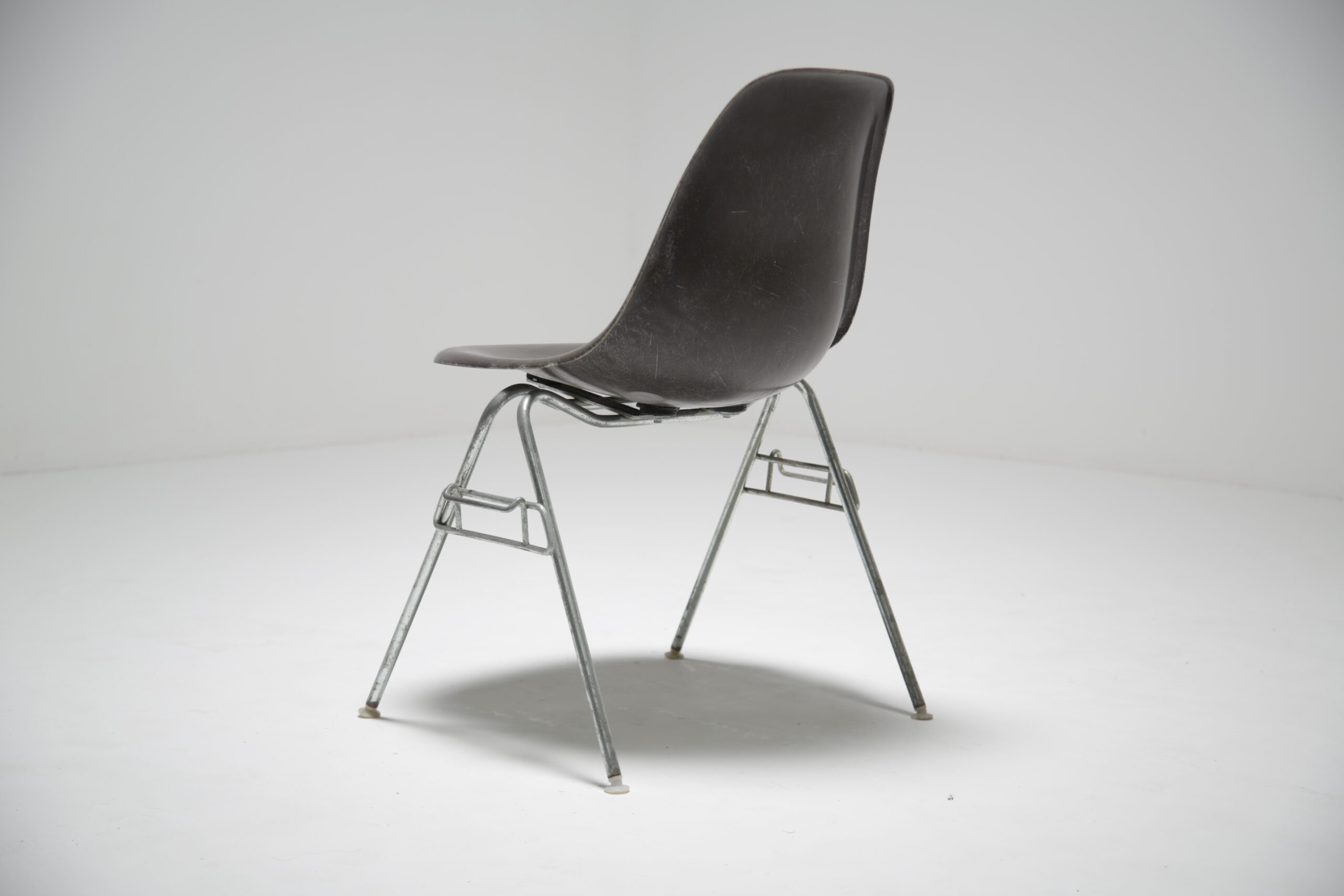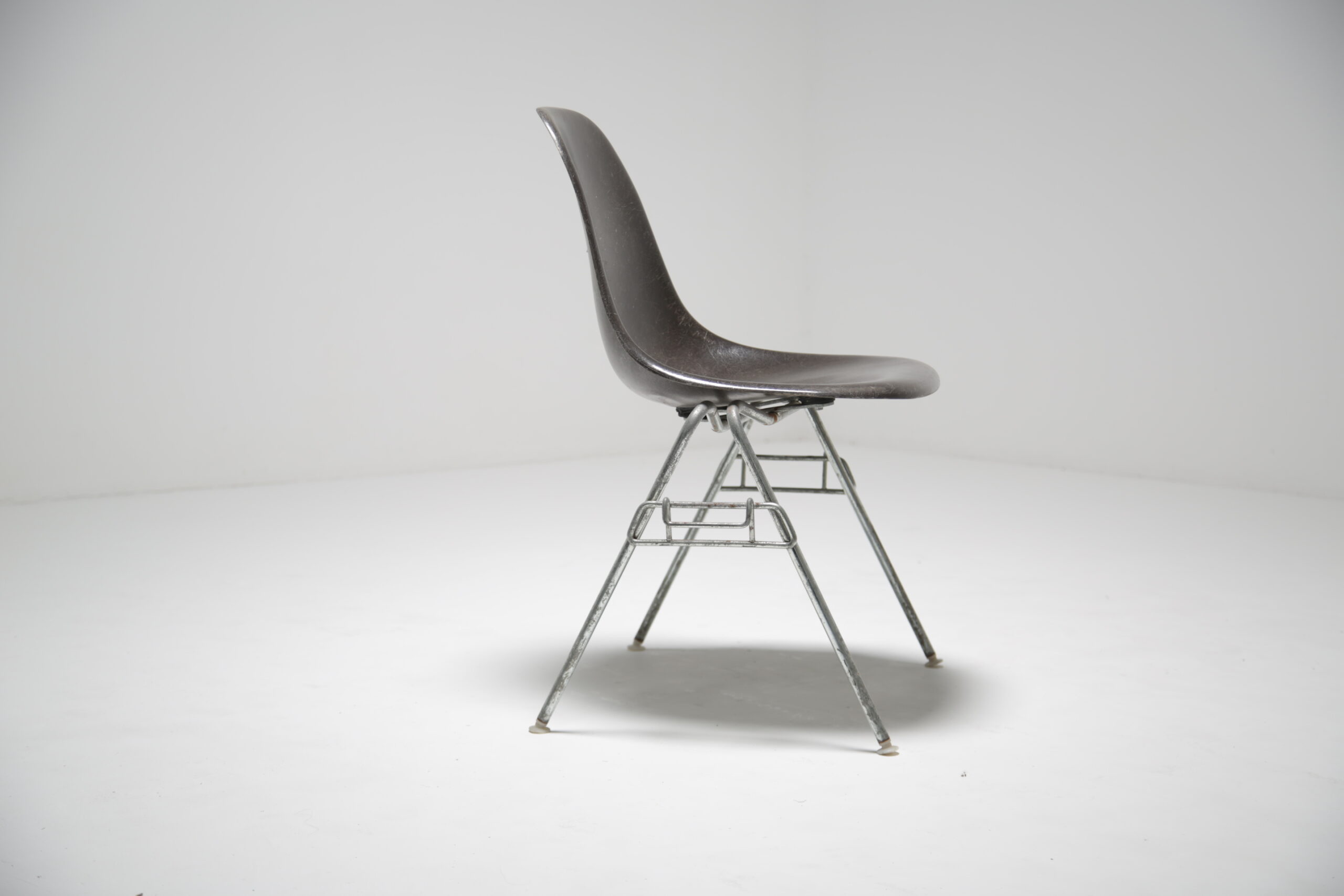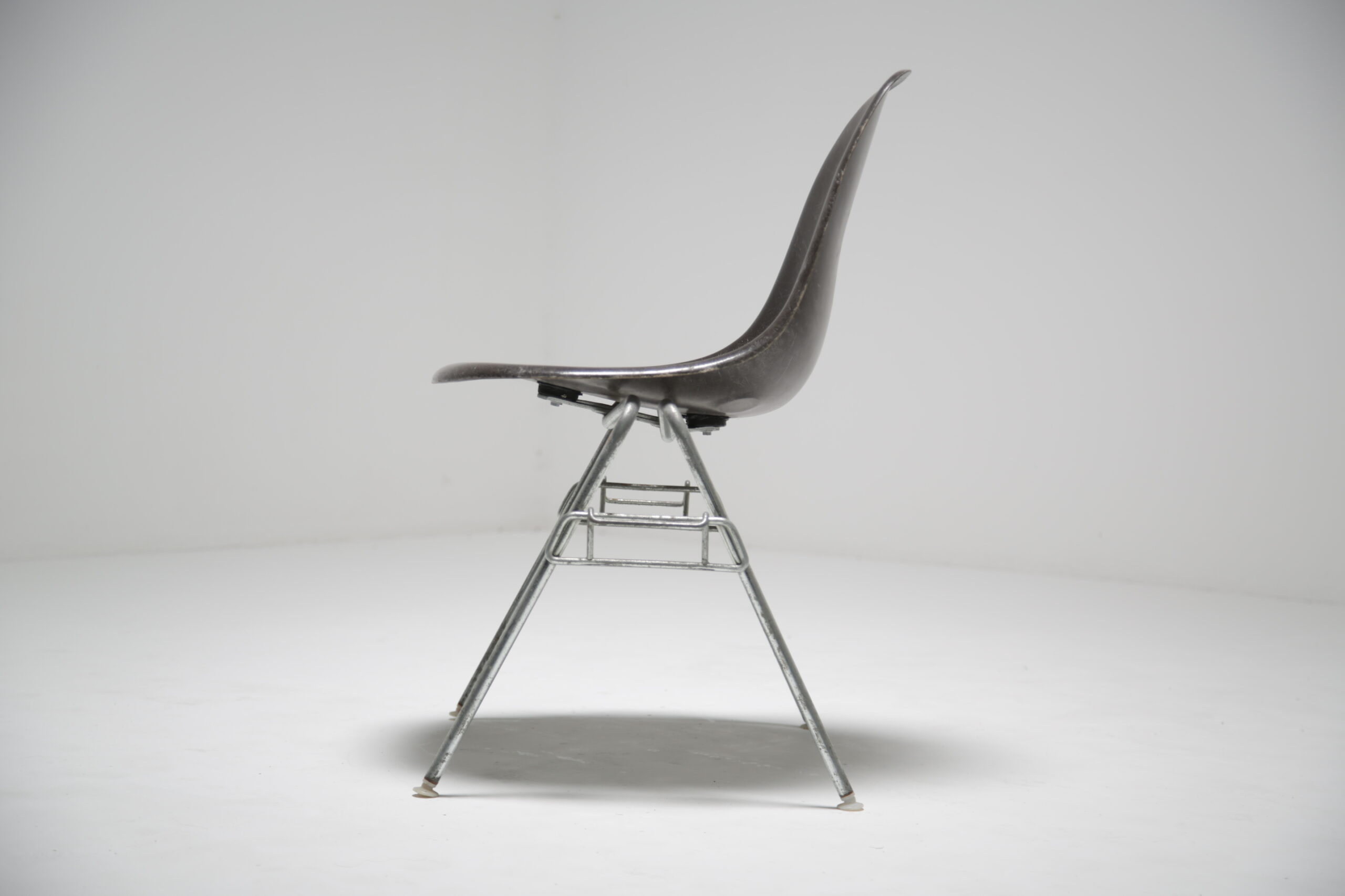 Vintage Grey Stacking Chair – Style, functionality and innovation, Charles and Ray Eames where certainly ahead of their time when it came to seating and is still iconic today. DSS, which stands for “dining side stacking,” encapsulates the essence of versatile seating. Its sleek chrome frame base combined with a seat in fiberglass not only adds a touch of modern elegance but also provides robust support that ensures lasting durability.