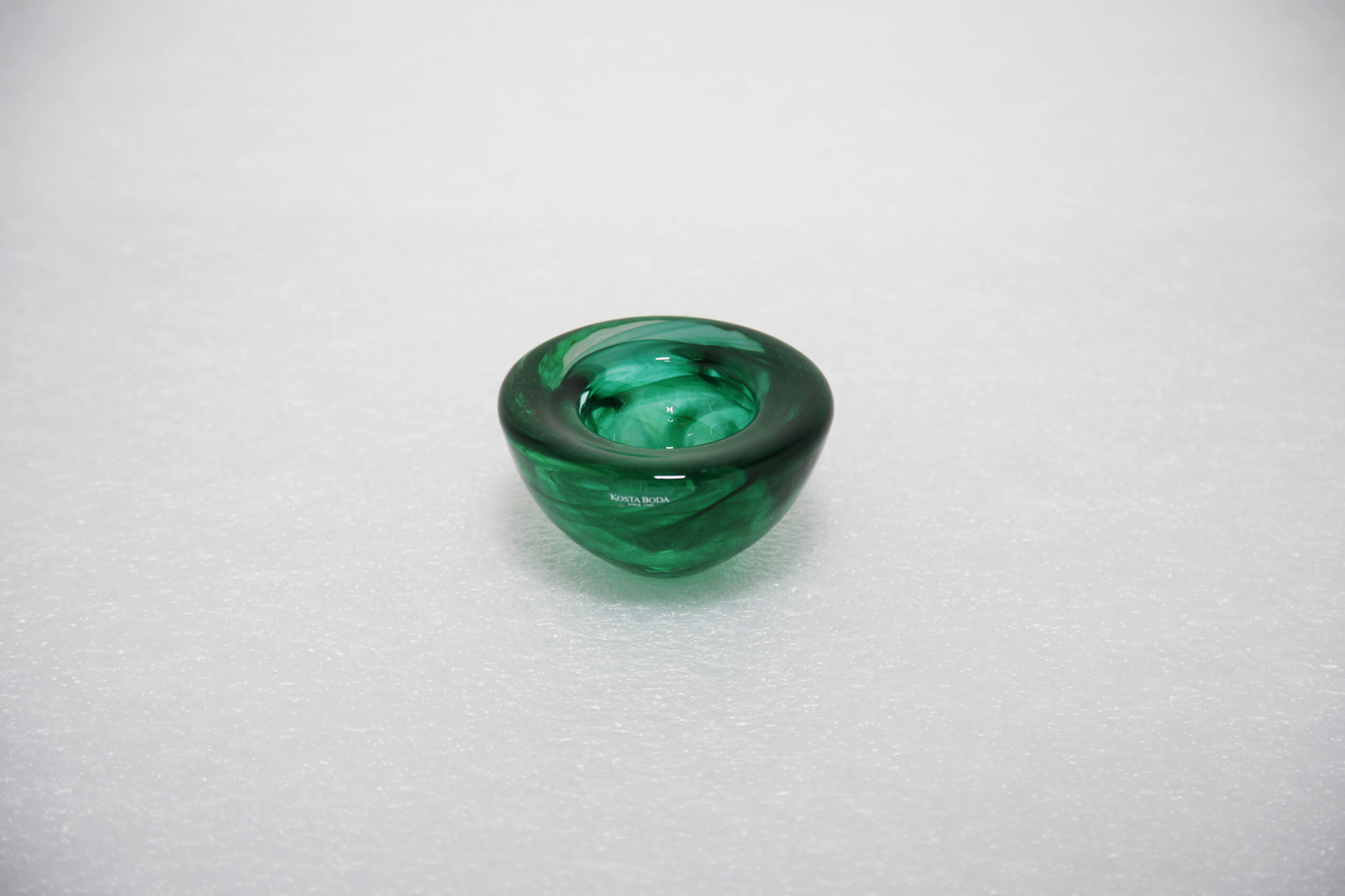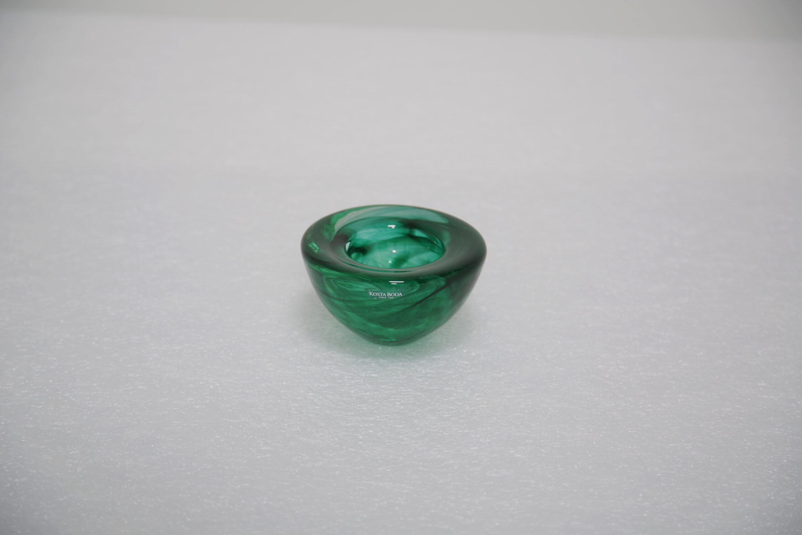 The deep emerald tone combined with the swirling interior pattern creates a striking visual effect, particularly when illuminated by candlelight. Elegant yet expressive, this piece reflects the artistic approach of Anna Ehrner and the quality craftsmanship of Kosta Boda. Perfect as a standalone object or styled within a glass collection, it adds a touch of sculptural sophistication and atmospheric lighting to any setting.