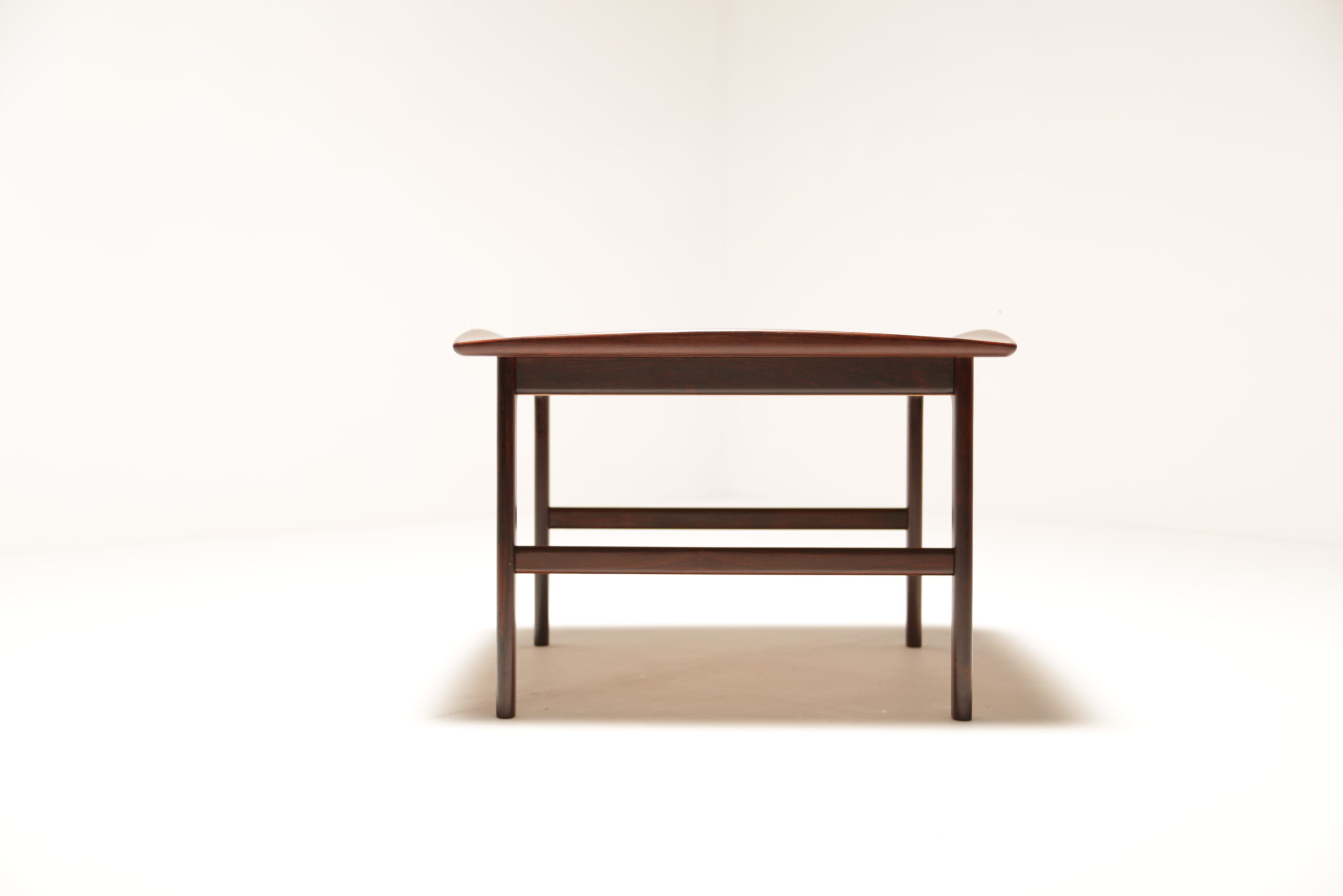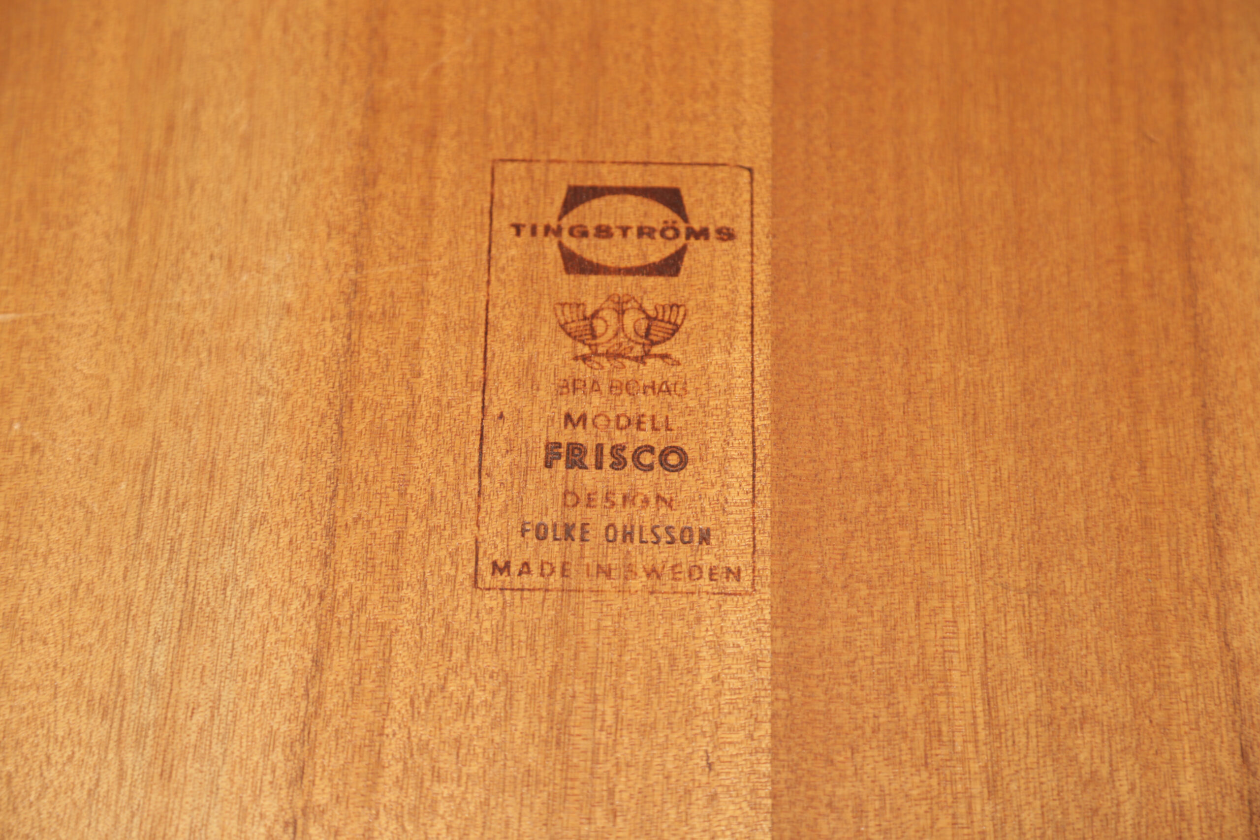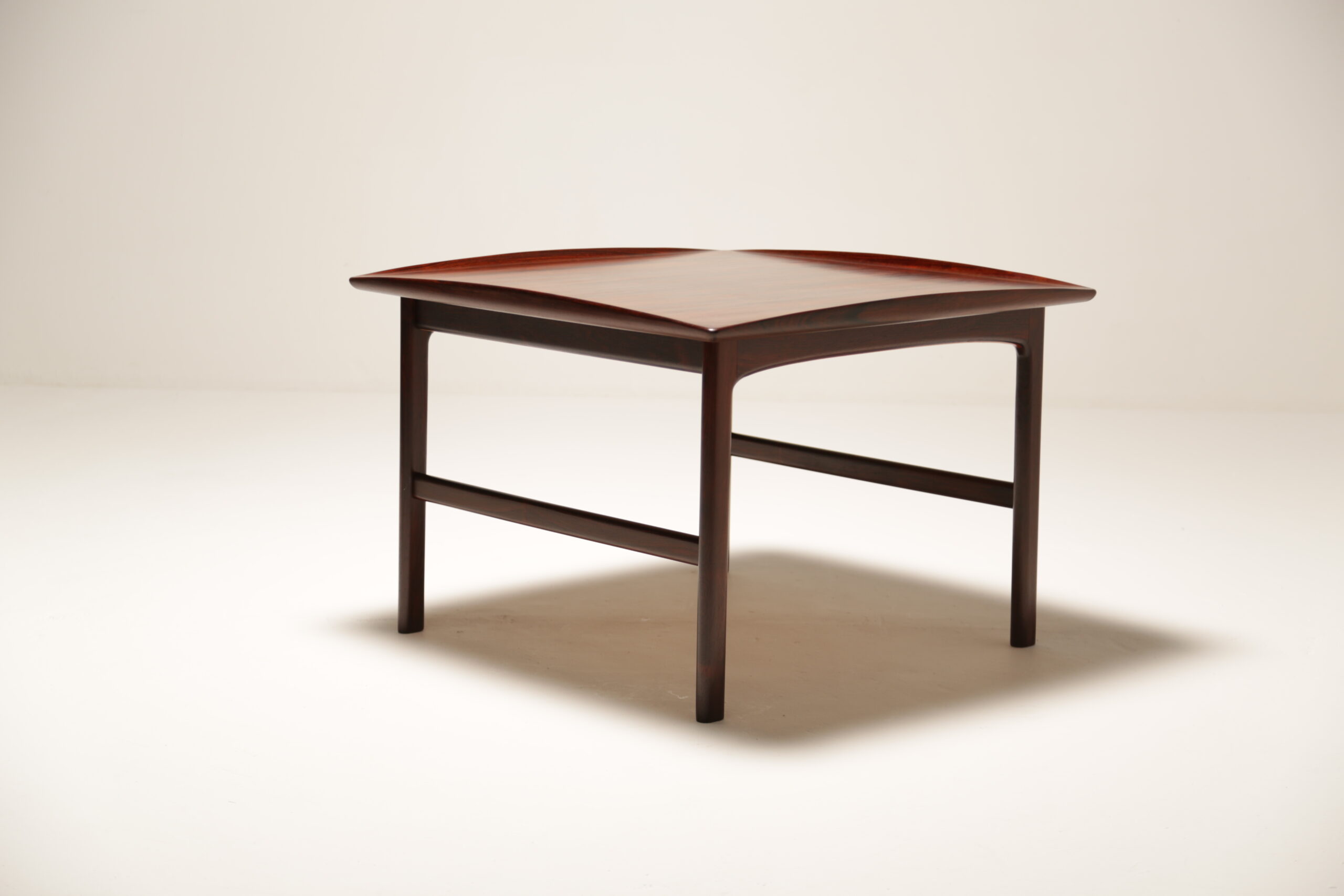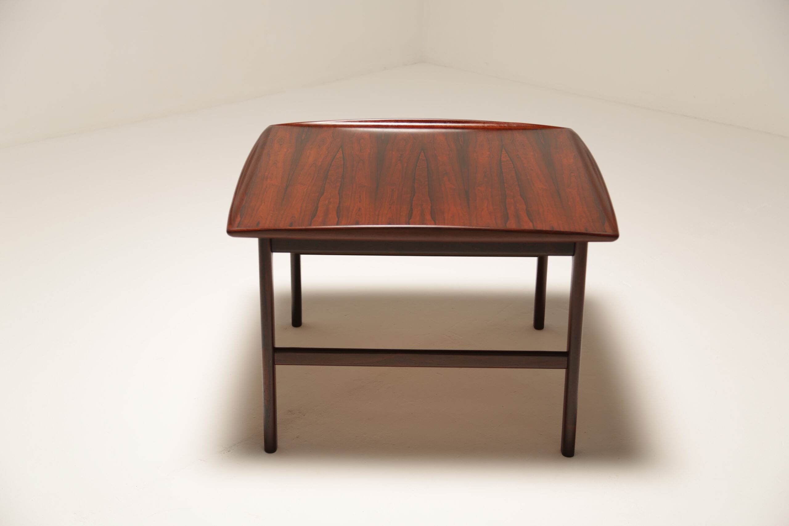 Designed by Folke Ohlsson and manufactured by Tingstroms, Sweden – This is a stunning example of a neat rosewood coffee table. The top features a raised lip which is a nice design. The rosewood grain is deep and clear throughout the table. The table is also stamped underneath. Perfect as a coffee table or as an end table.