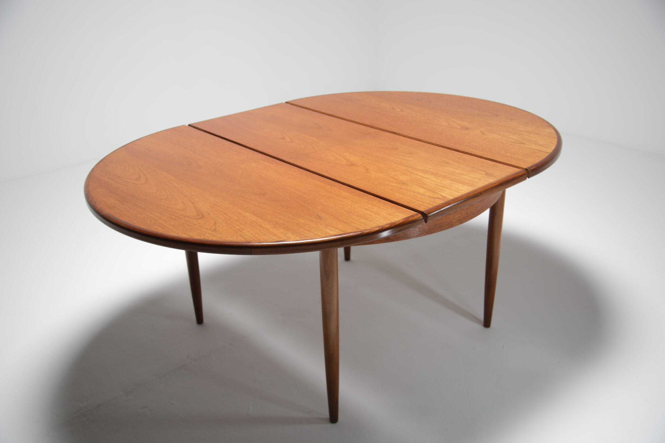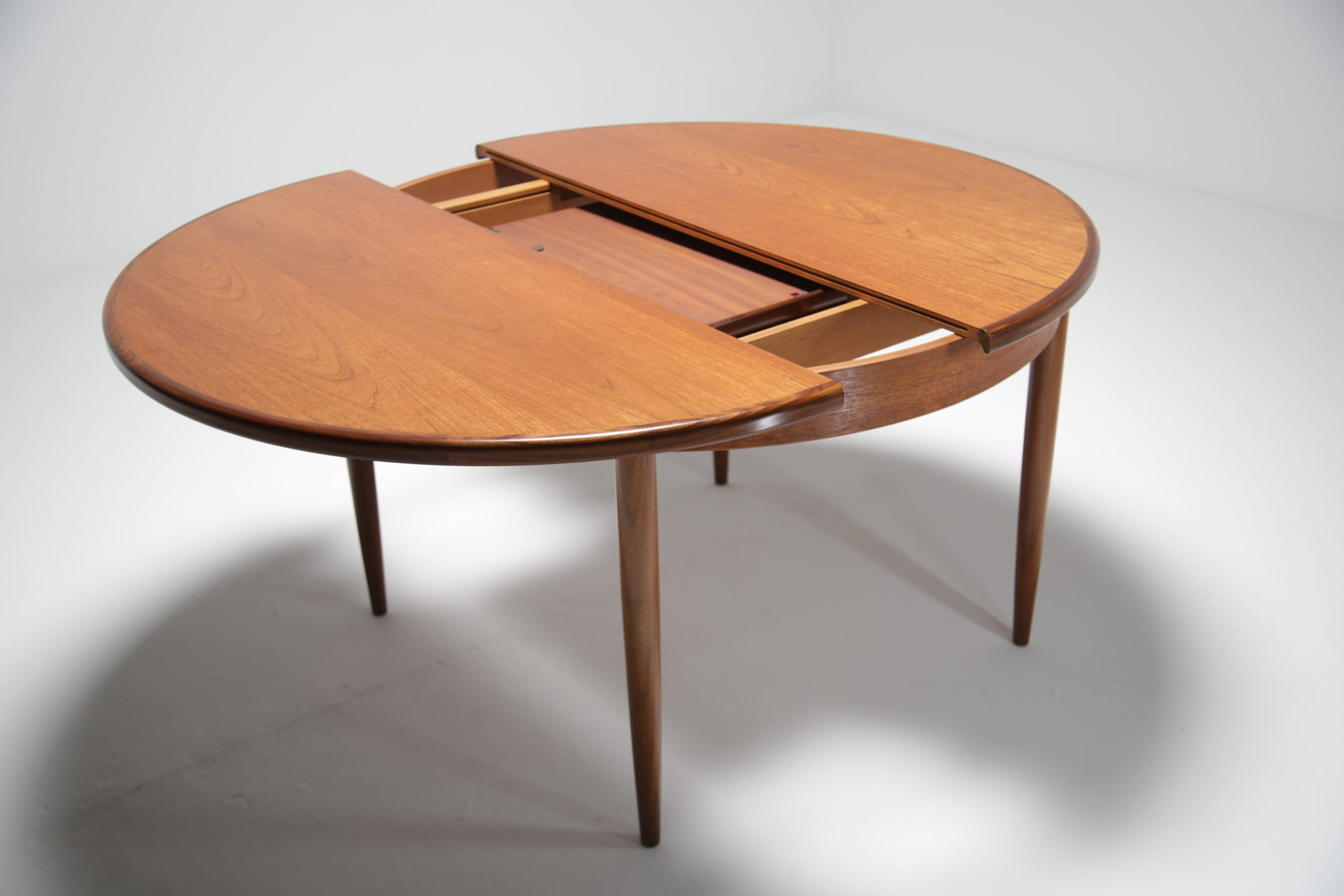 This G Plan Fresco dining table exudes luxury, design, sophistication and style. The circular shape adds a touch of elegance and the teak grain is simply stunning, making it the perfect centerpiece for any dining room. Not only is it visually striking, but its cleverly designed butterfly leaf extension allows for versatility and practicality, making it perfect for hosting intimate dinner parties or large family gatherings. The fully restored condition ensures that this table will last for many years to come, becoming a treasured piece in your home. Imagine the memories you’ll make gathered around this beautiful table, enjoying delicious meals with loved ones. This is truly a piece that will elevate any dining space and make a statement in your home.