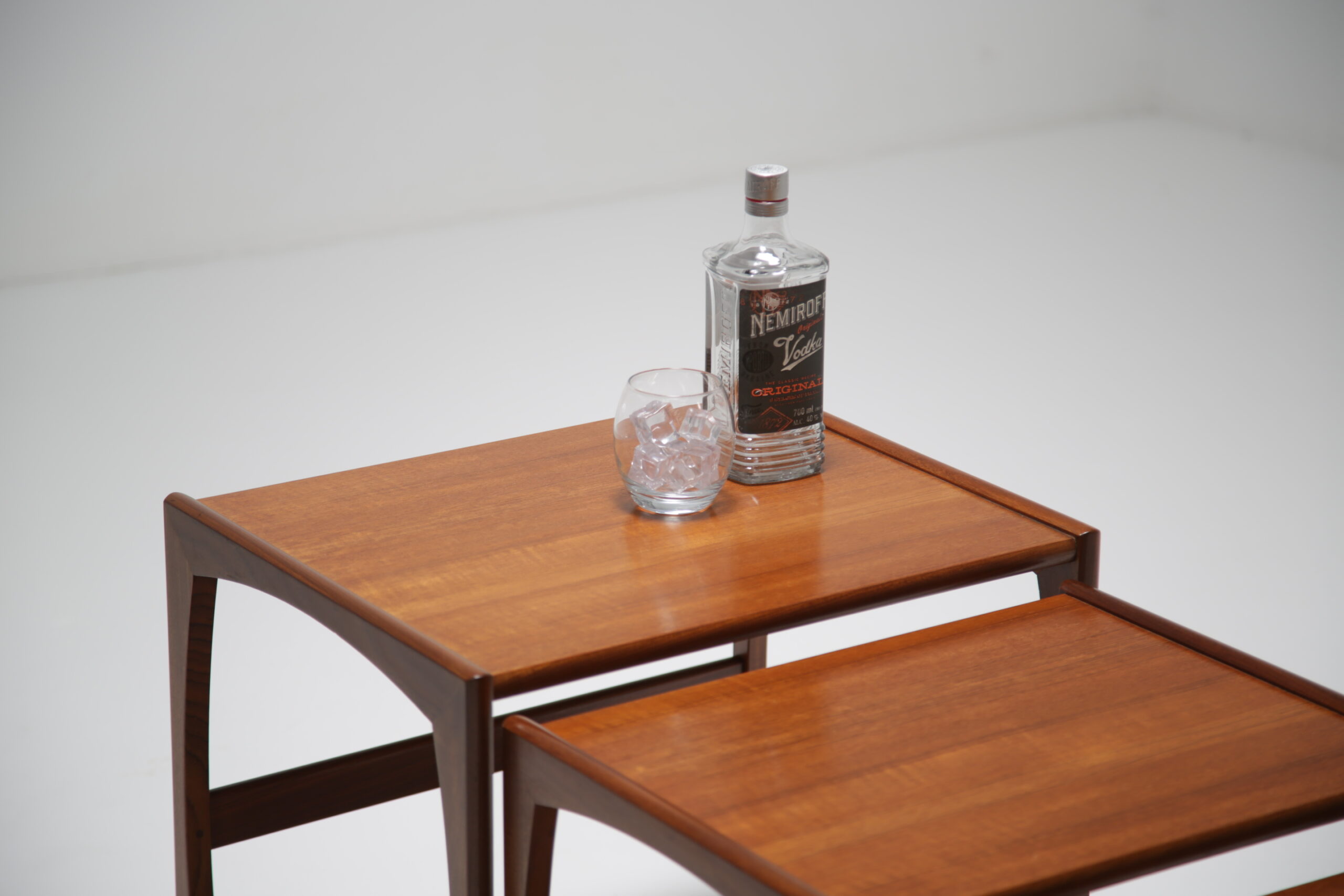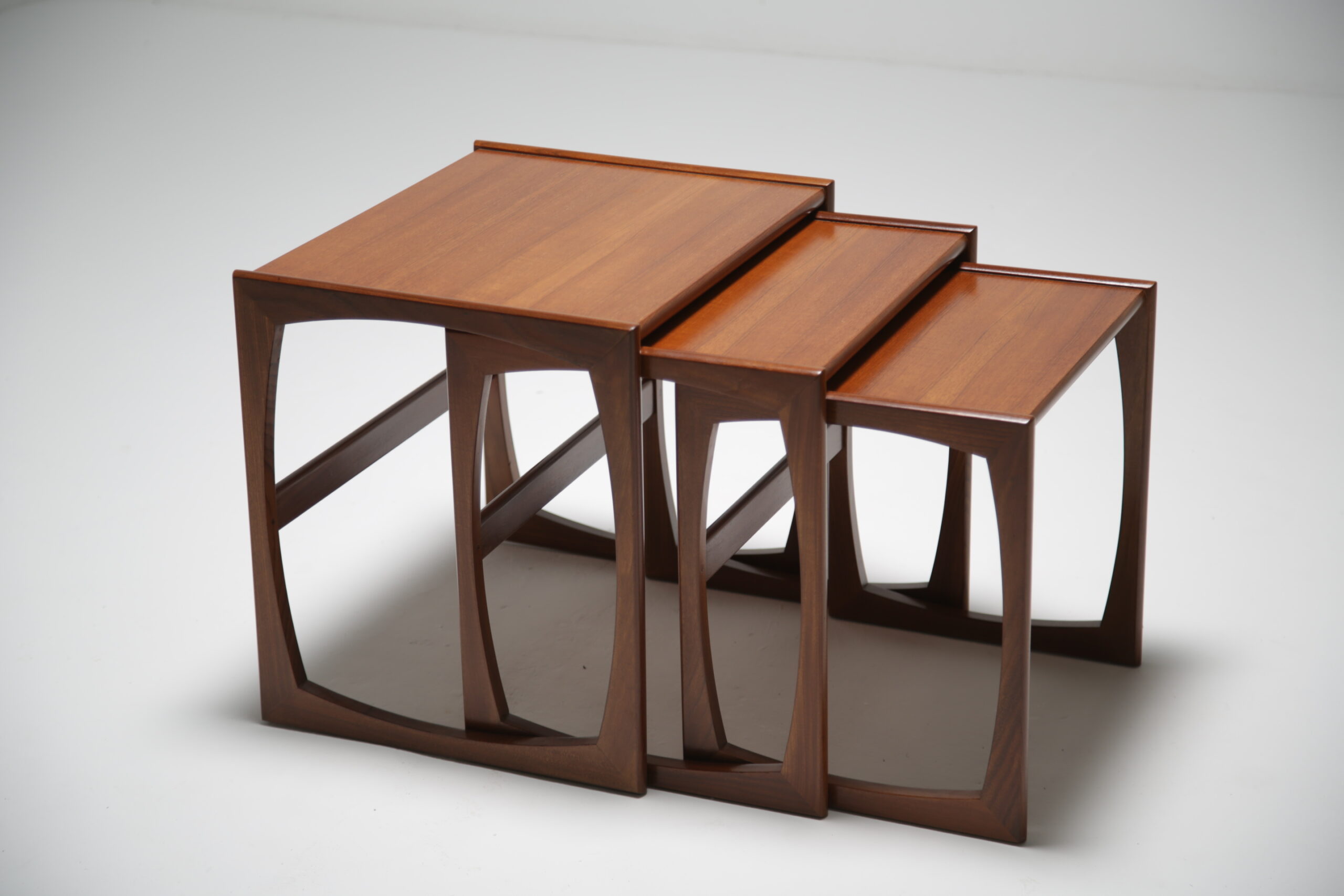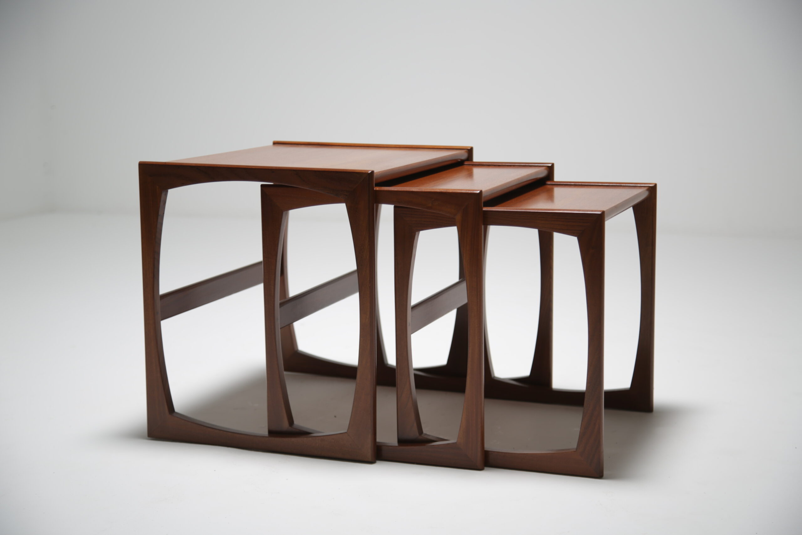 Crafted from high-quality teak, these tables showcase the timeless appeal of mid-century modern aesthetics. The warm, rich tones of the wood add a touch of elegance to any interior space, while the sleek lines and clean angles epitomize the iconic G Plan design.