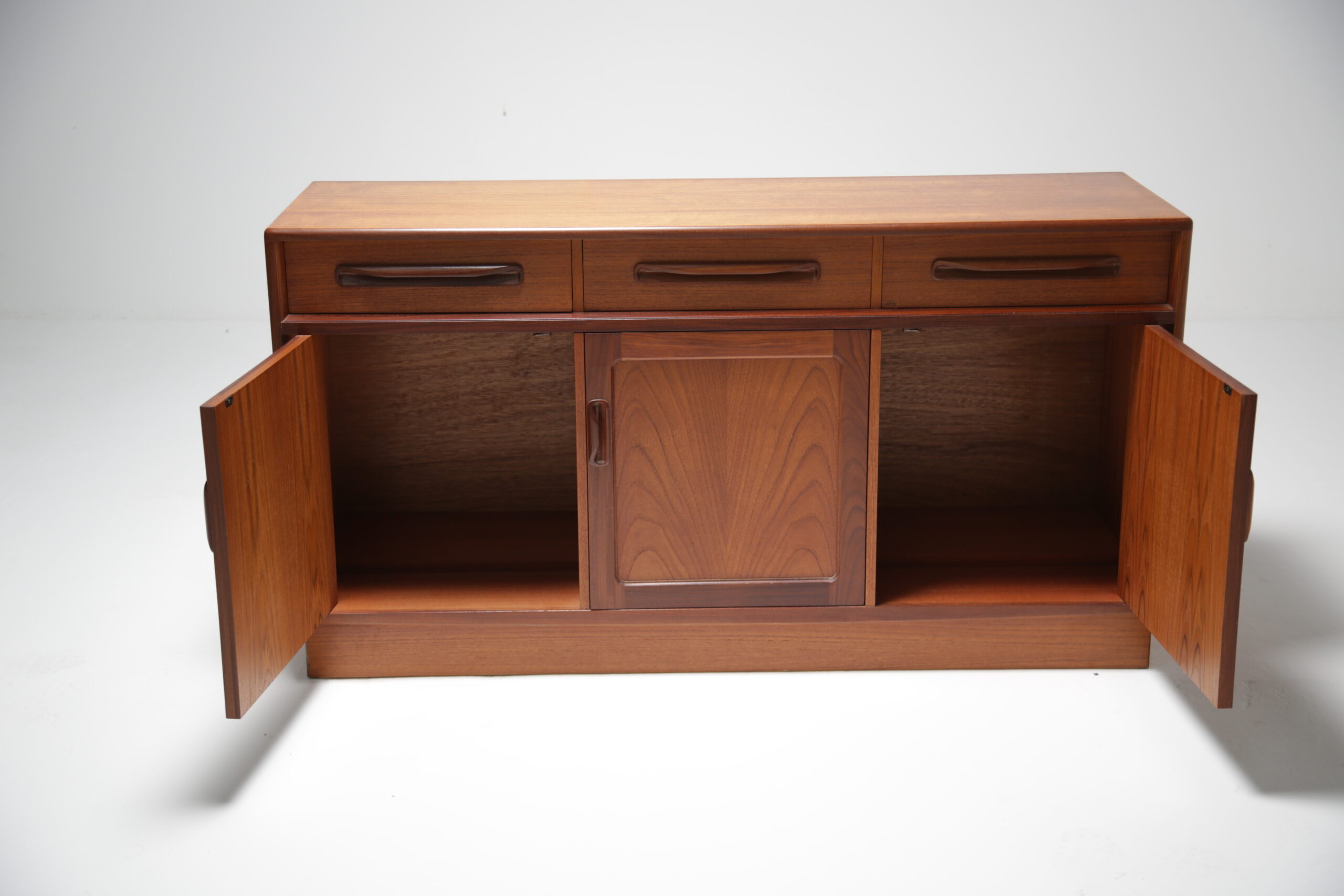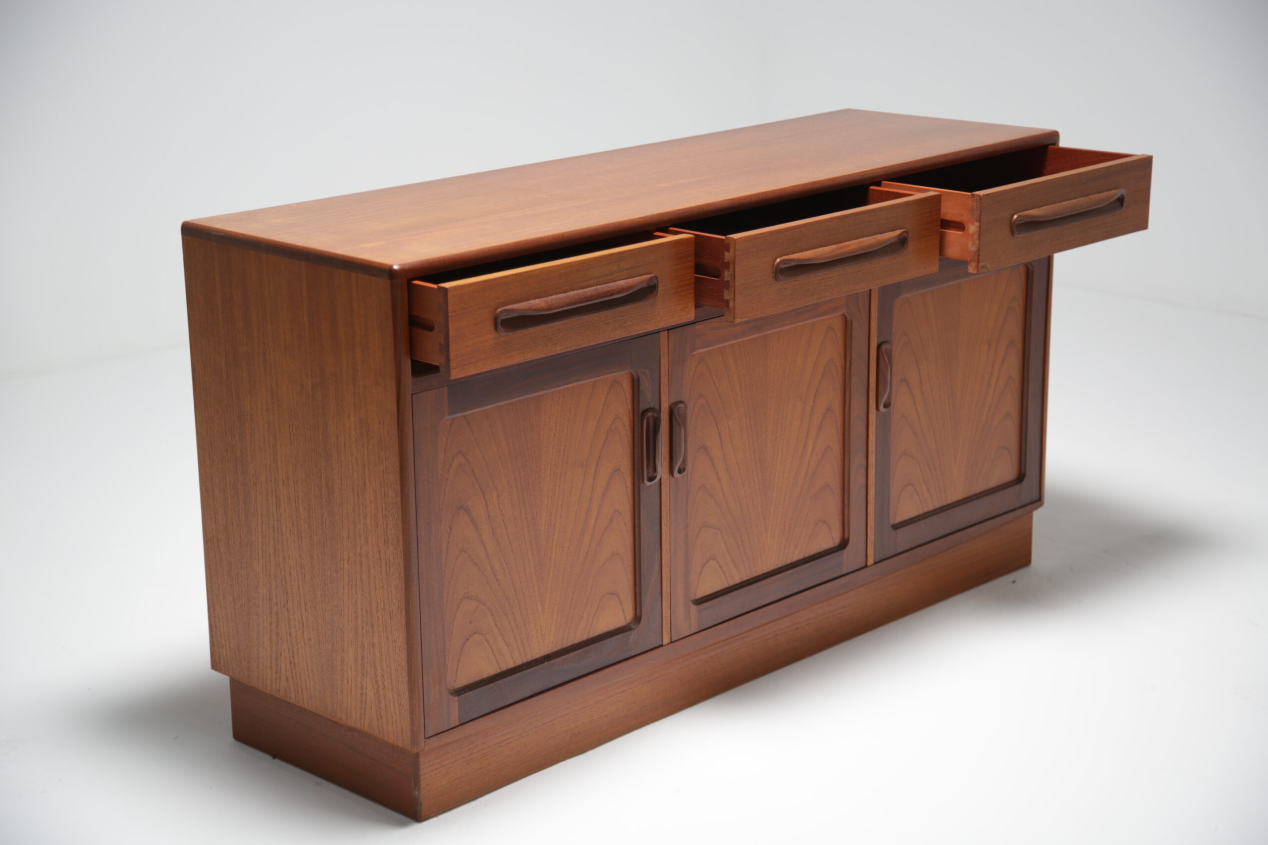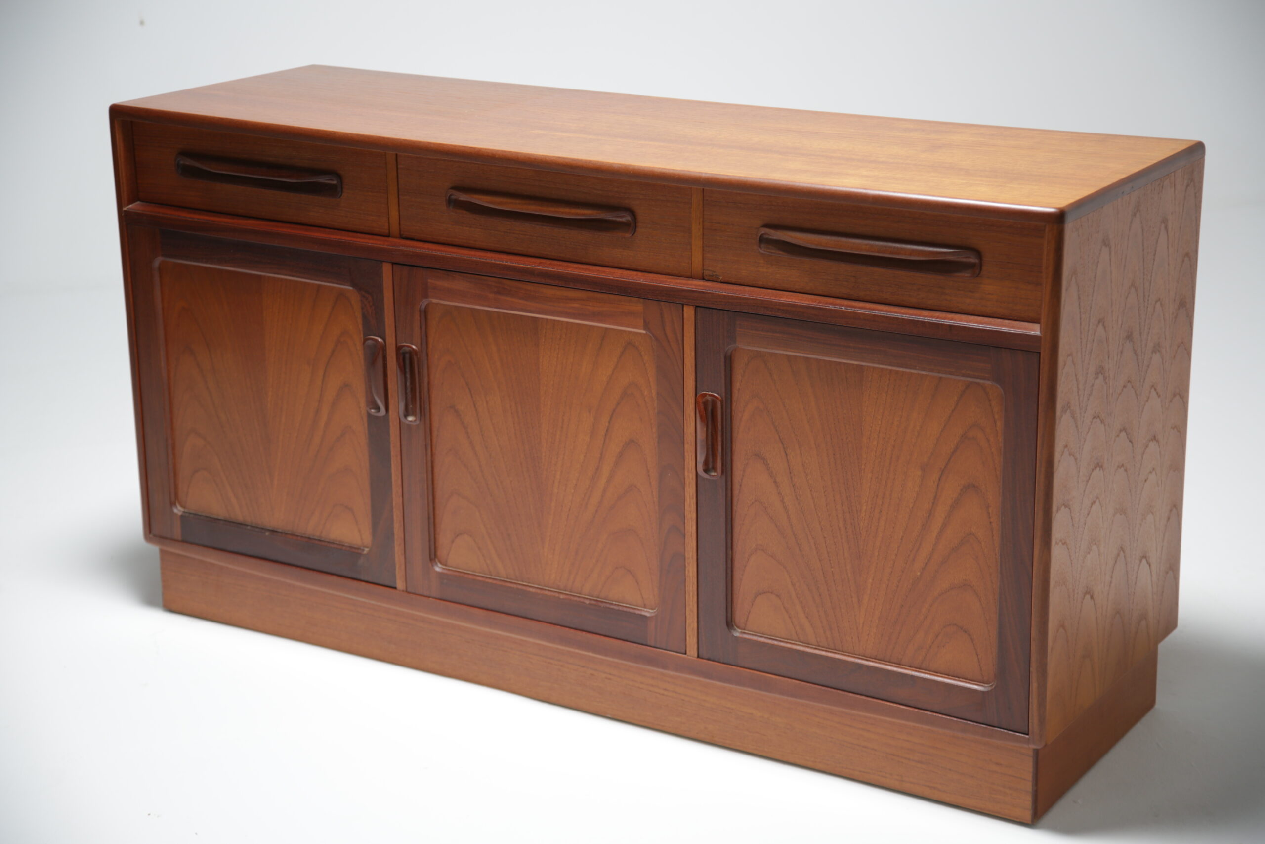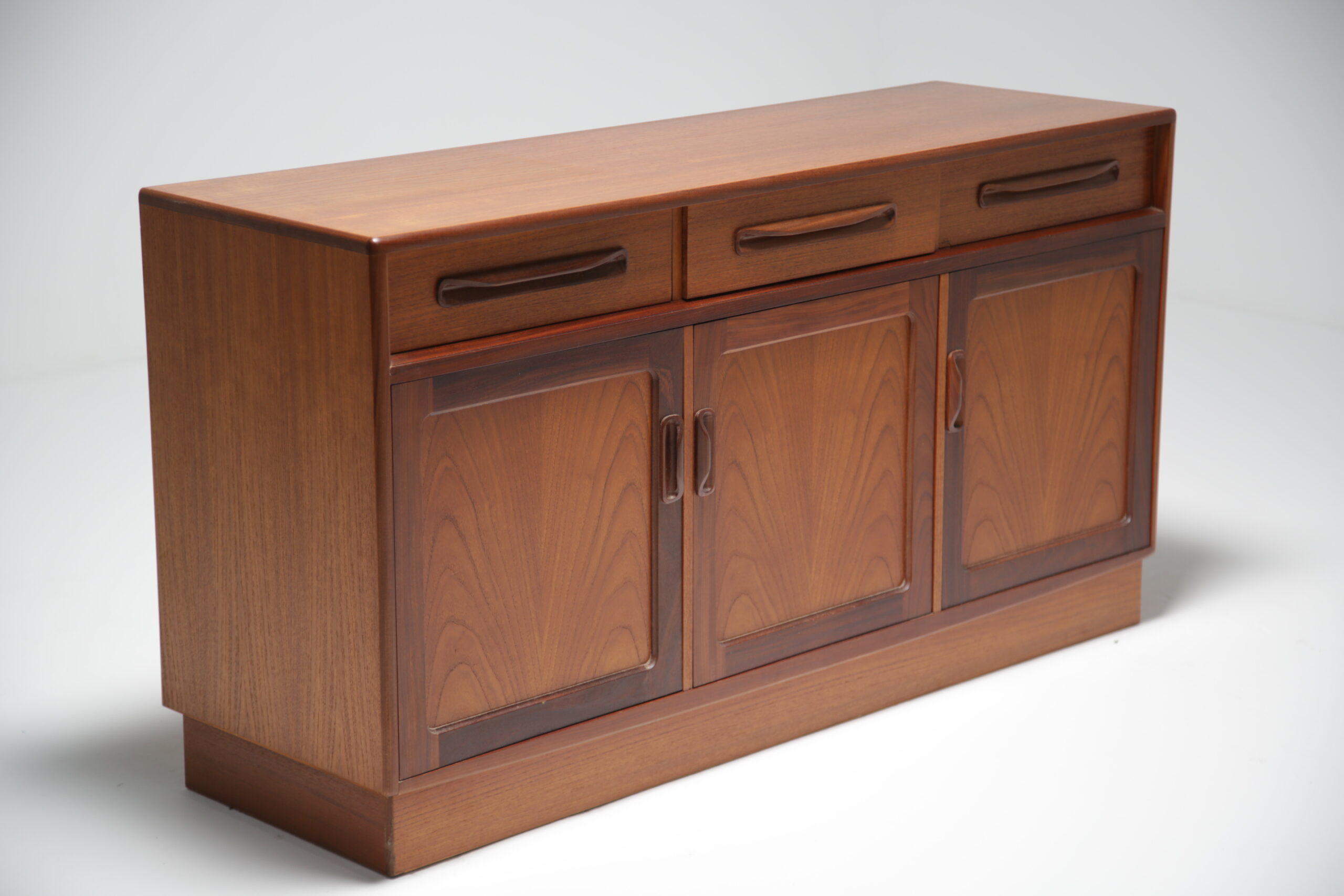 Sideboards, and particularily vintage sideboards are coming back into fashion in homes around the world. Originally used for storing your fine crockery and cutlery, people are now tending to use them as TV benches or mount the TV above the sideboard with the WiFi Router, Sky Box etc. inside the sideboard to hide away cables and multiple boxes. This sideboard is perfect for both purposes and the smaller size will ensure it fits into most spaces. On top of all that, our in-house restoration team has done a beautiful job restoring this sideboard.