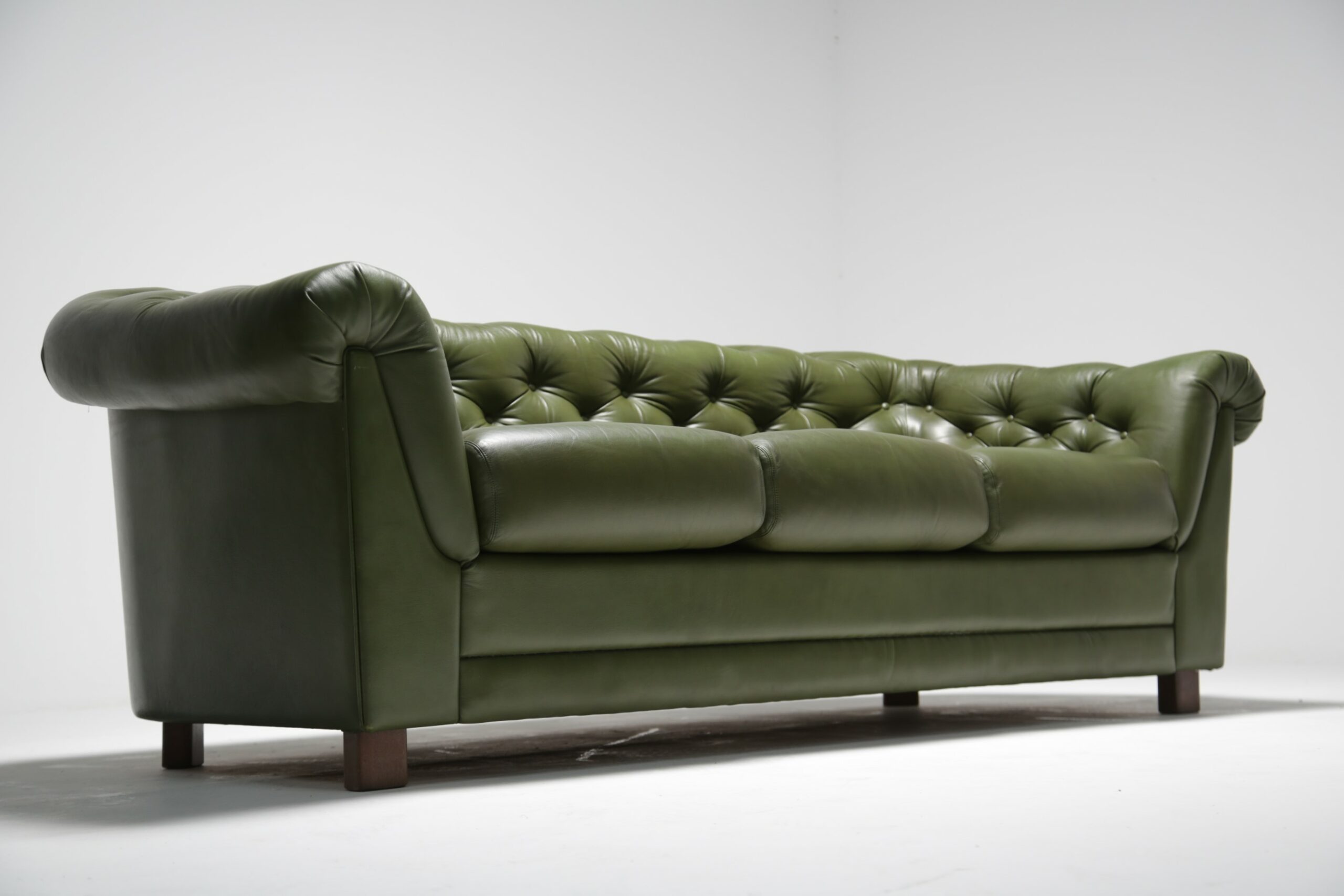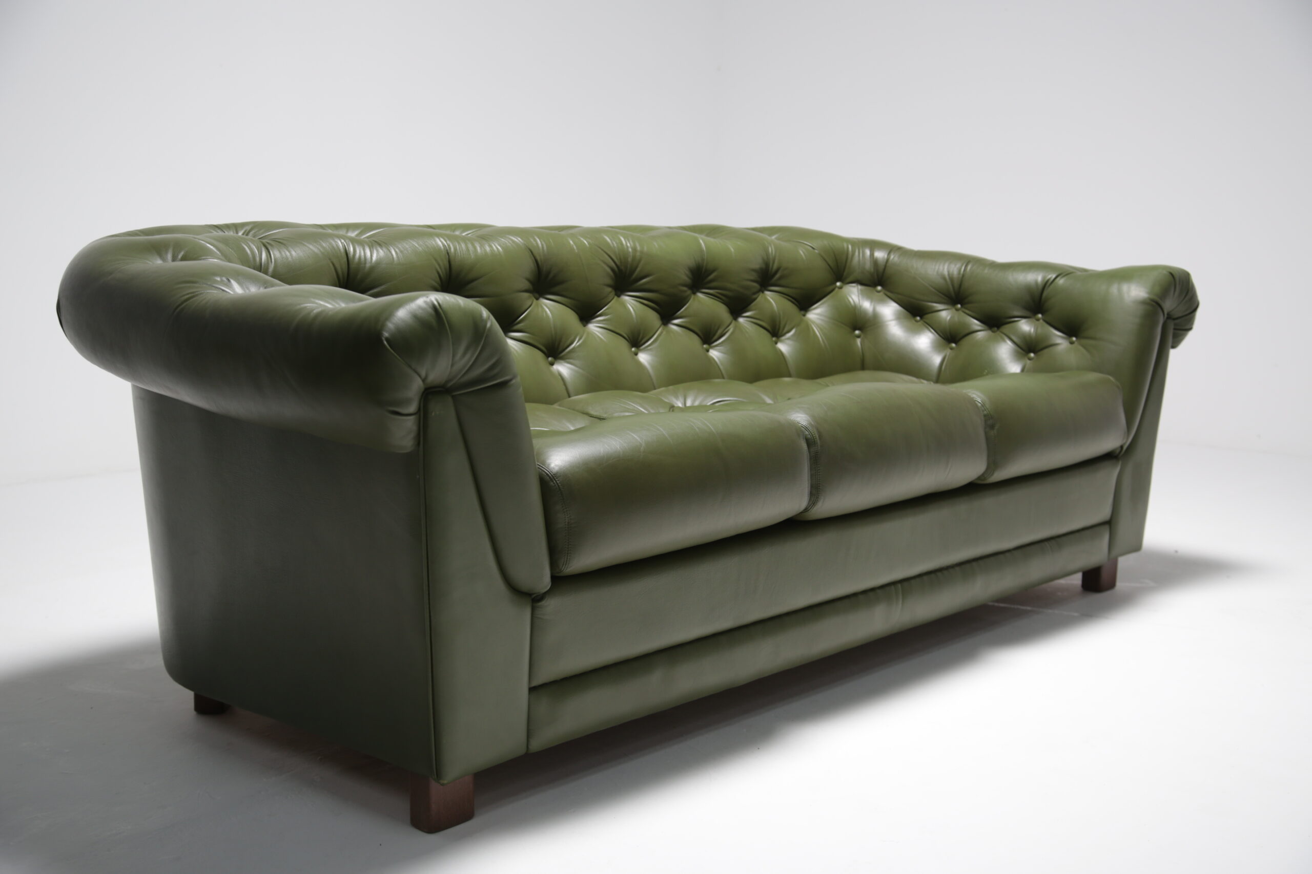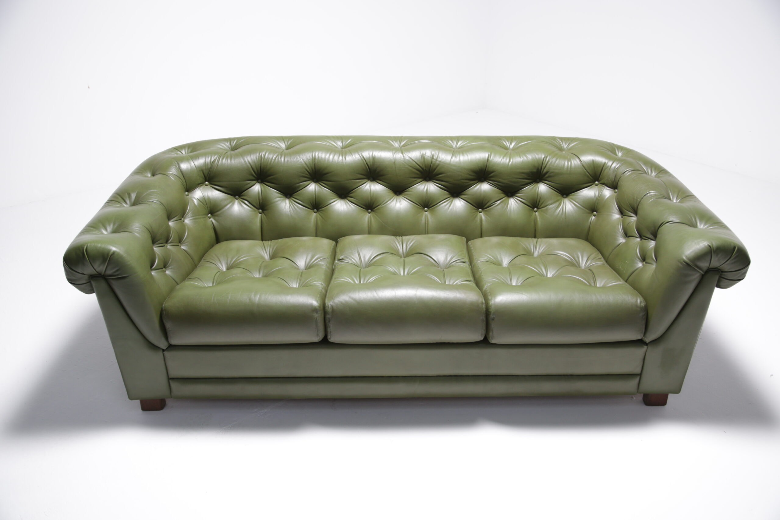 Introducing the epitome of luxury and style, our stunning vintage 3-seater sofa. Upholstered in a sumptuous soft green leather, this piece is perfect for adding a touch of sophistication and design to any room. The sofa boasts a comfortable and welcoming design that begs to be lounged on, making it perfect for curling up with a good book or enjoying a movie night with friends and family.