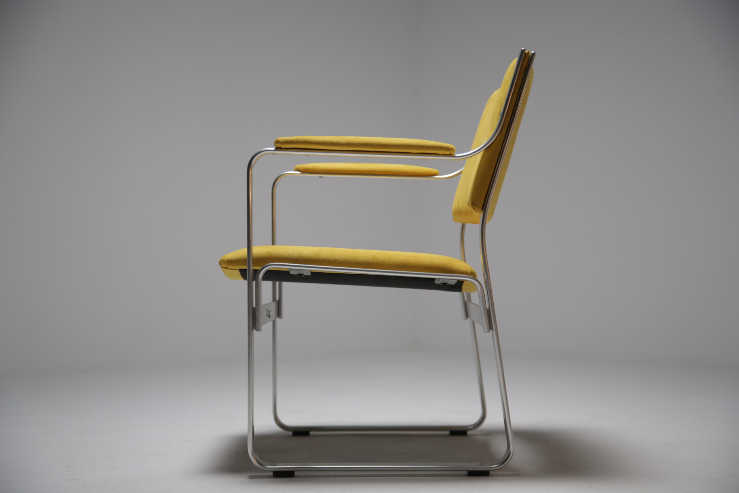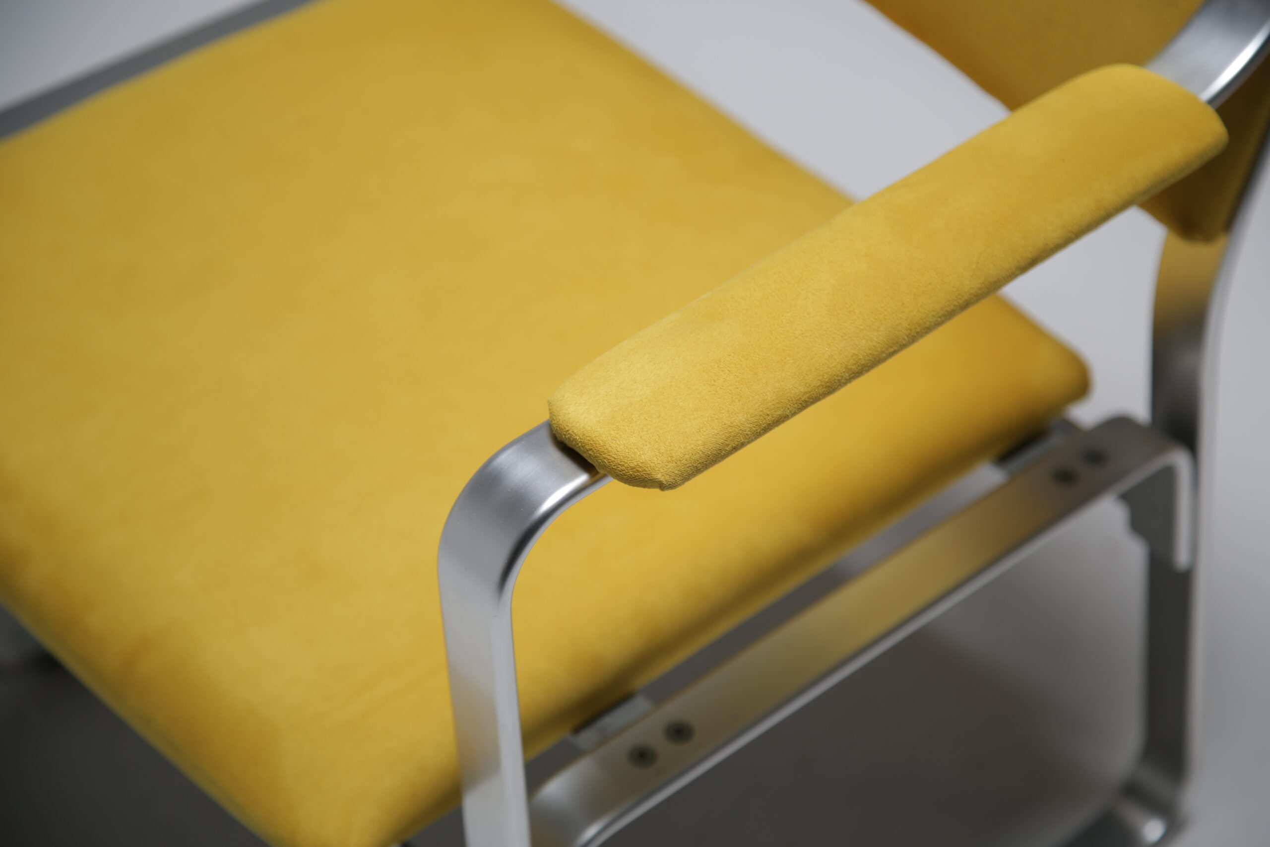 Karl Erik Ekselius chairs are the best kept secret in the vintage furniture world. While everyone is distracted with big names like Eames and Knoll in the office world there was a company in Sweden called J.O. Carlsson who were knocking out incredibly comfortable office chairs that never got the spotlight in the same way as the bigger brands. I love Ekselius chairs I think they are beautifully designed, very well made and so comfortable to sit in and use. We have reupholstered this chair in a yellow alcantara for no other reason than we wanted to…I love a pop of yellow with Aluminium or chrome.