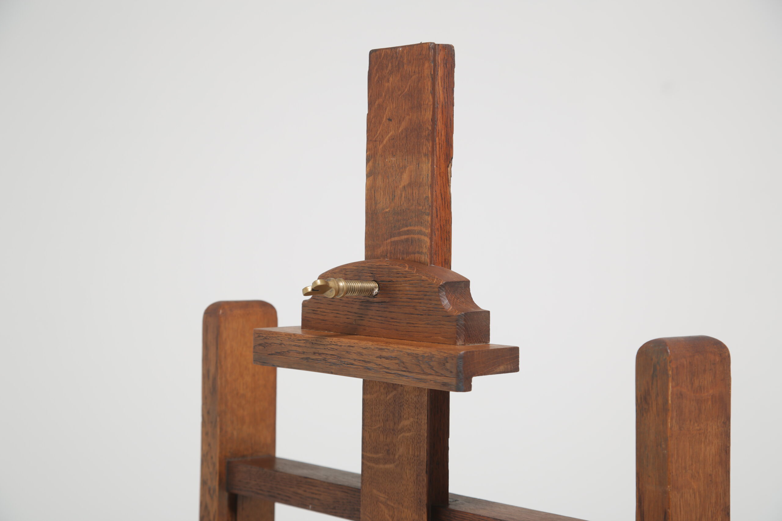 This piece has been carefully cleaned and lightly refinished to preserve its original character. The timber has been nourished and protected, while maintaining its aged patina and historic surface markings. The structure is solid, and the adjustable elements function as intended.