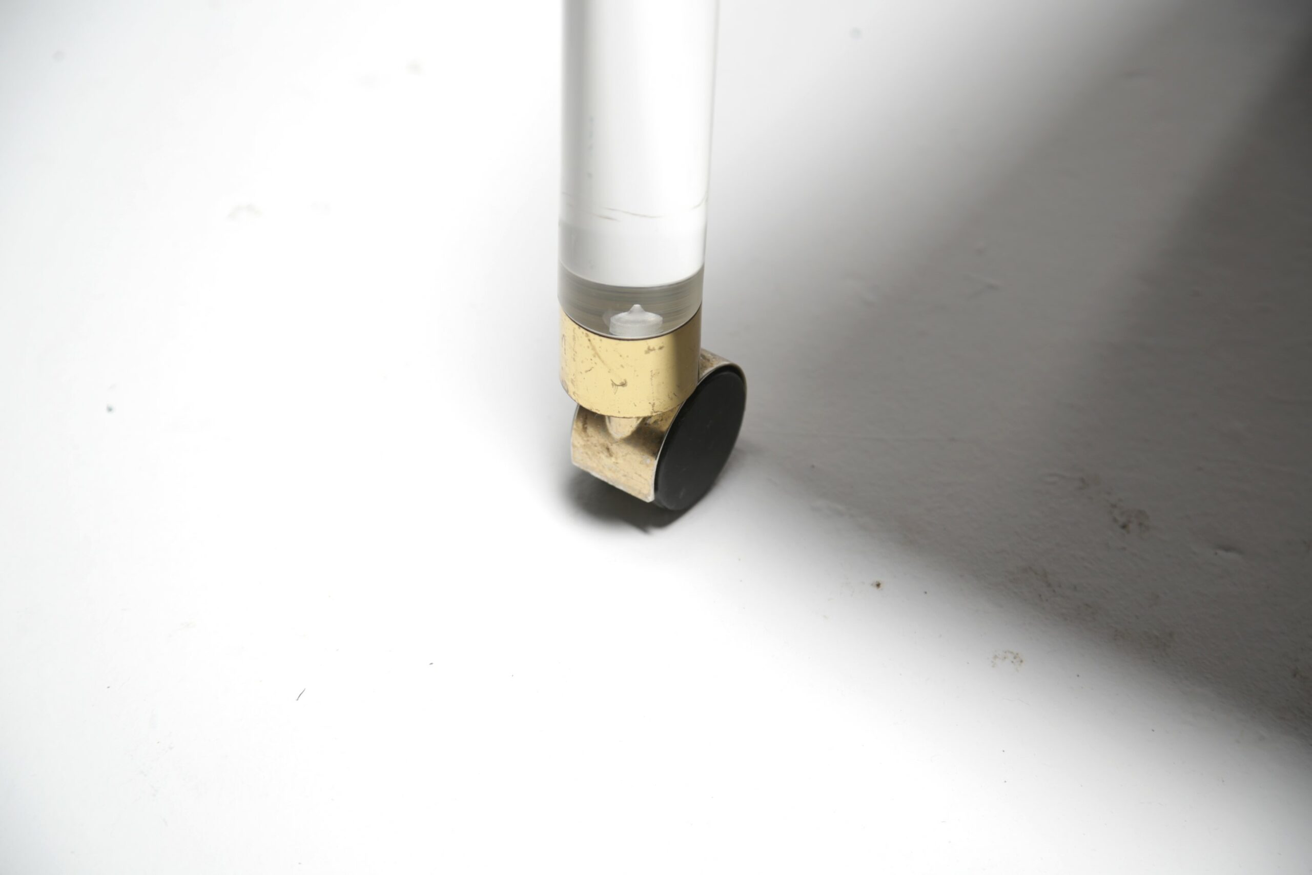 Vintage Lucite Velvet Armchair – Presented here is another beautiful armchair in lucite, upholstered in a purple luxurious velvet on a solid tubular lucite frame and gold colored wheels. It would work perfect as a bedroom chair or for your vanity table. It provides good support for the back and is comfortable to sit in.