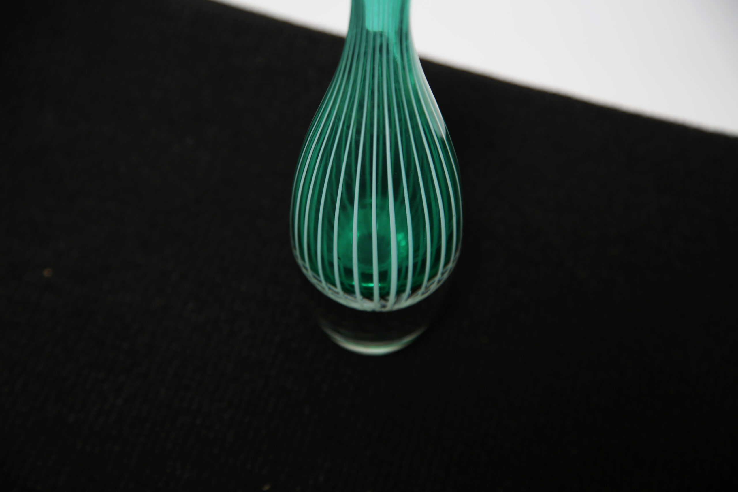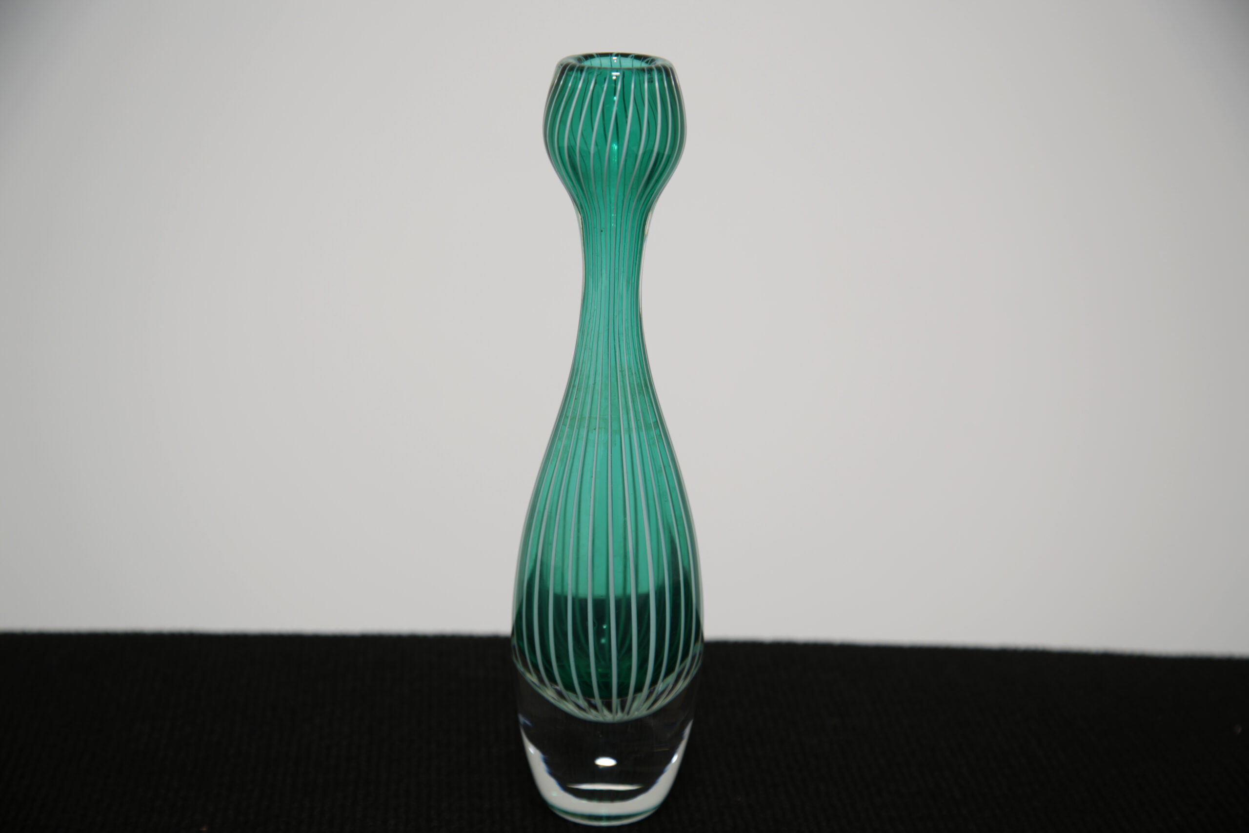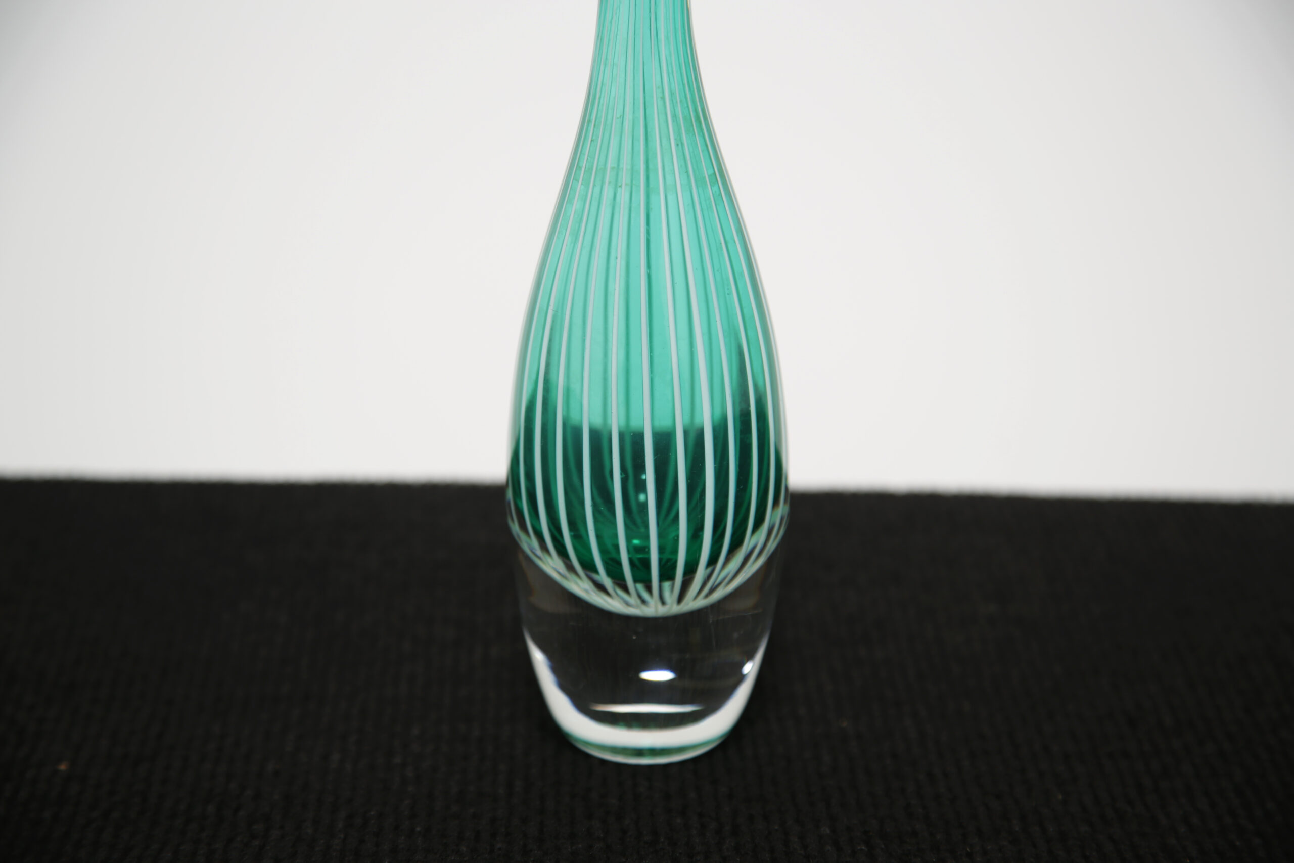 The “Zebra” vase is one of Vicke Lindstrand’s most recognisable designs, celebrated for its bold, graphic striping and distinctly modern aesthetic. The striking green vertical lines add energy and movement, making it an eye-catching standalone piece or ideal accent within a curated Scandinavian display. A collectible example of mid-century Swedish glass artistry, combining visual impact with strong designer provenance.