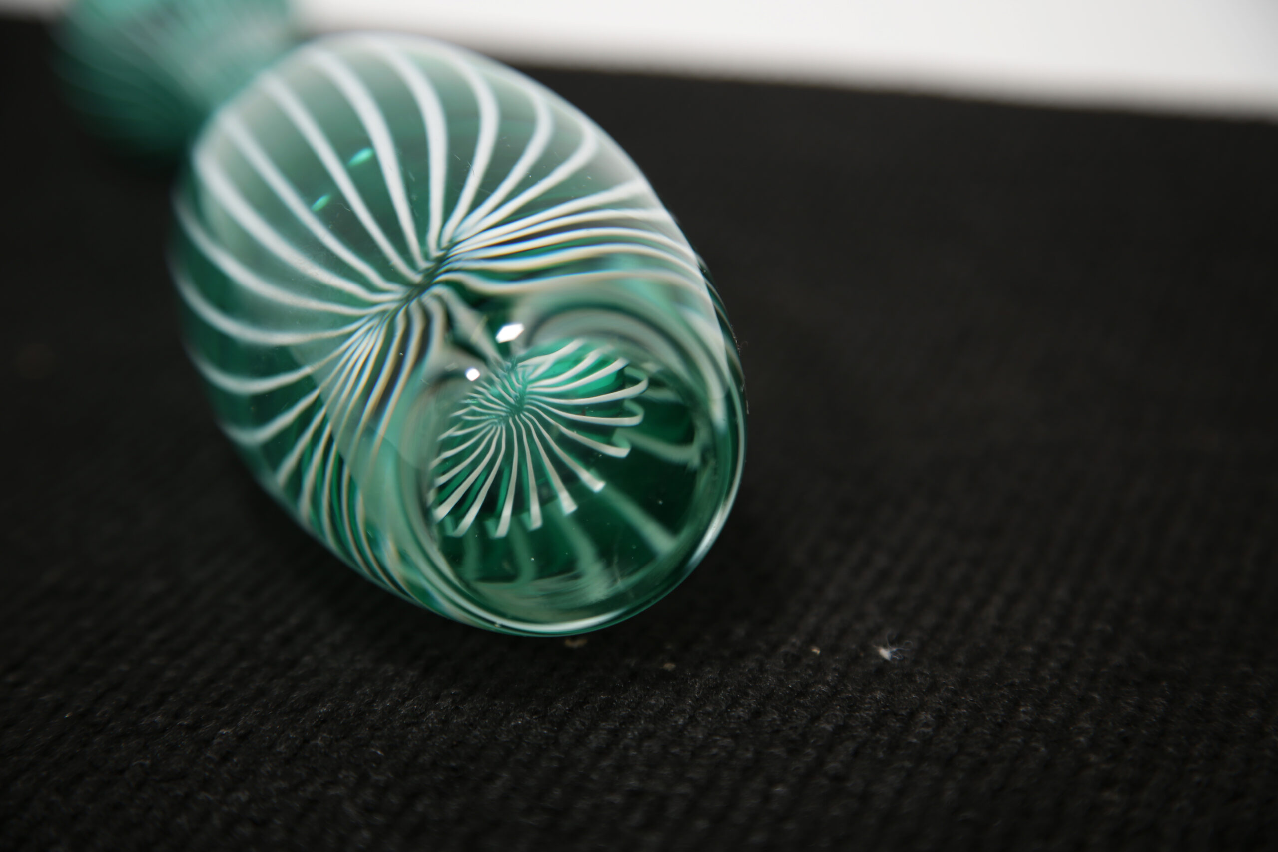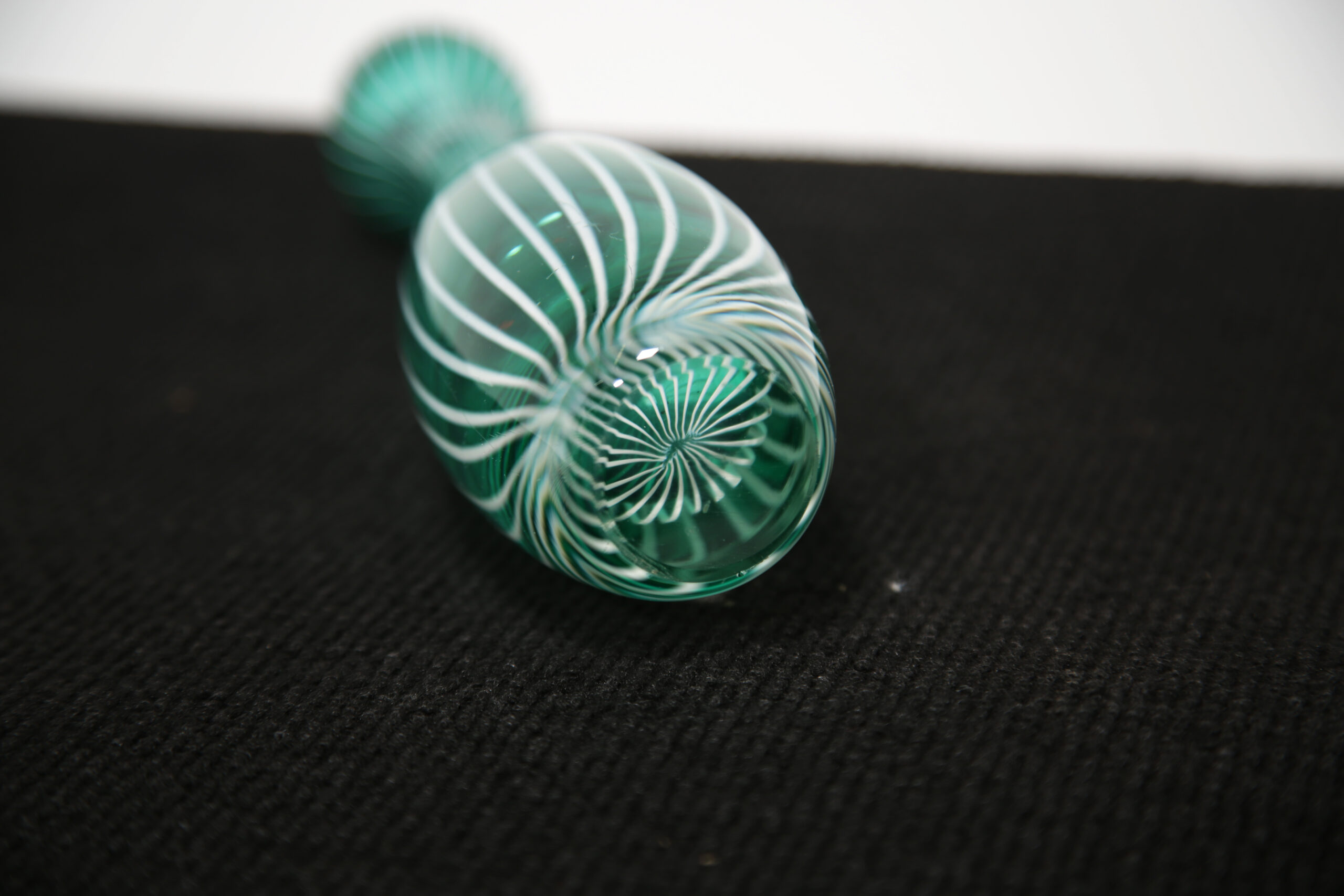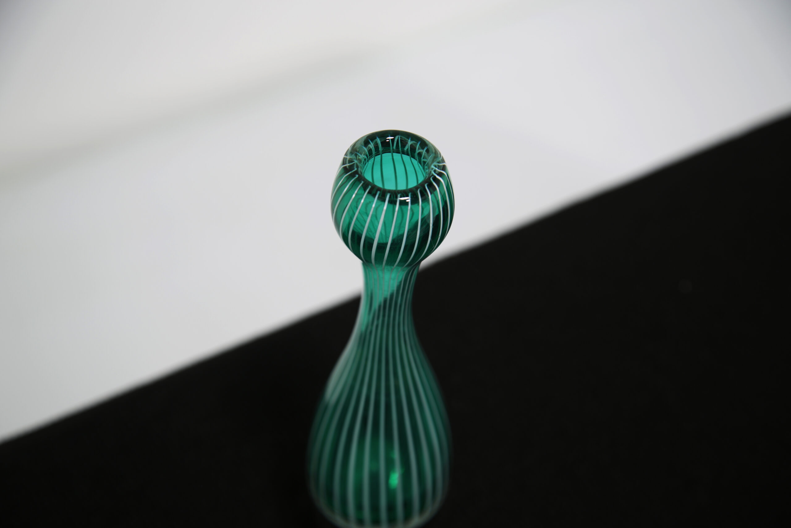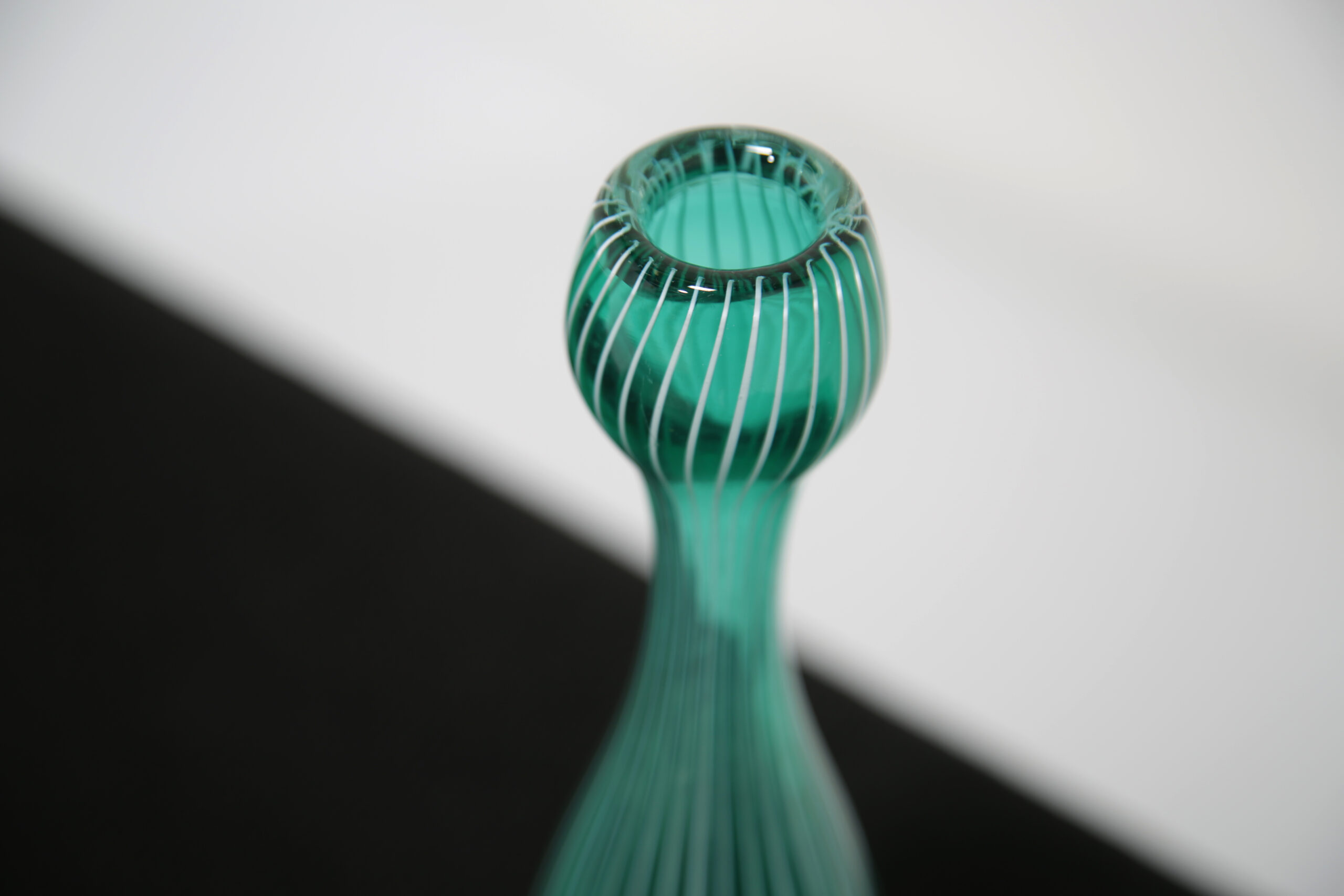 The “Zebra” vase is one of Vicke Lindstrand’s most recognisable designs, celebrated for its bold, graphic striping and distinctly modern aesthetic. The striking green vertical lines add energy and movement, making it an eye-catching standalone piece or ideal accent within a curated Scandinavian display. A collectible example of mid-century Swedish glass artistry, combining visual impact with strong designer provenance.