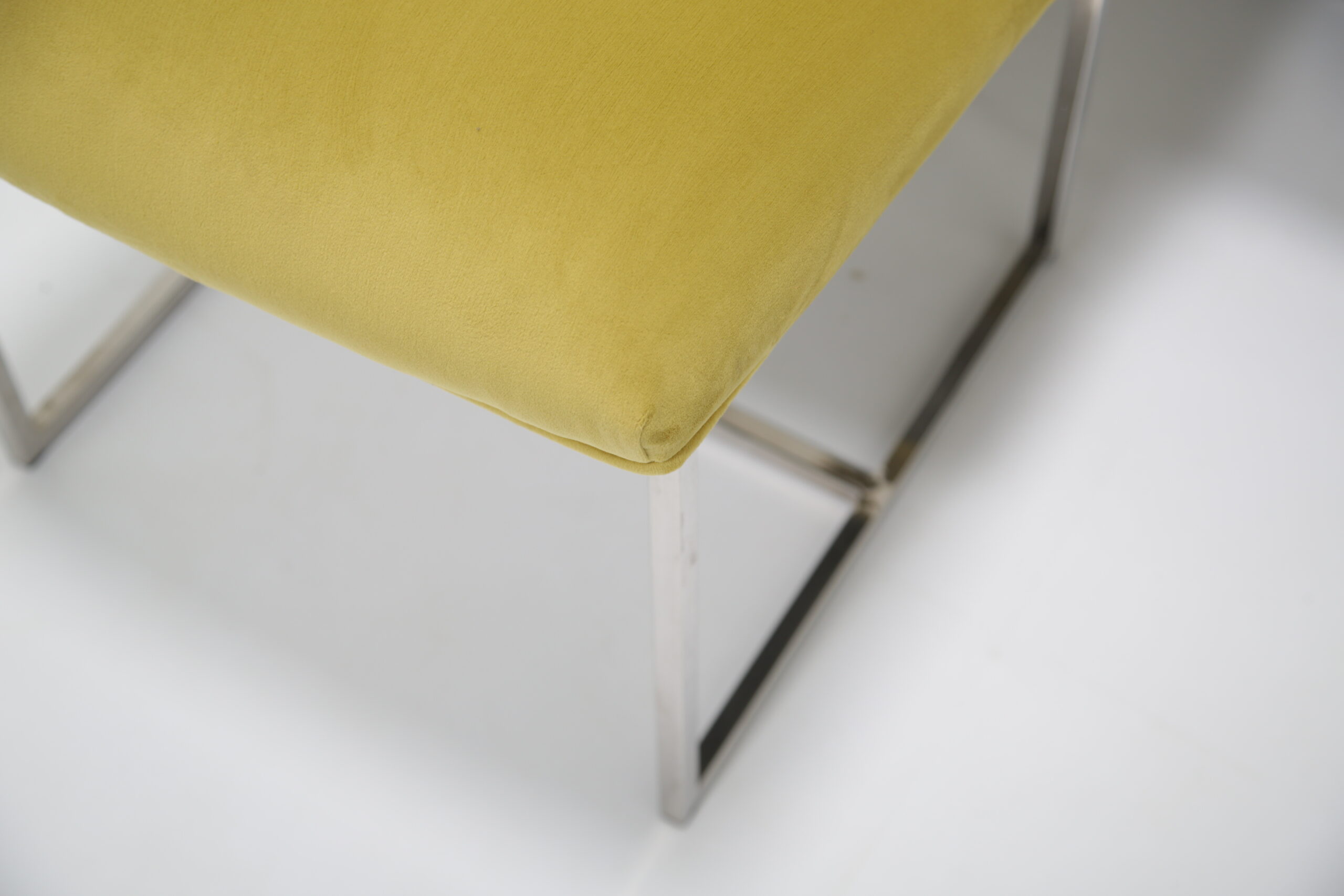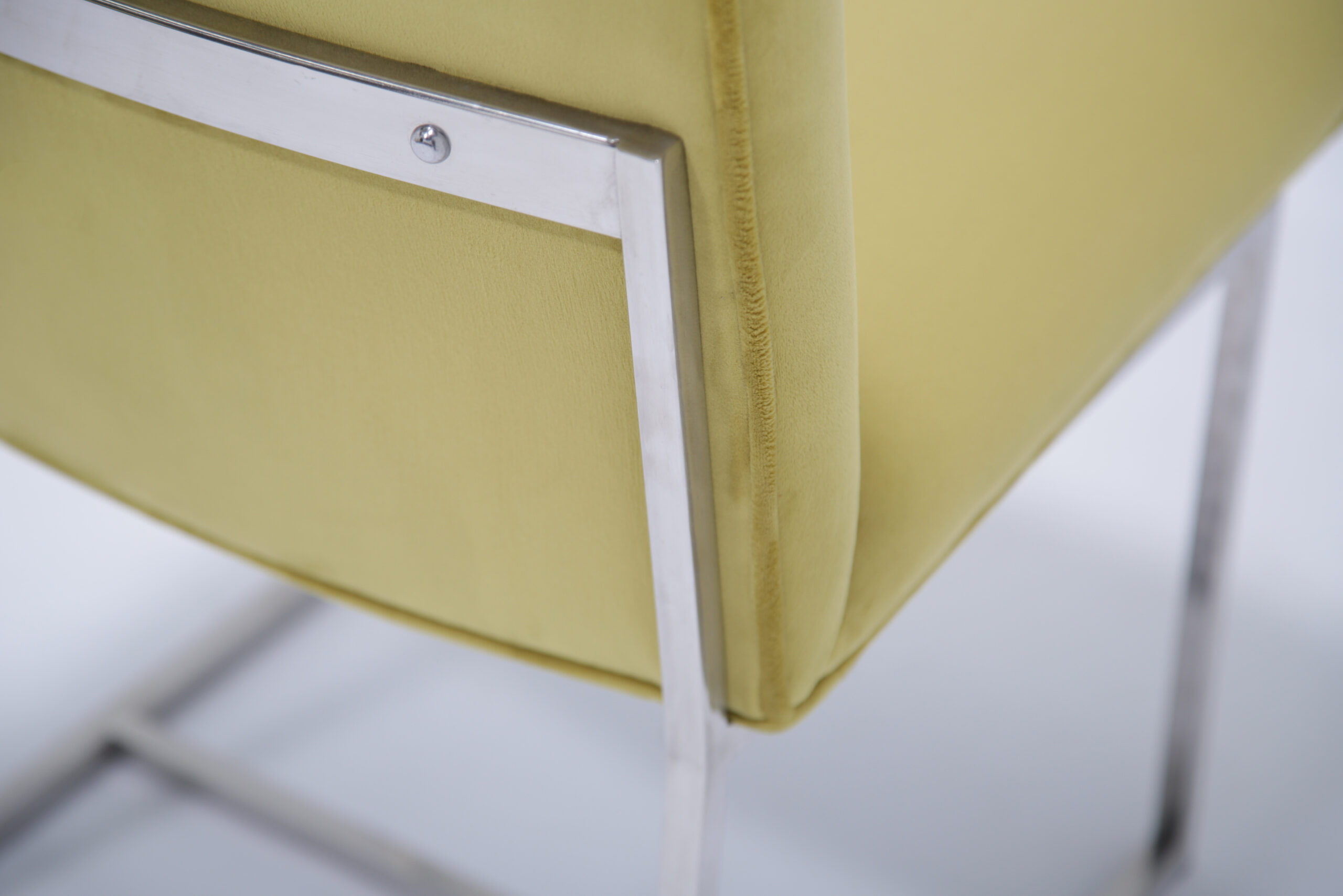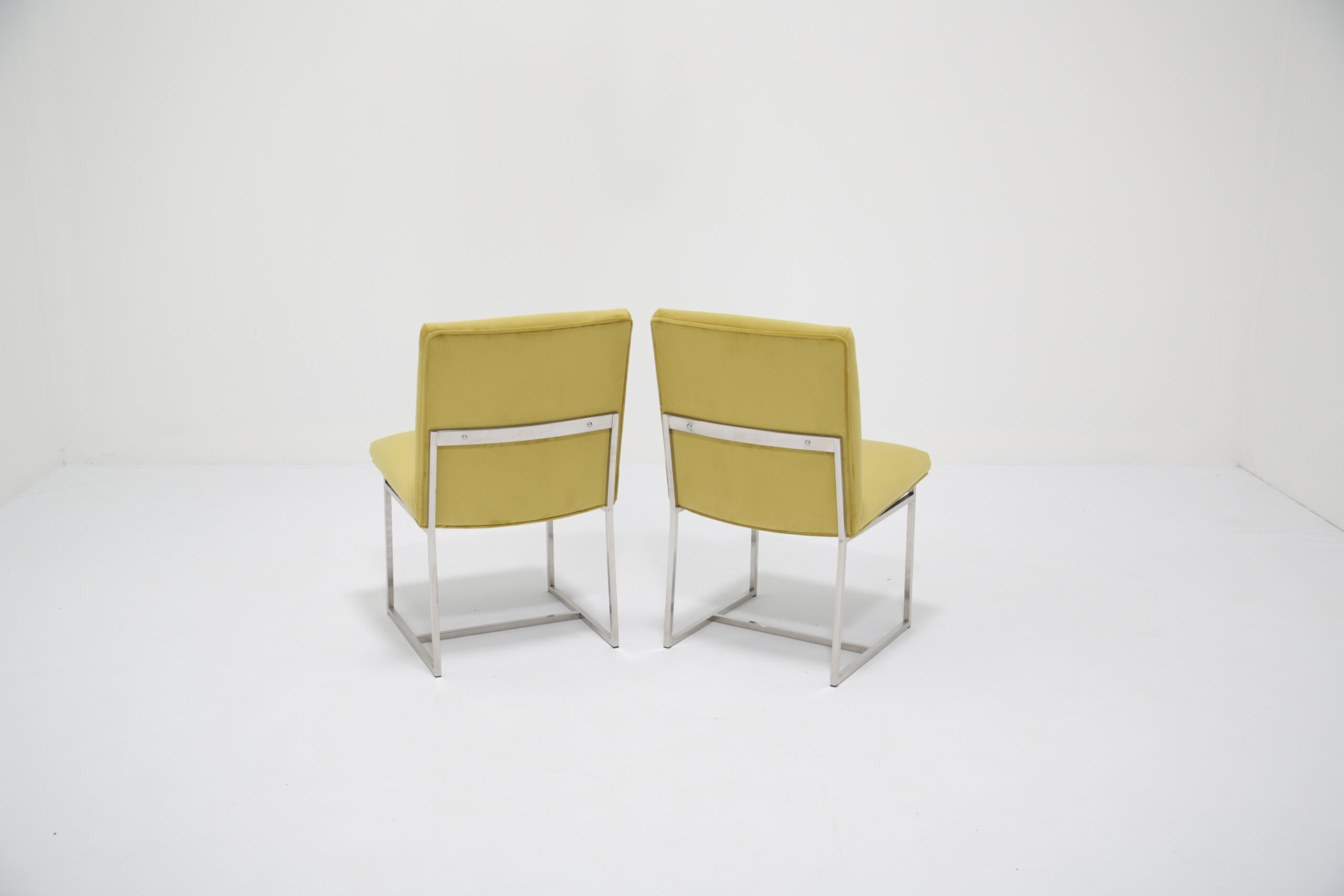 Just added to our collection are these exclusive dining chairs upholstered in a ginger lime green velvet on sturdy chrome frames. These chairs are incredible comfortable and provides good support for the back. The chrome frames are study and provides reflection in a room that may need it as natural as well as artificial light. The color choice of the upholstery adds a splash of brightness to a dining room that may need it. These chairs were imported from the States.