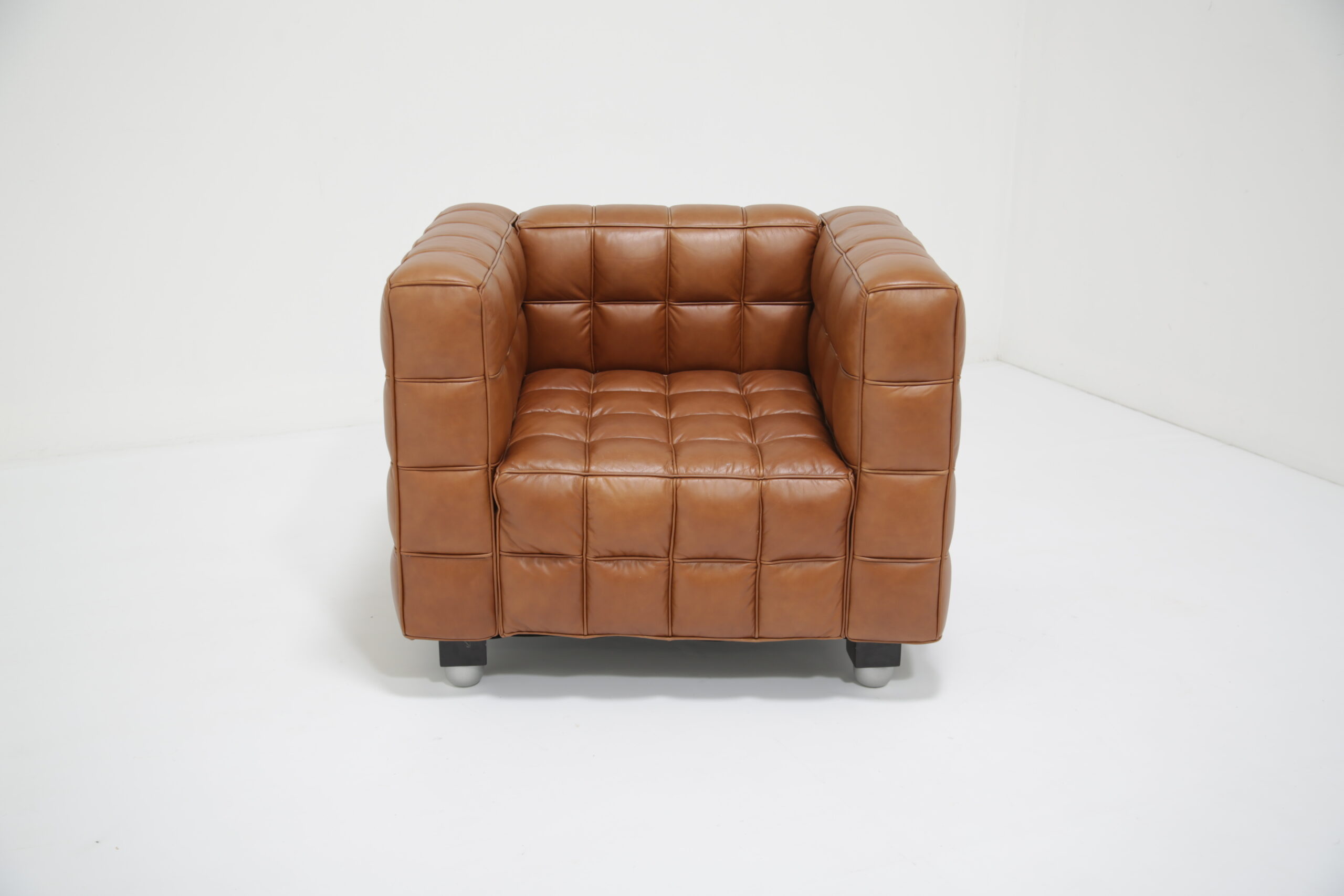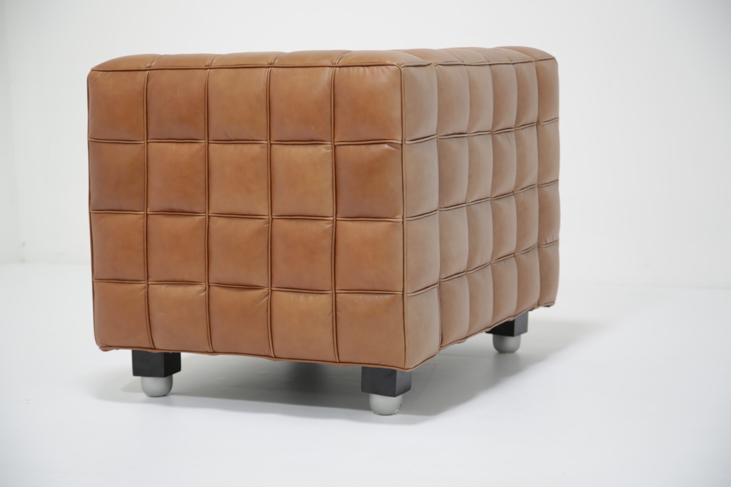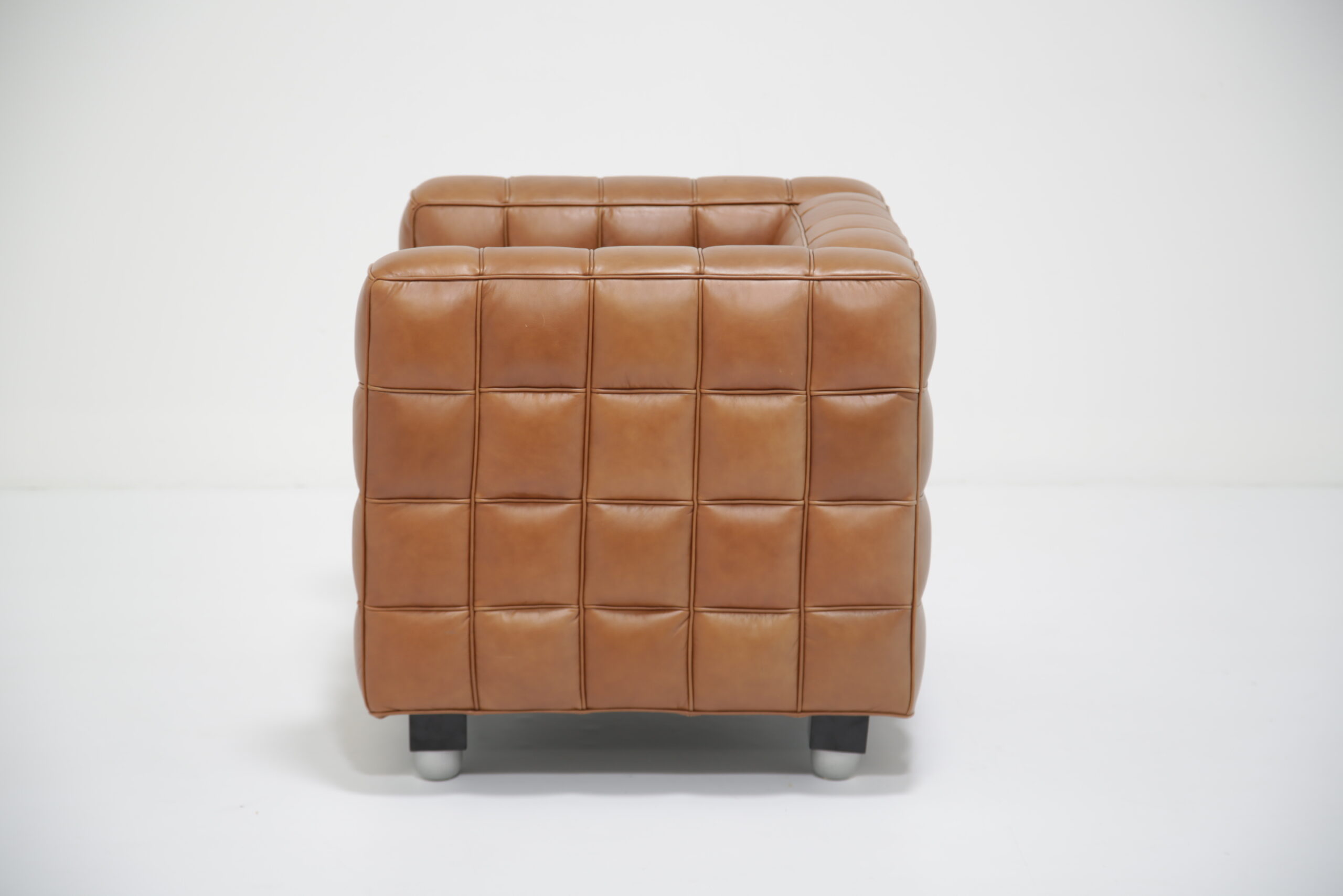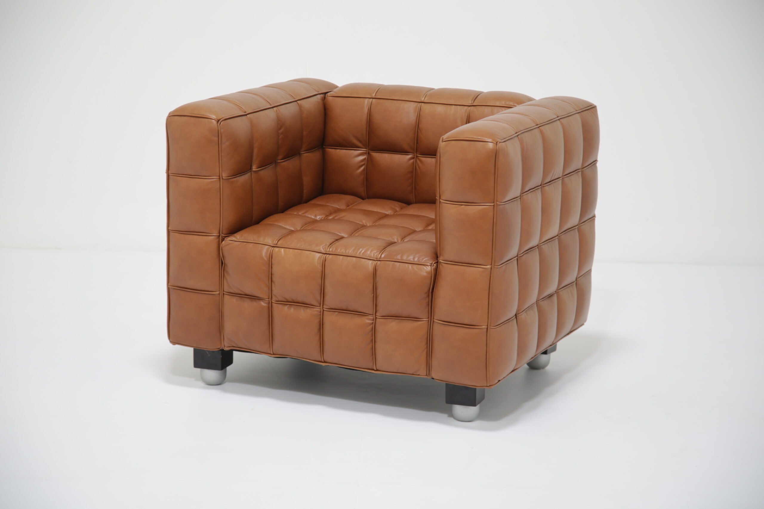 Comfort meets seamless style: this armchair embodies the design ethos of Josef Hoffmann, showcasing a blend of geometric precision. The armchair offers an architectural presence with clean lines and a boxy silhouette design which will work for most interiors. Perfect for a lounge area, an office or even a man cave.