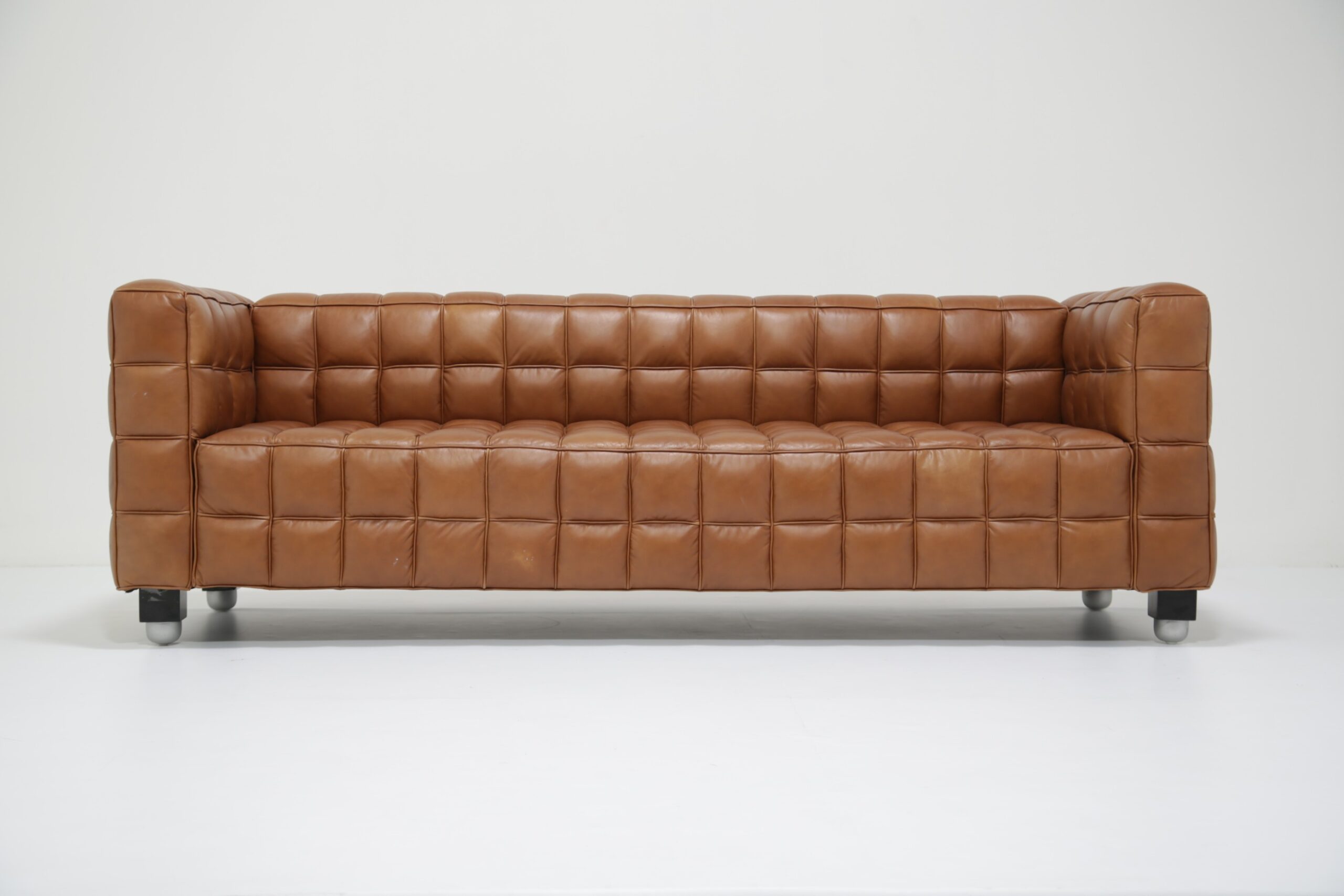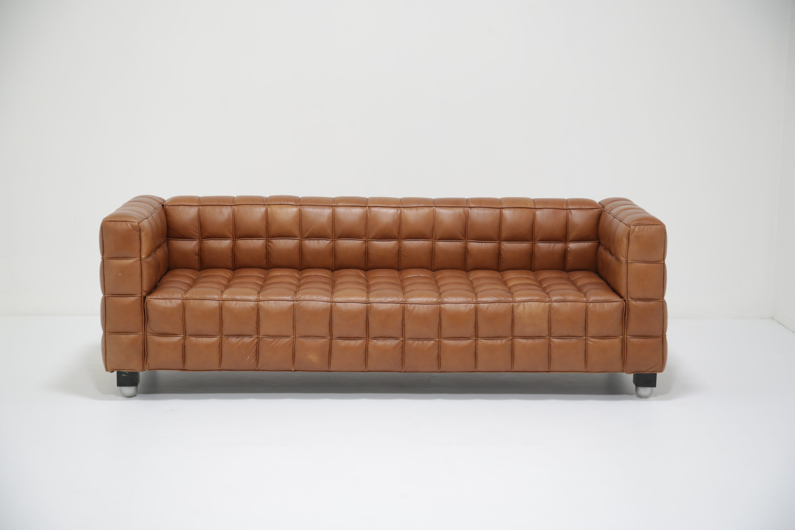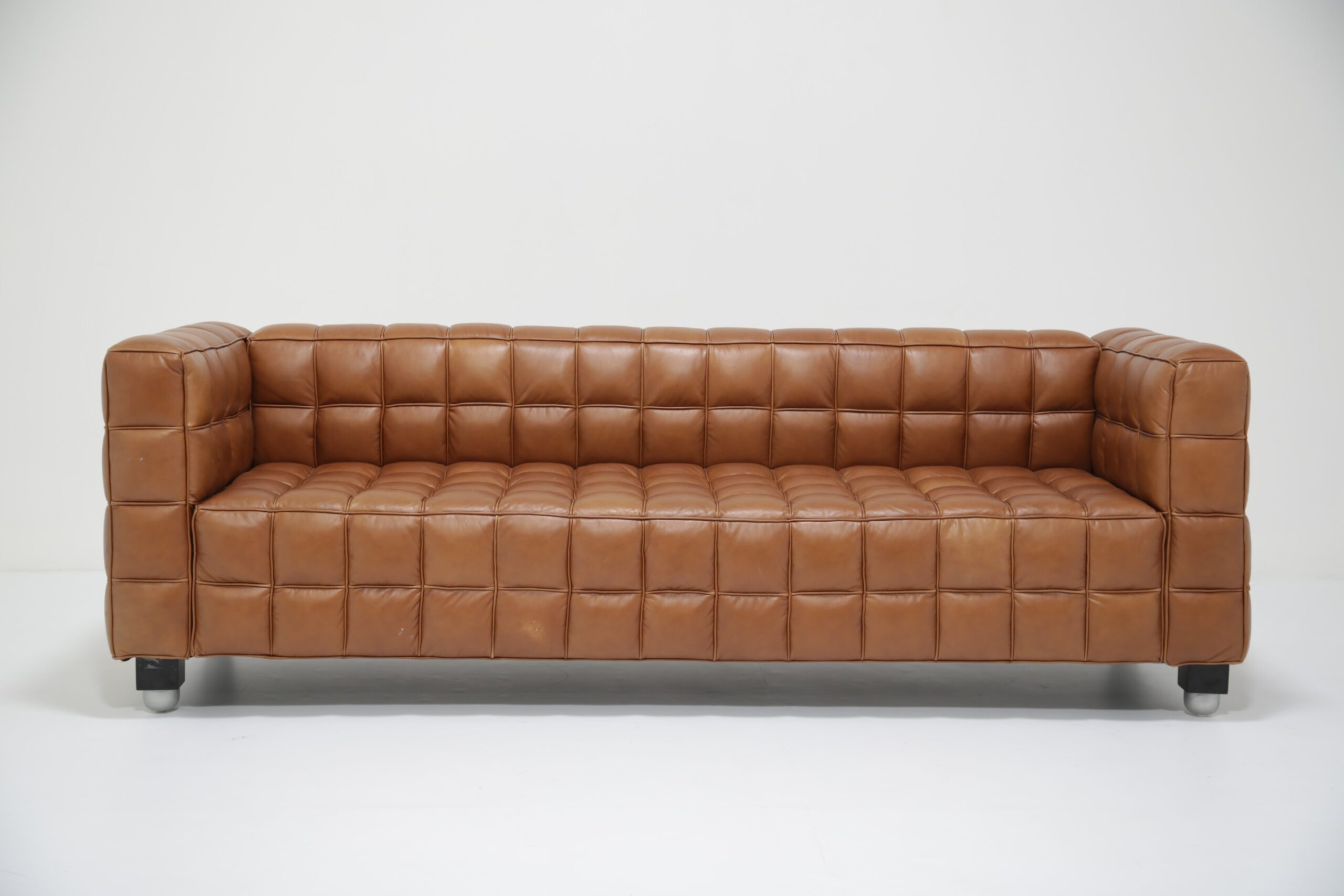 Comfort meets seamless style: this sofa embodies the design ethos of Josef Hoffmann, showcasing a blend of geometric precision. The sofa offers an architectural presence with clean lines and a boxy silhouette design which will work for most interiors. Perfect for a lounge area, an office or even a man cave.