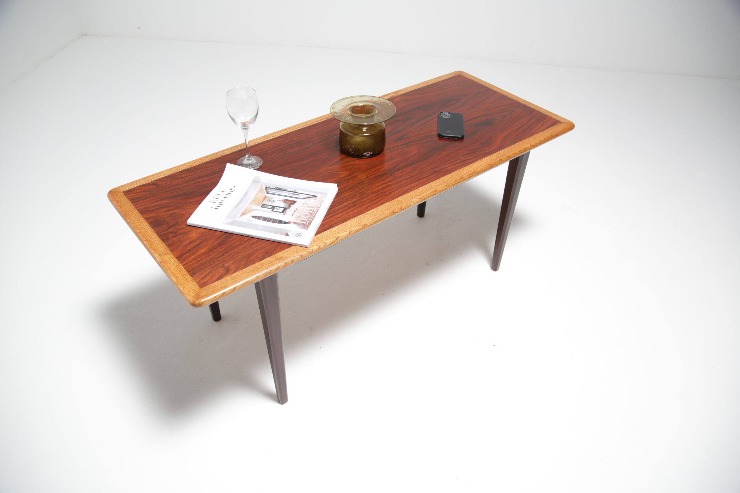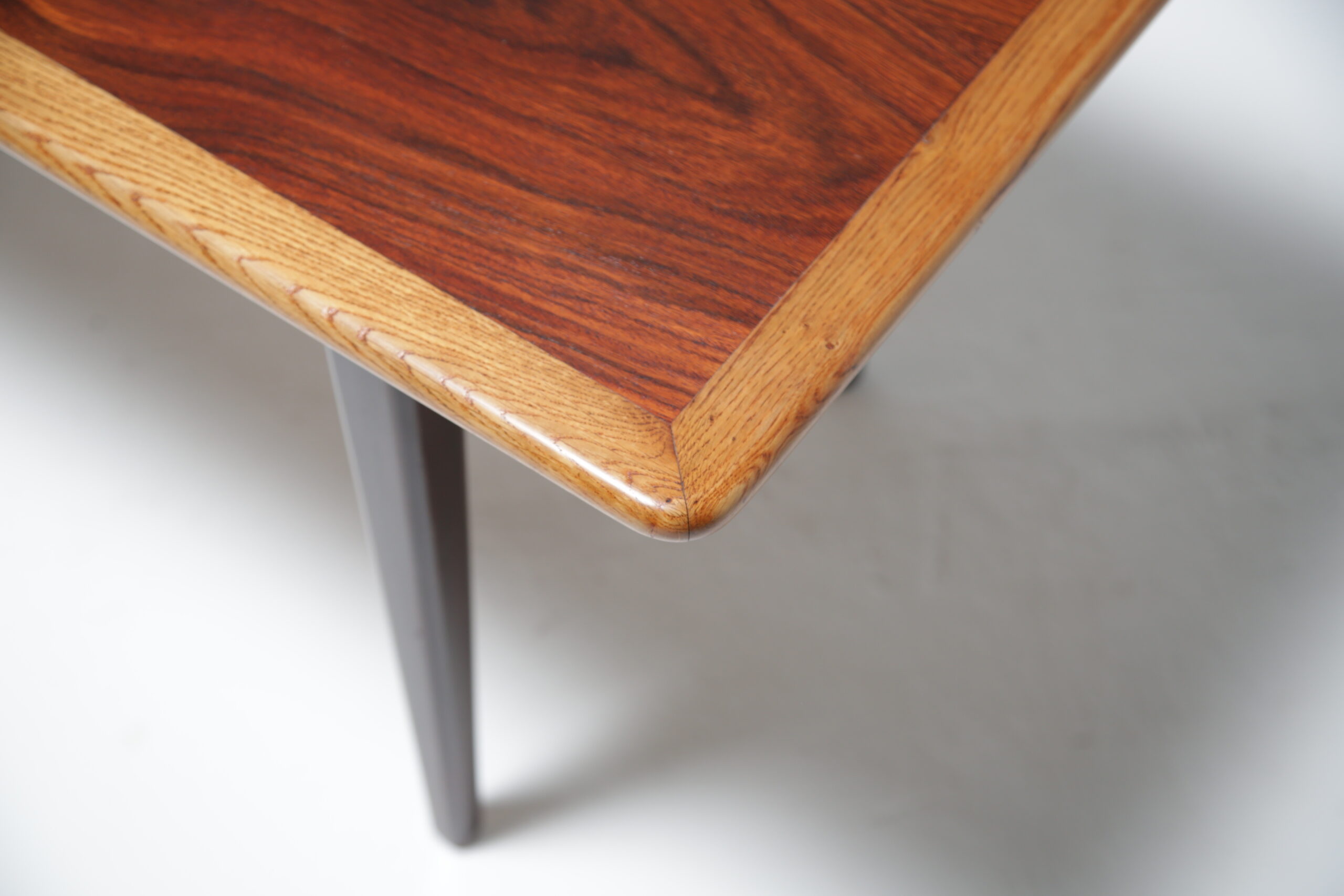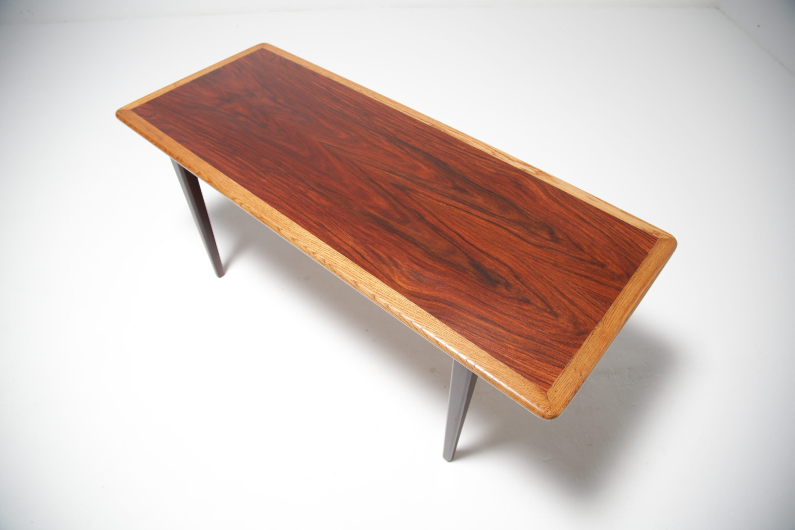 Just in from our restorer is this unusual coffee table with a mixture of woods, the outer framing is in oak and the inner section which looks like rosewood is stained birch tree. Perfect for someone who likes natural tones and is looking for an unusual but beautiful coffee able.