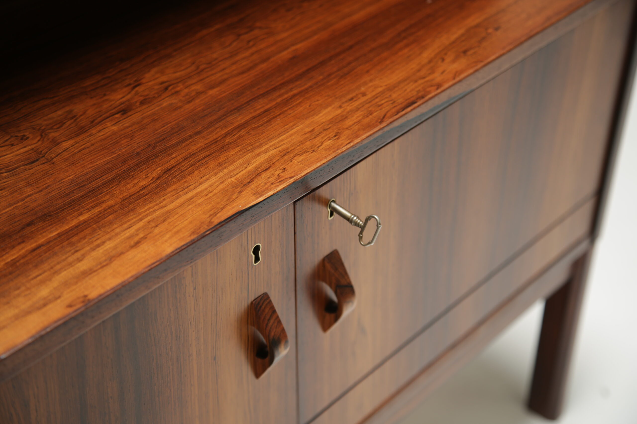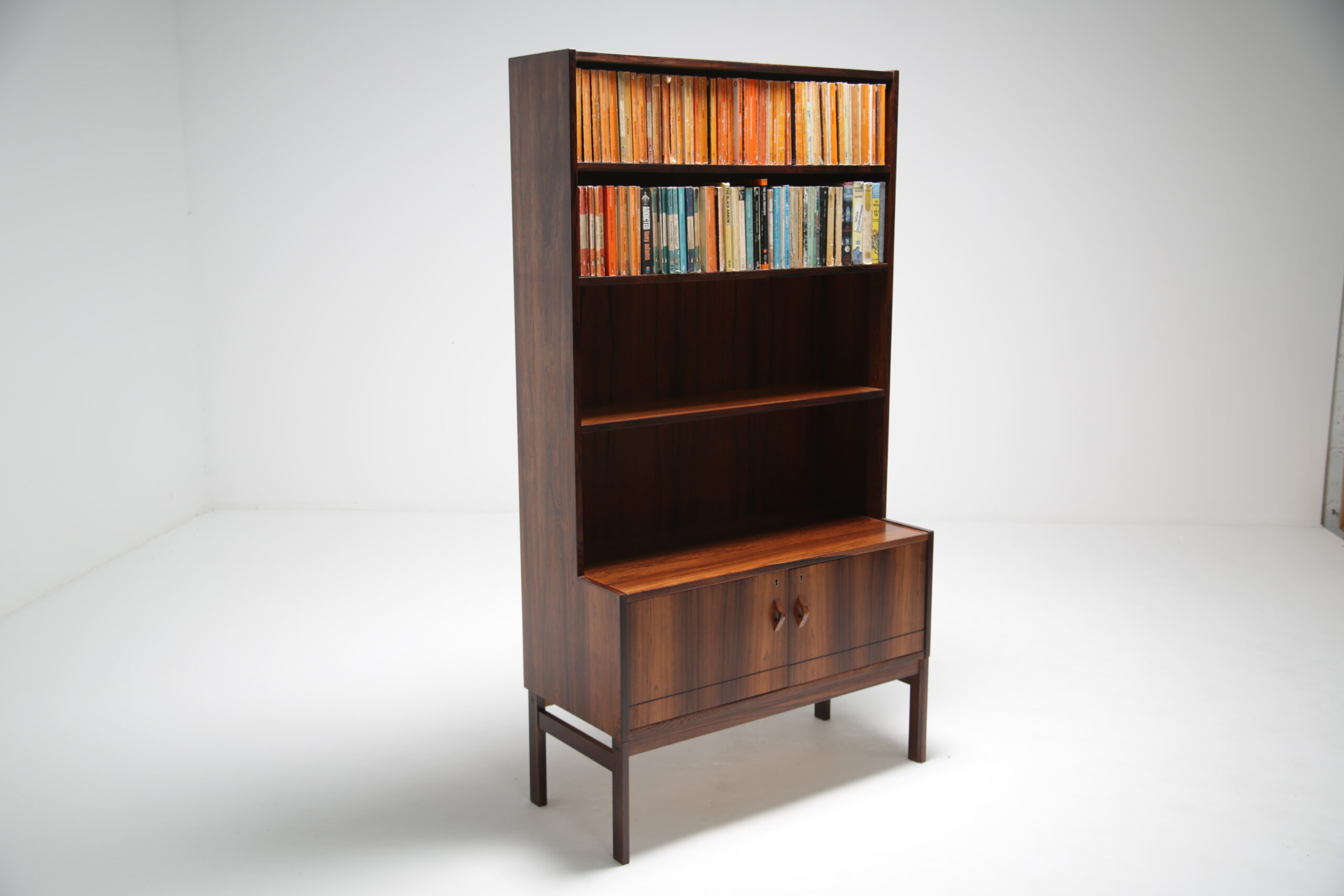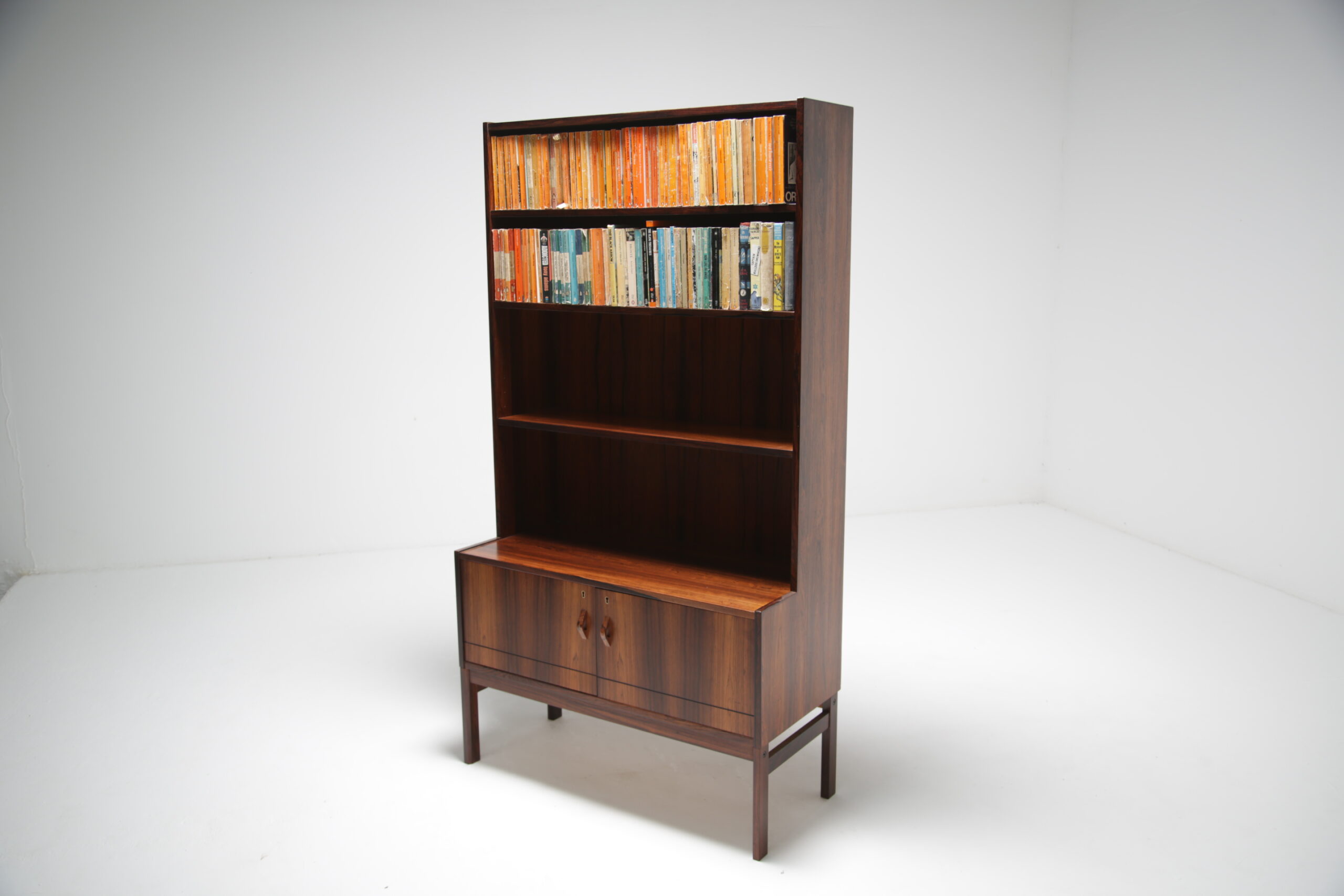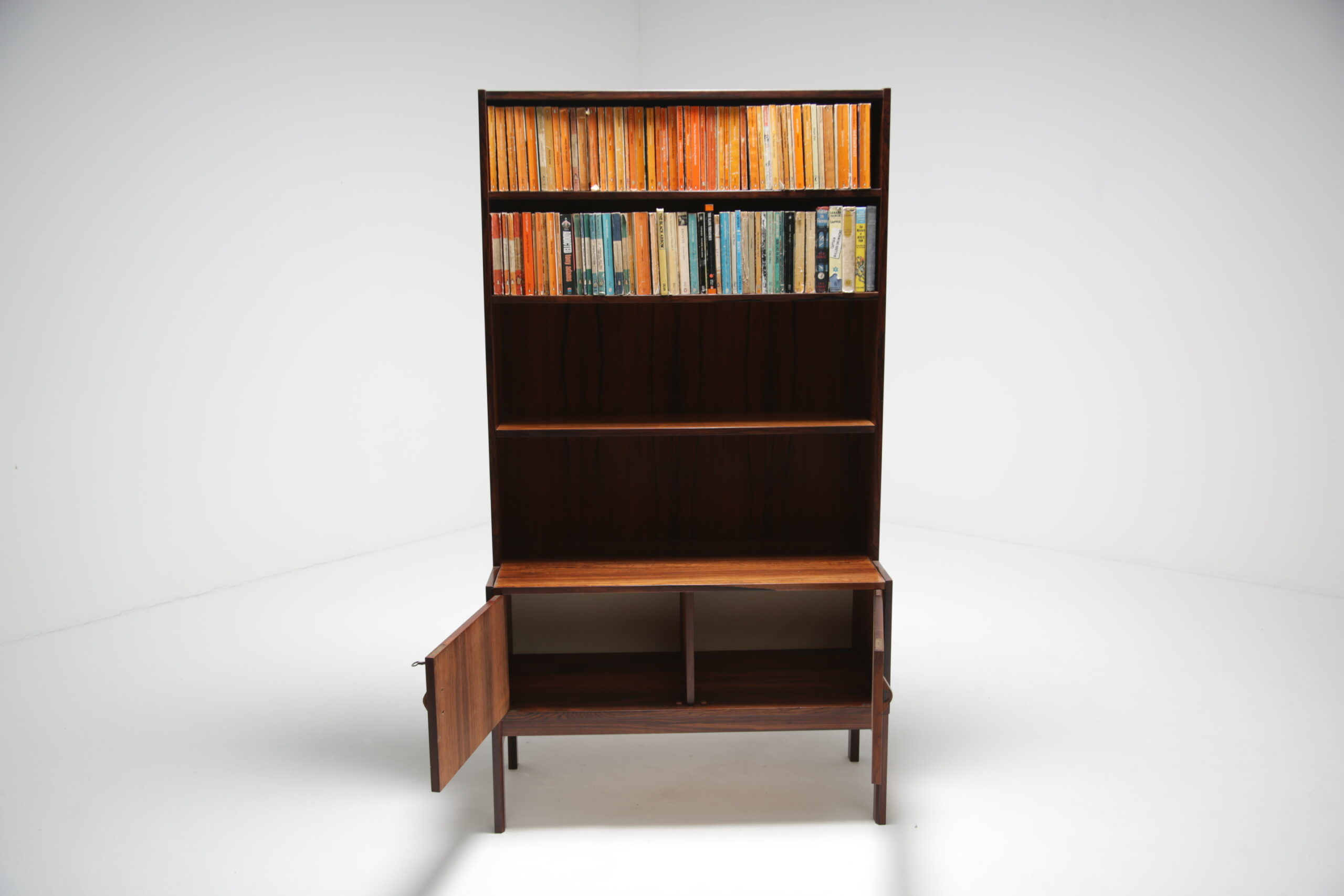 Crafted from high-quality rosewood, this bookcase exudes the warmth and natural beauty that is characteristic of Scandinavian furniture. The rich tones of the wood create an inviting atmosphere, adding a touch of sophistication to any interior space.