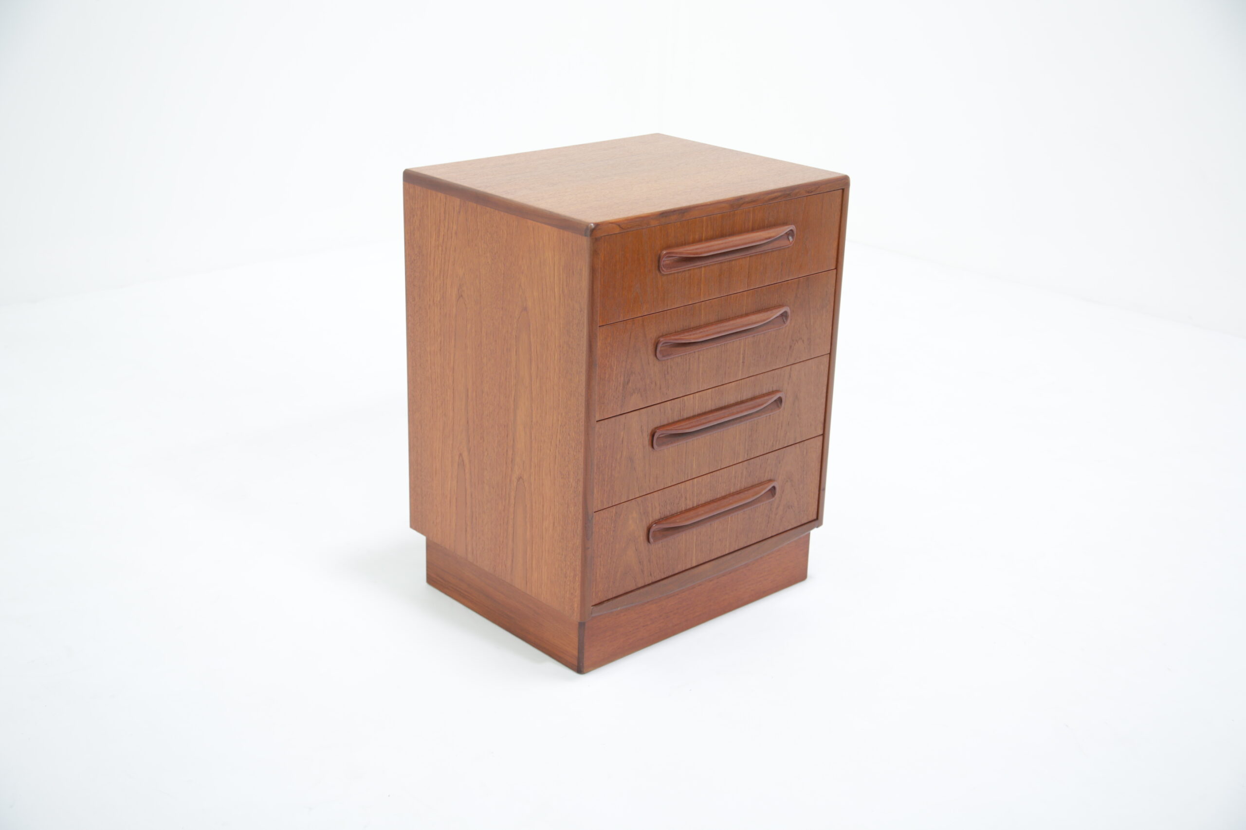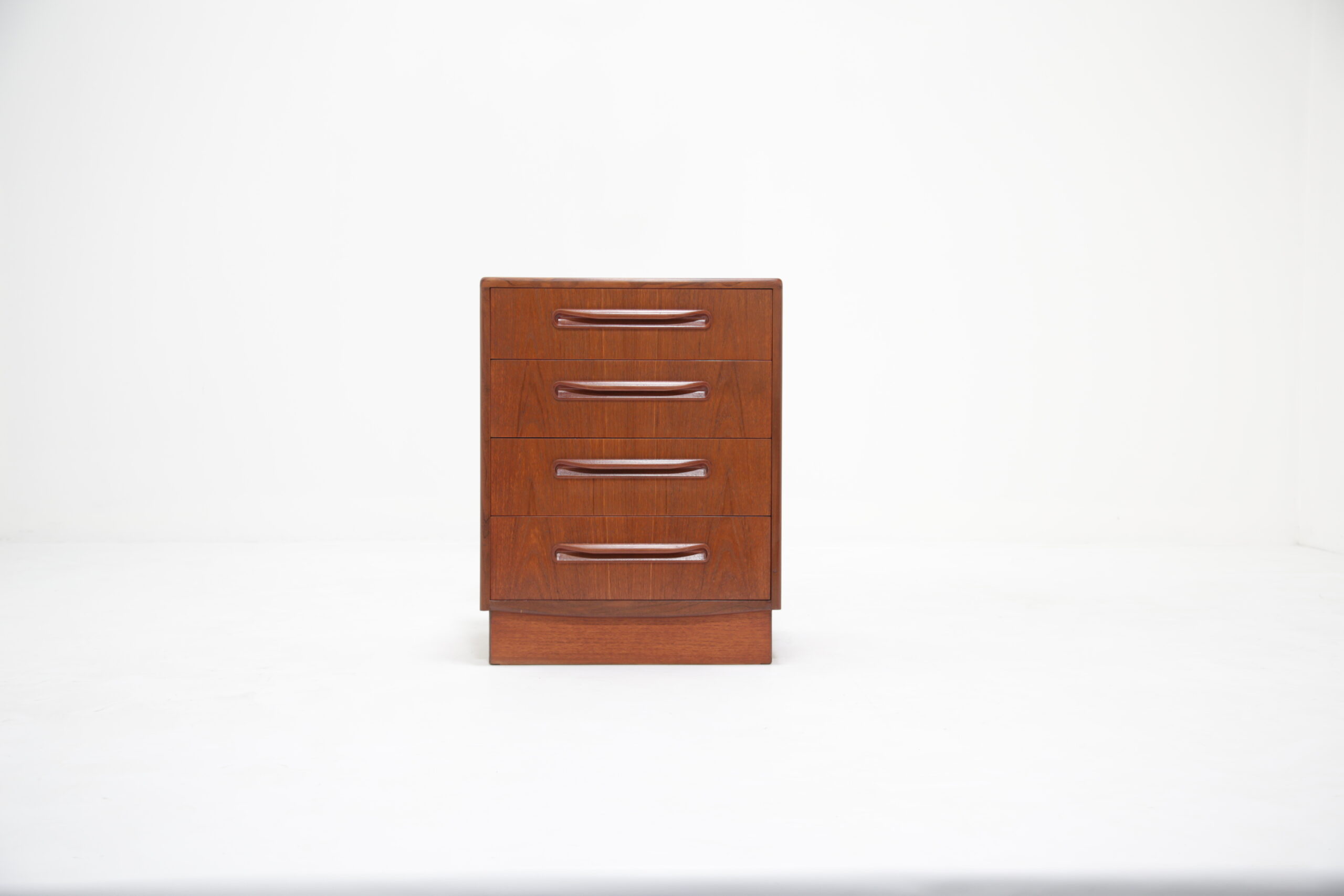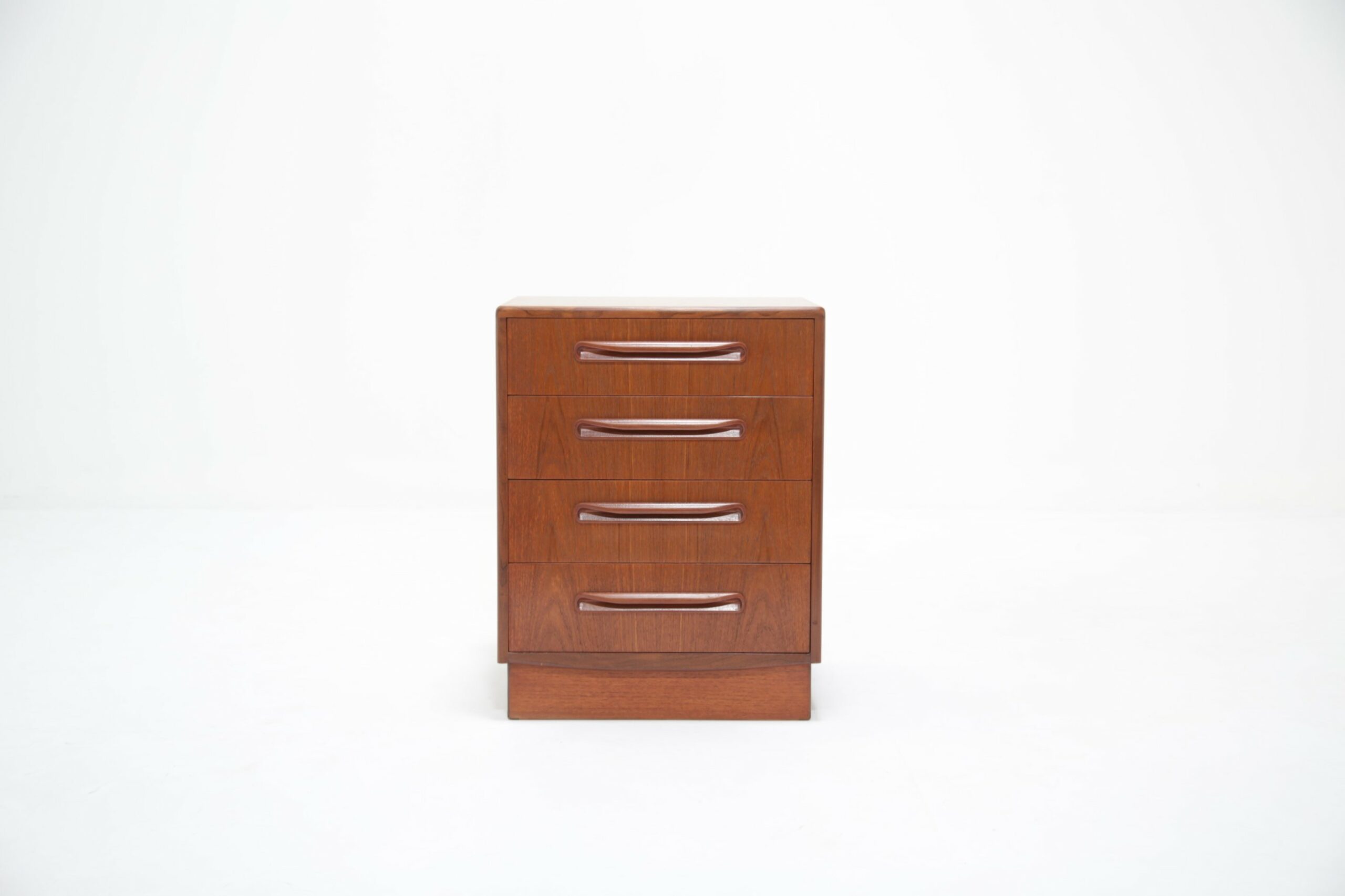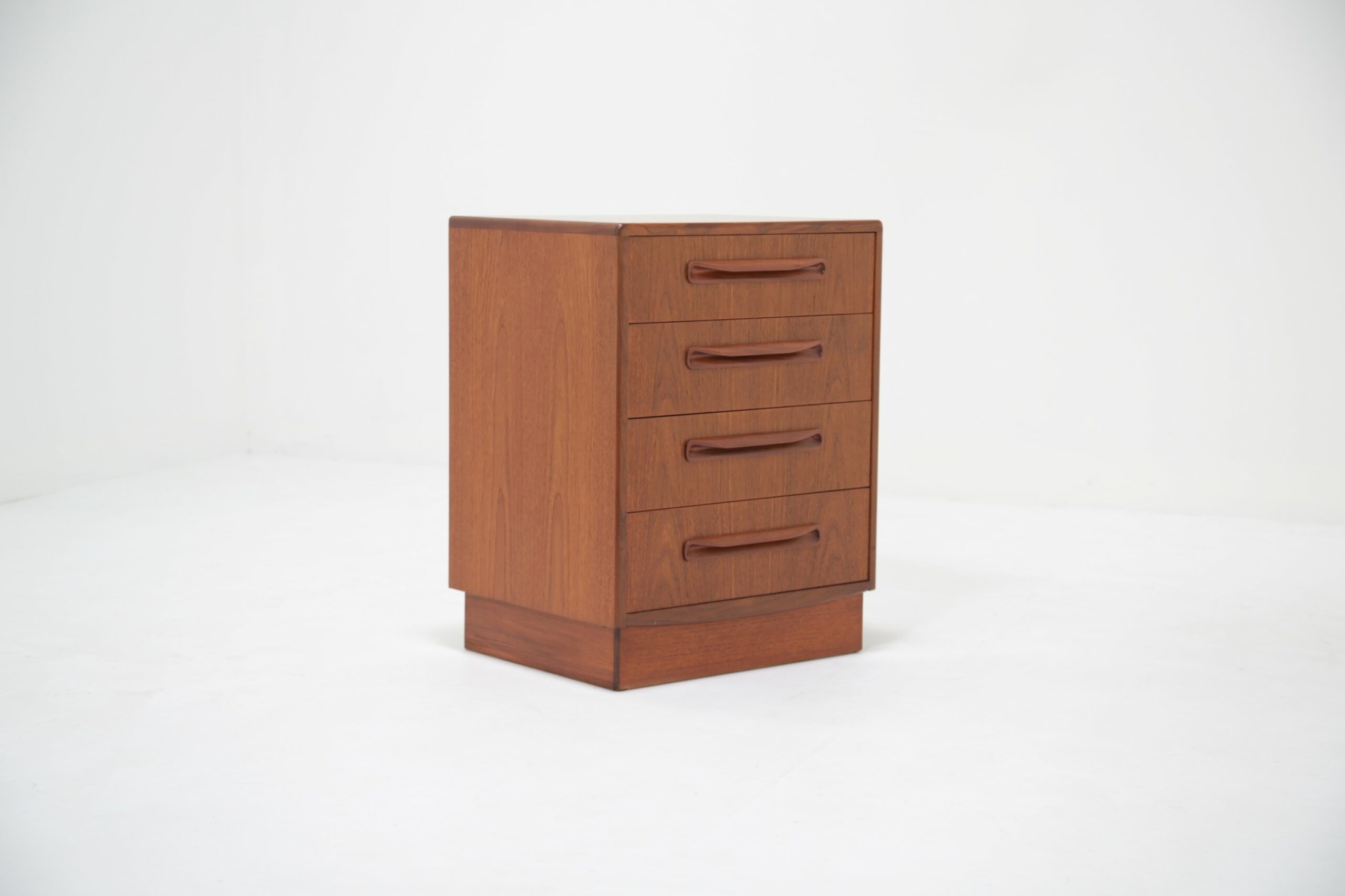 If you are looking for a compact chest of drawers that offers plenty of storage, this is the one for you. Featuring four slide-out drawers with beautifully curved handles and manufactured in teak, this unit is a perfect addition to any bedroom.