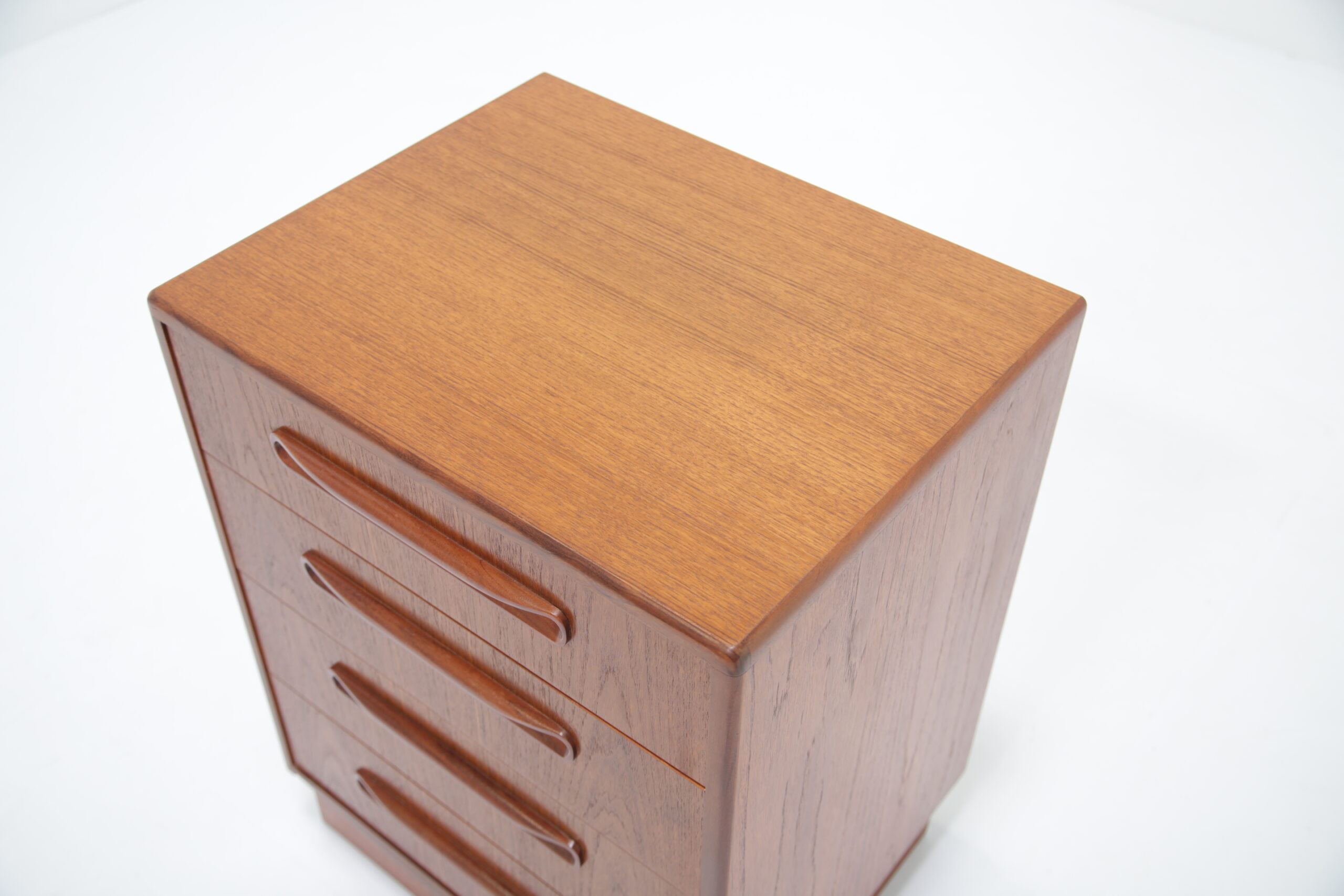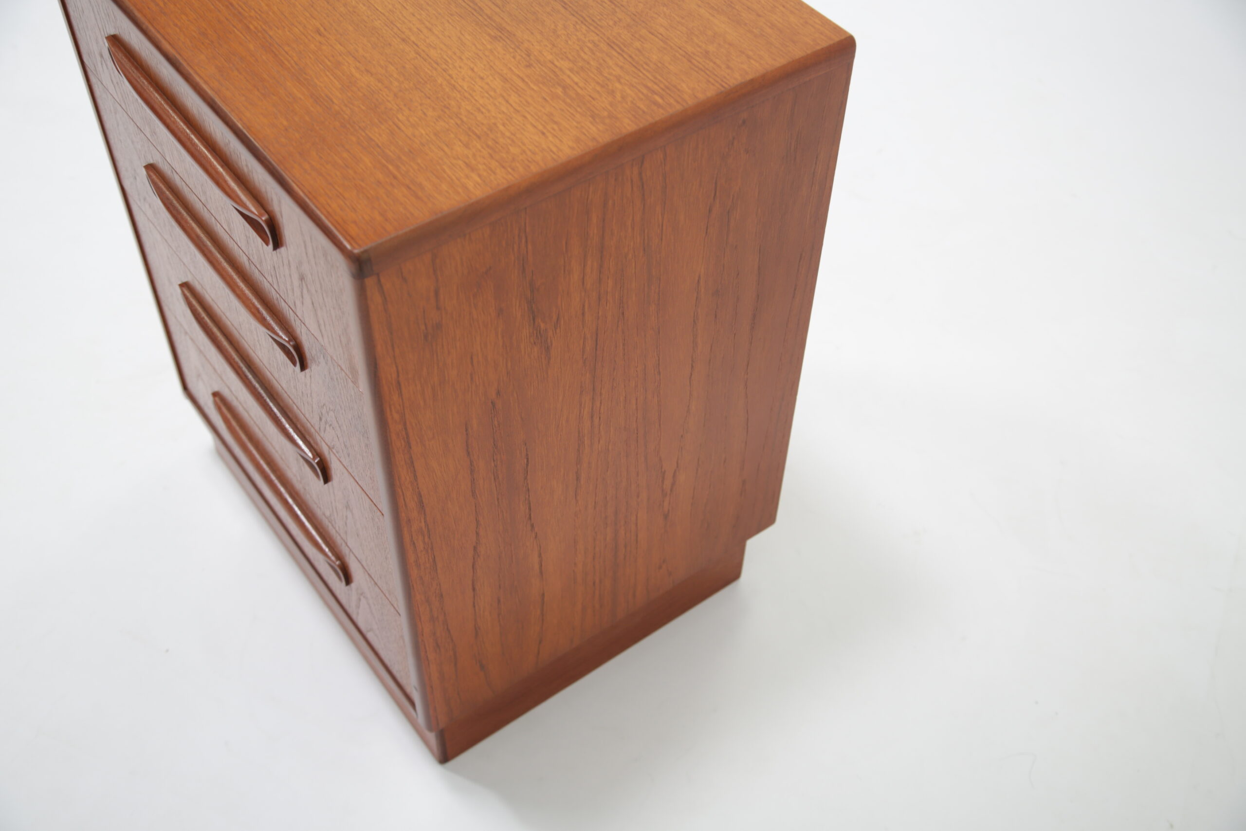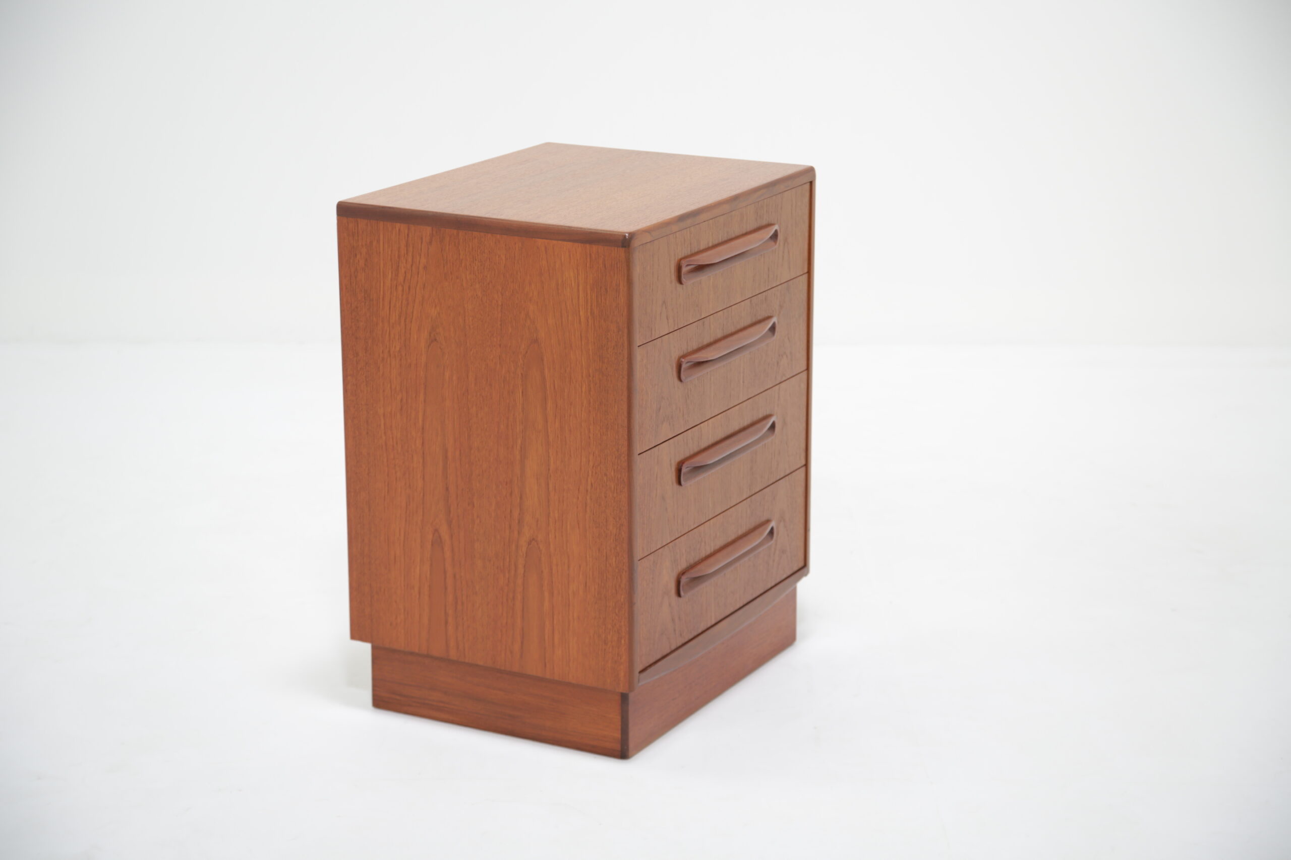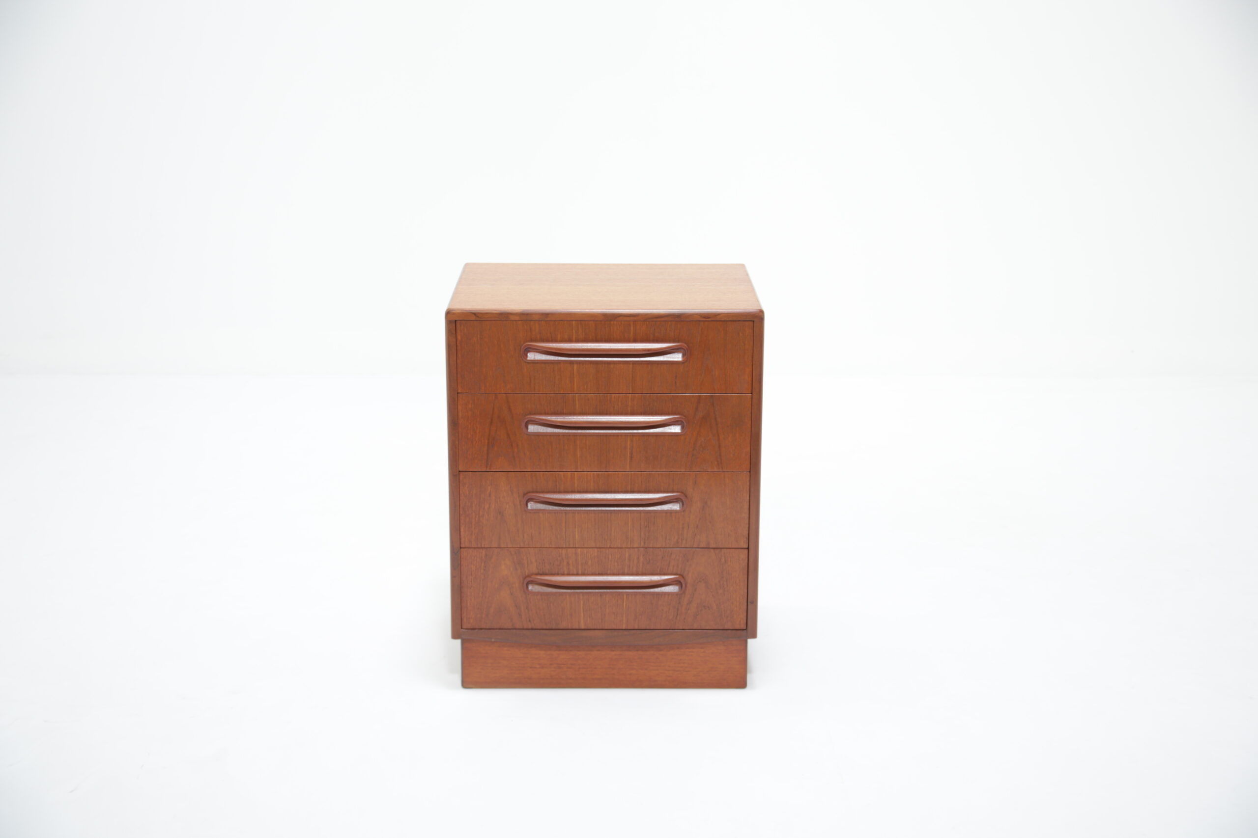 If you are looking for a compact chest of drawers that offers plenty of storage, this is the one for you. Featuring four slide-out drawers with beautifully curved handles and manufactured in teak, this unit is a perfect addition to any bedroom.