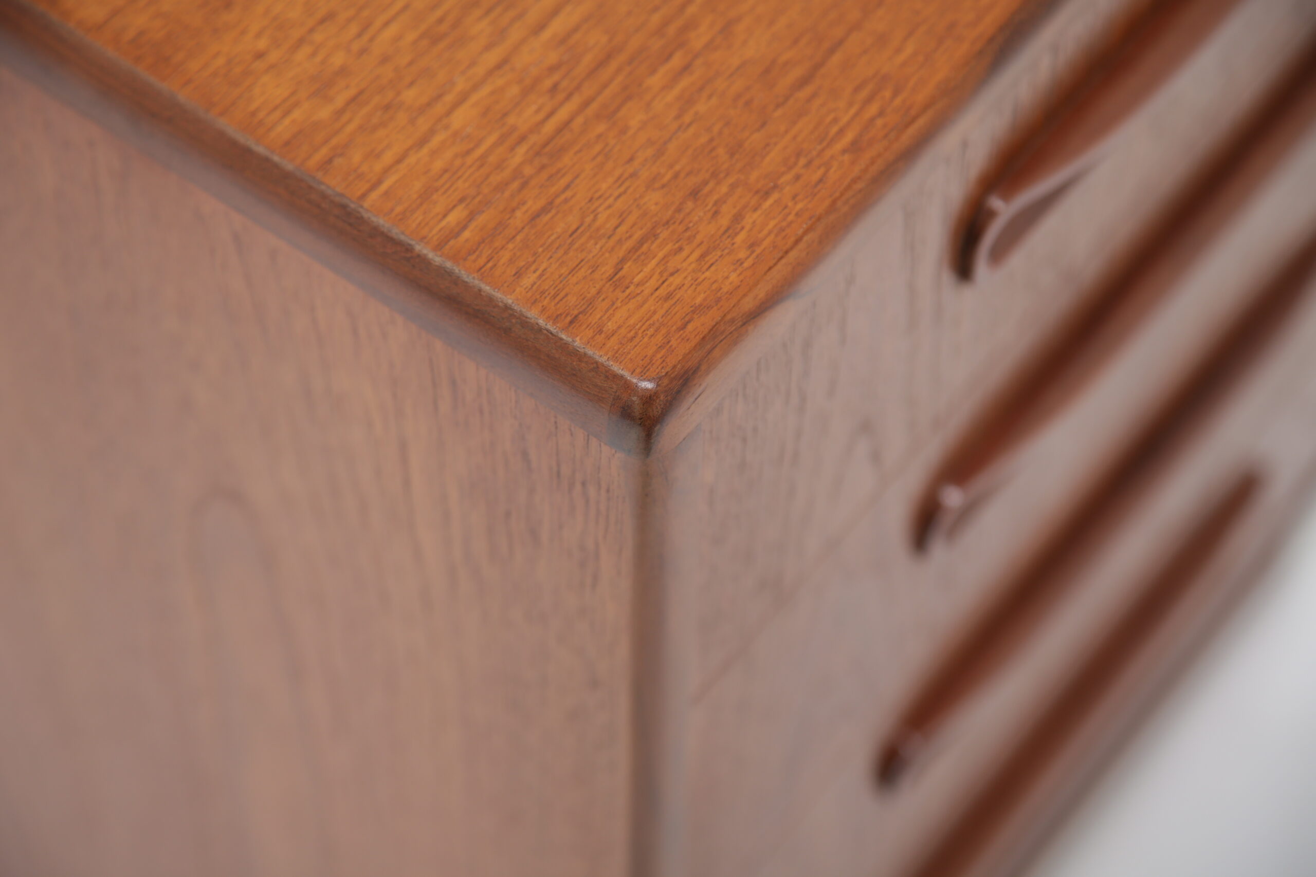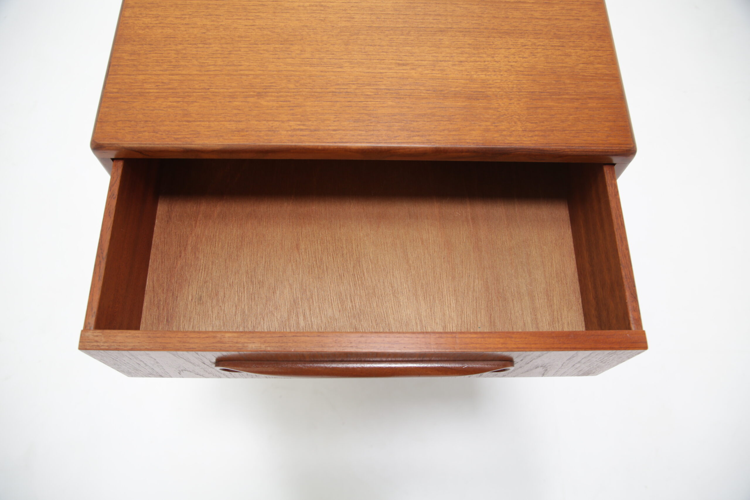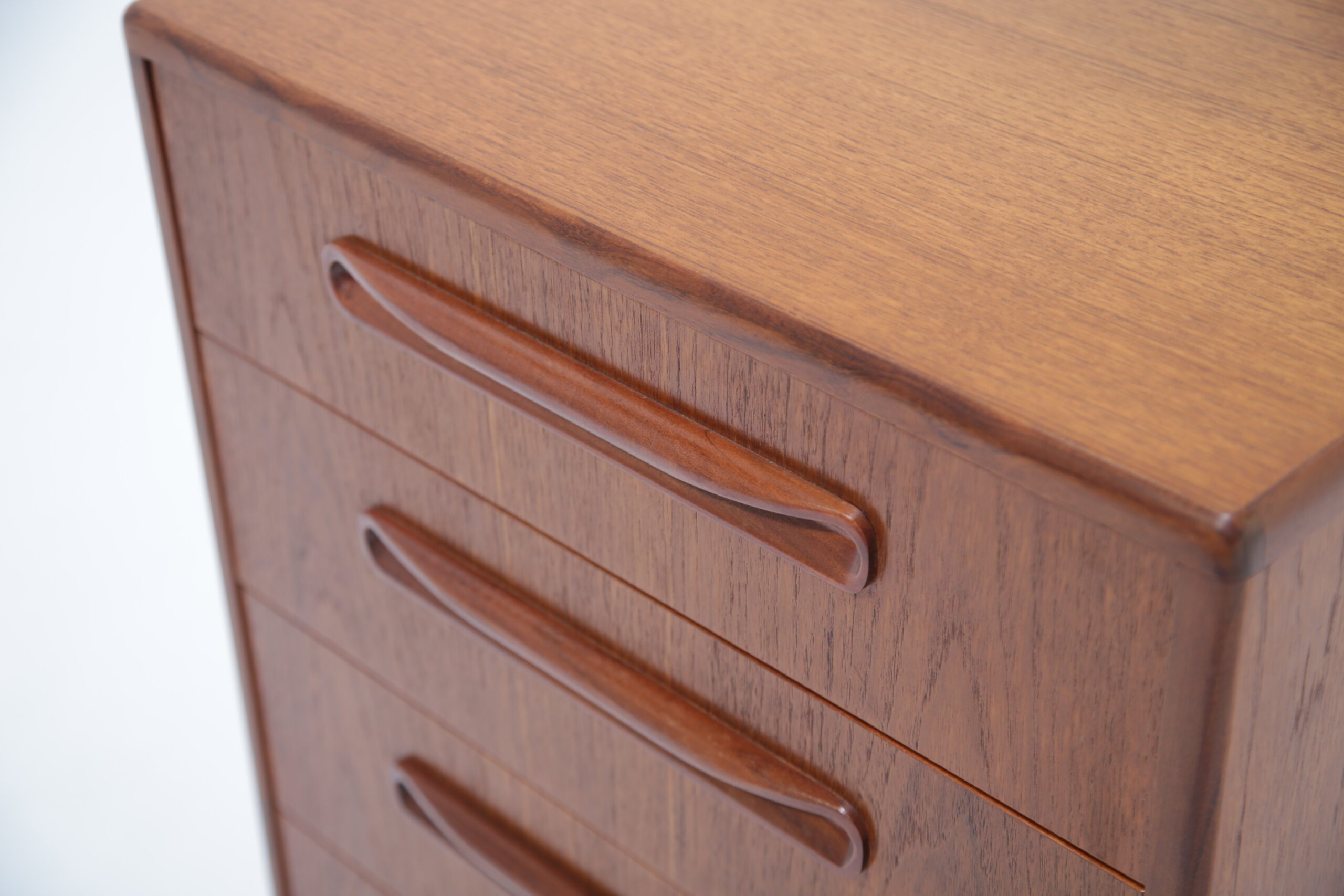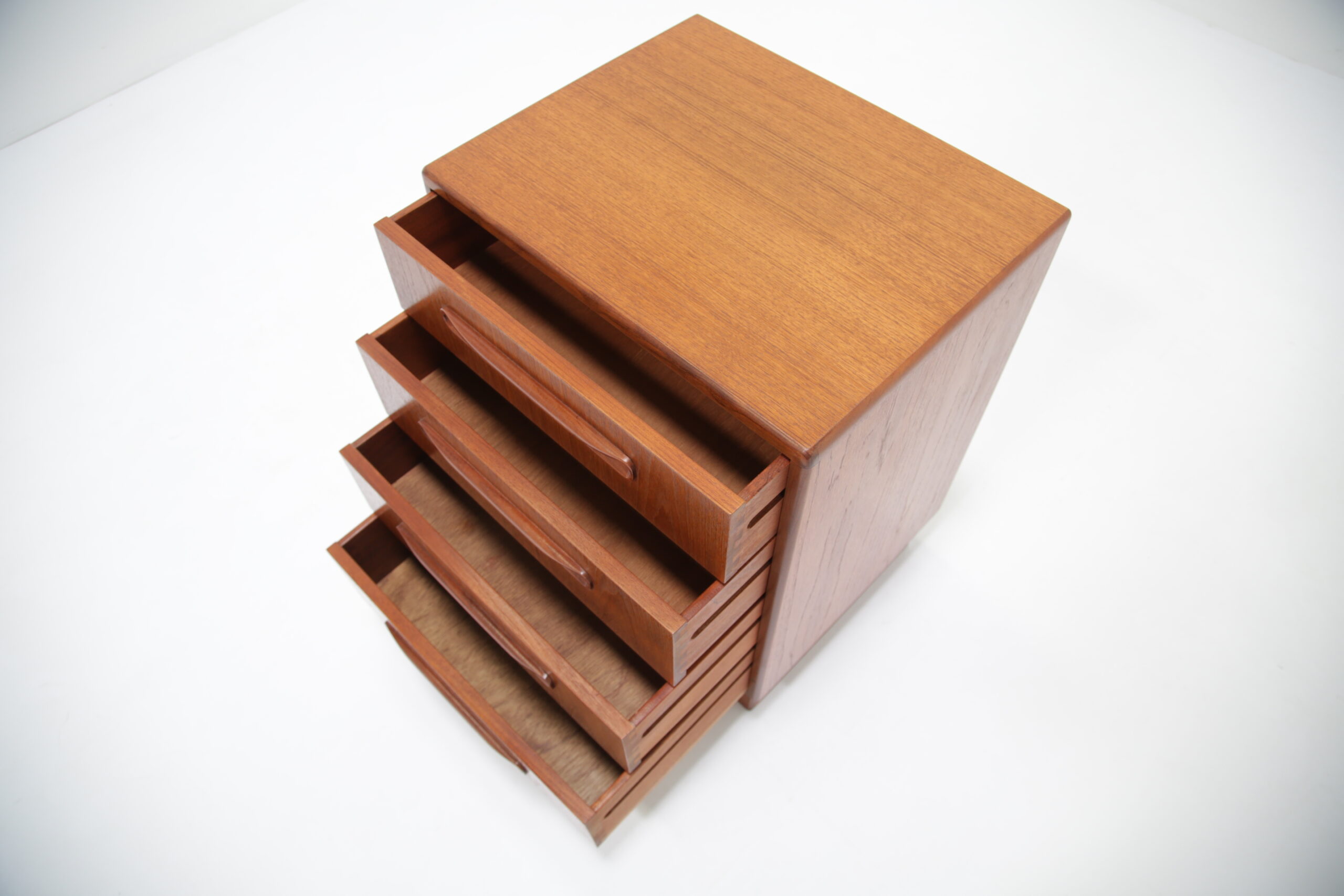 If you are looking for a compact chest of drawers that offers plenty of storage, this is the one for you. Featuring four slide-out drawers with beautifully curved handles and manufactured in teak, this unit is a perfect addition to any bedroom.