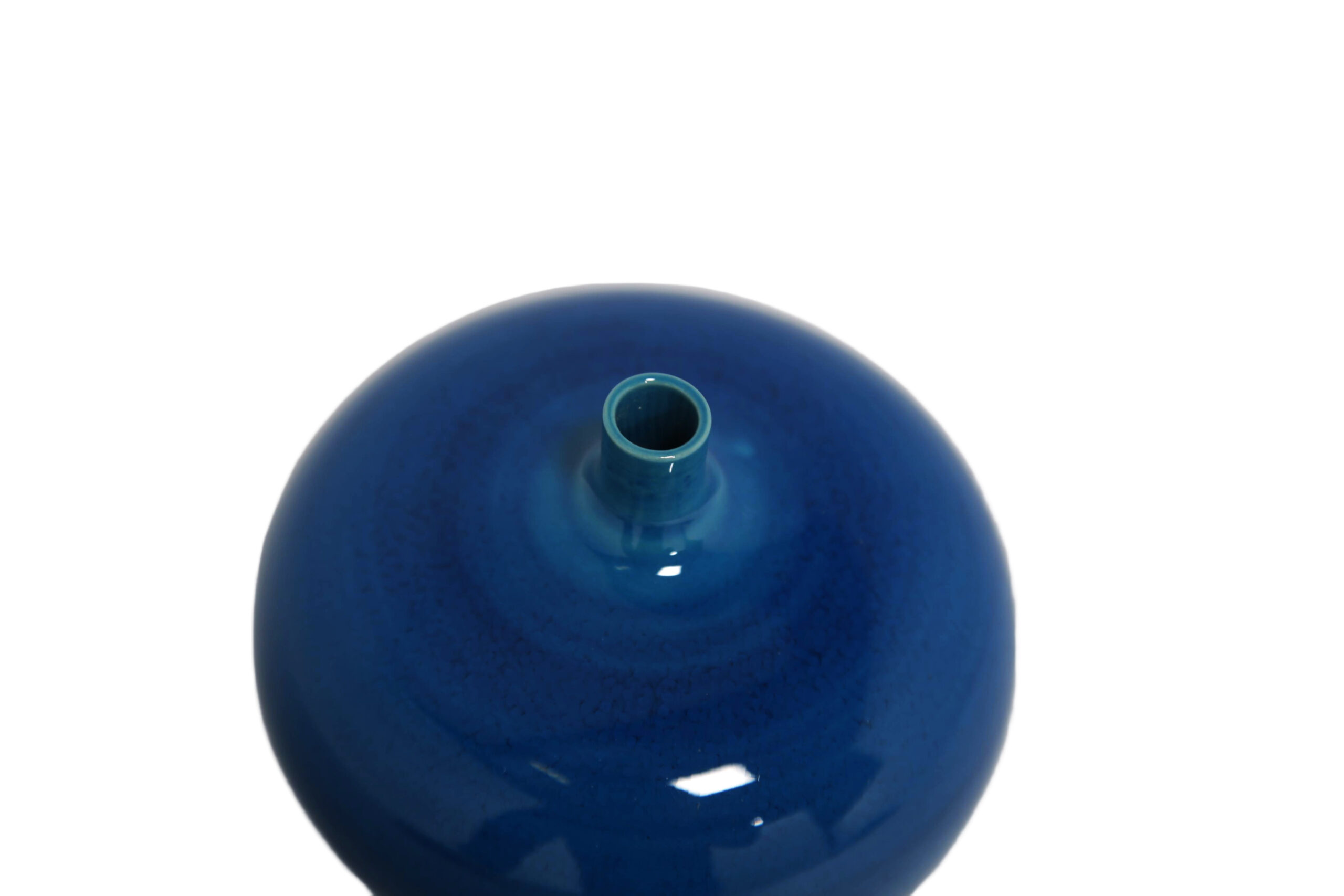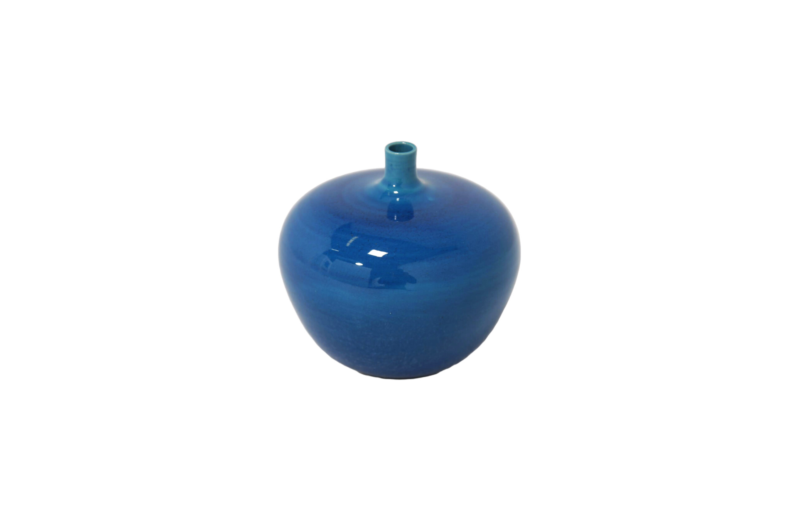 Designed by renowned Swedish ceramic artist Carl-Harry Stålhane for Rörstrand, this elegant bud vase dates to 1956 and carries the “SPC” mark, denoting its production year. Typical of Stålhane’s refined aesthetic, the form is beautifully restrained—slender neck rising from a softly rounded base, creating a delicate silhouette that effortlessly balances simplicity with sculptural poise. The glaze exhibits wonderful tonal depth, with subtle shifts across the surface that highlight the handcrafted nature of the piece. Stålhane, a leading figure in Scandinavian studio ceramics, is celebrated for his mastery of glaze experimentation and organic shapes, both of which are quietly present here.