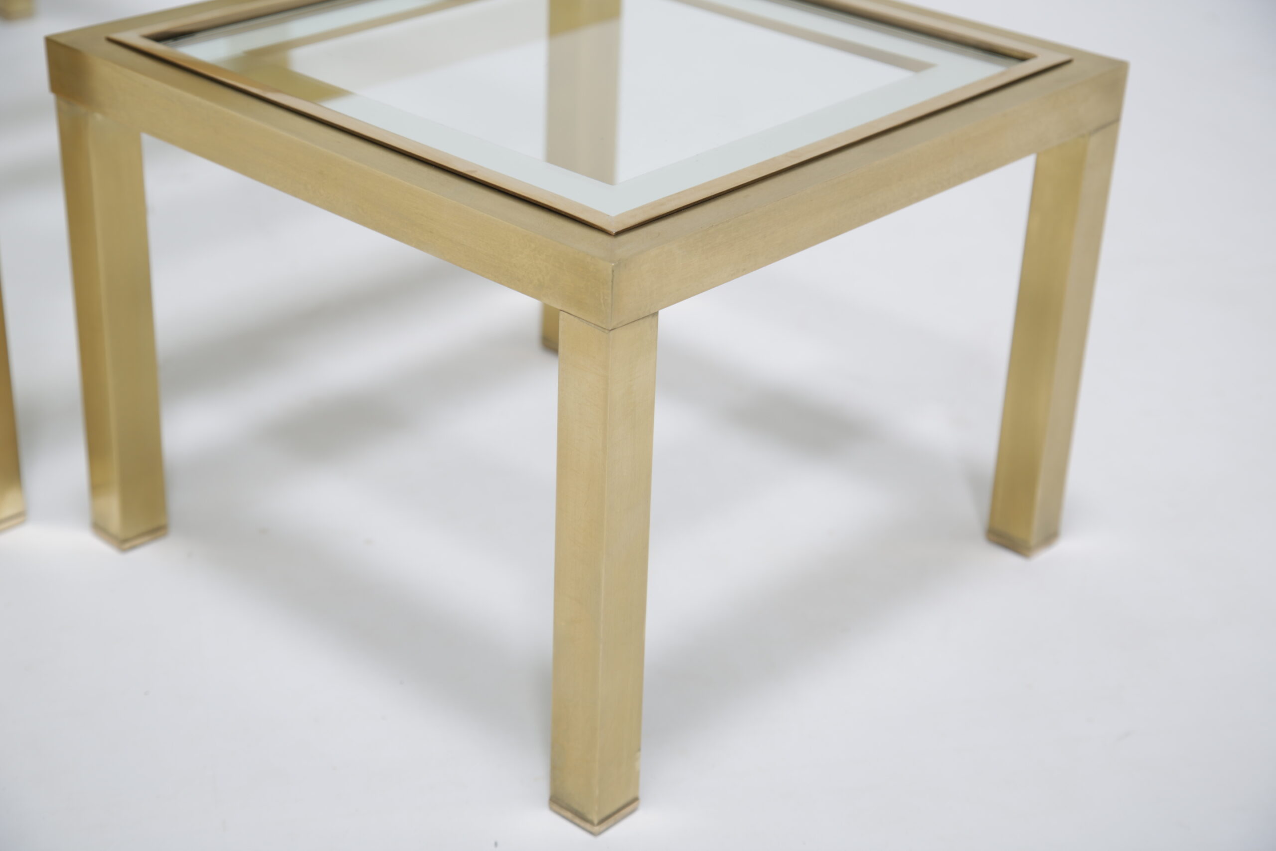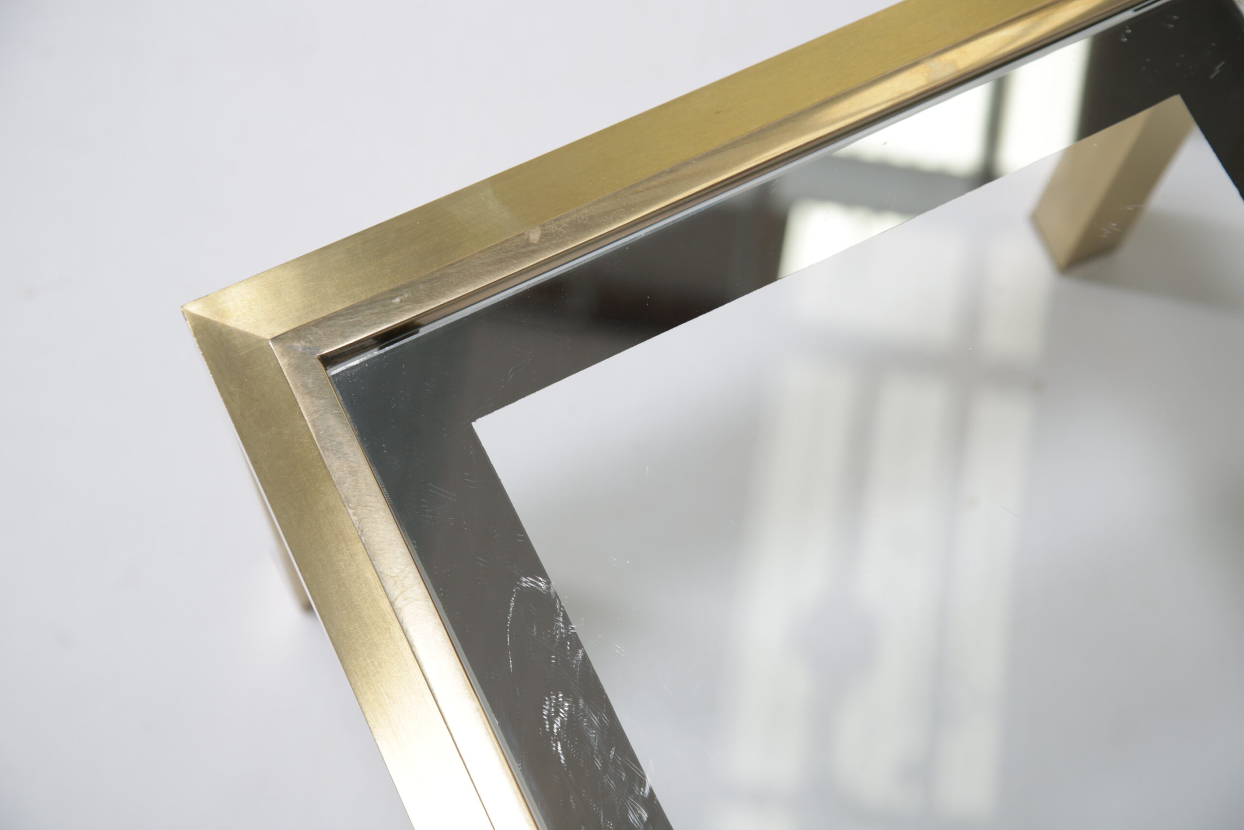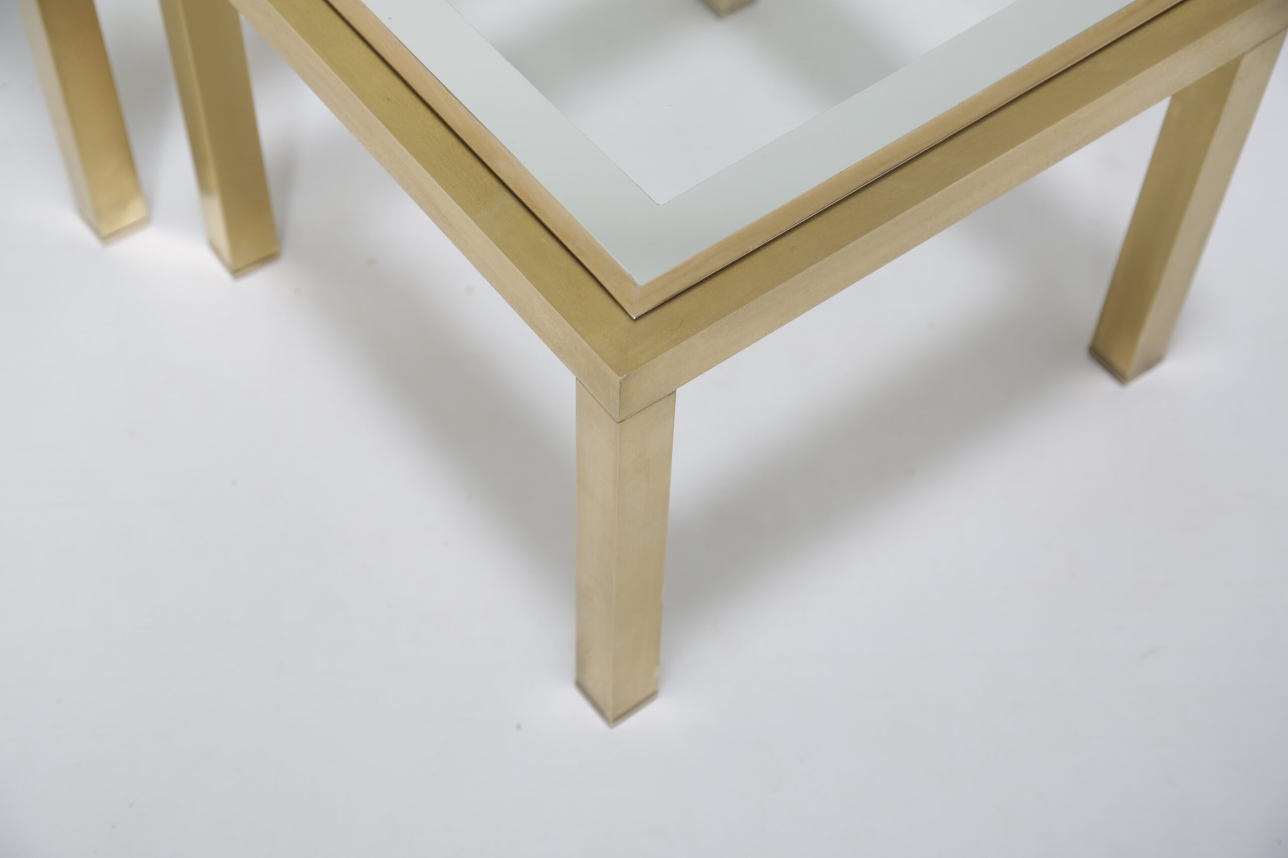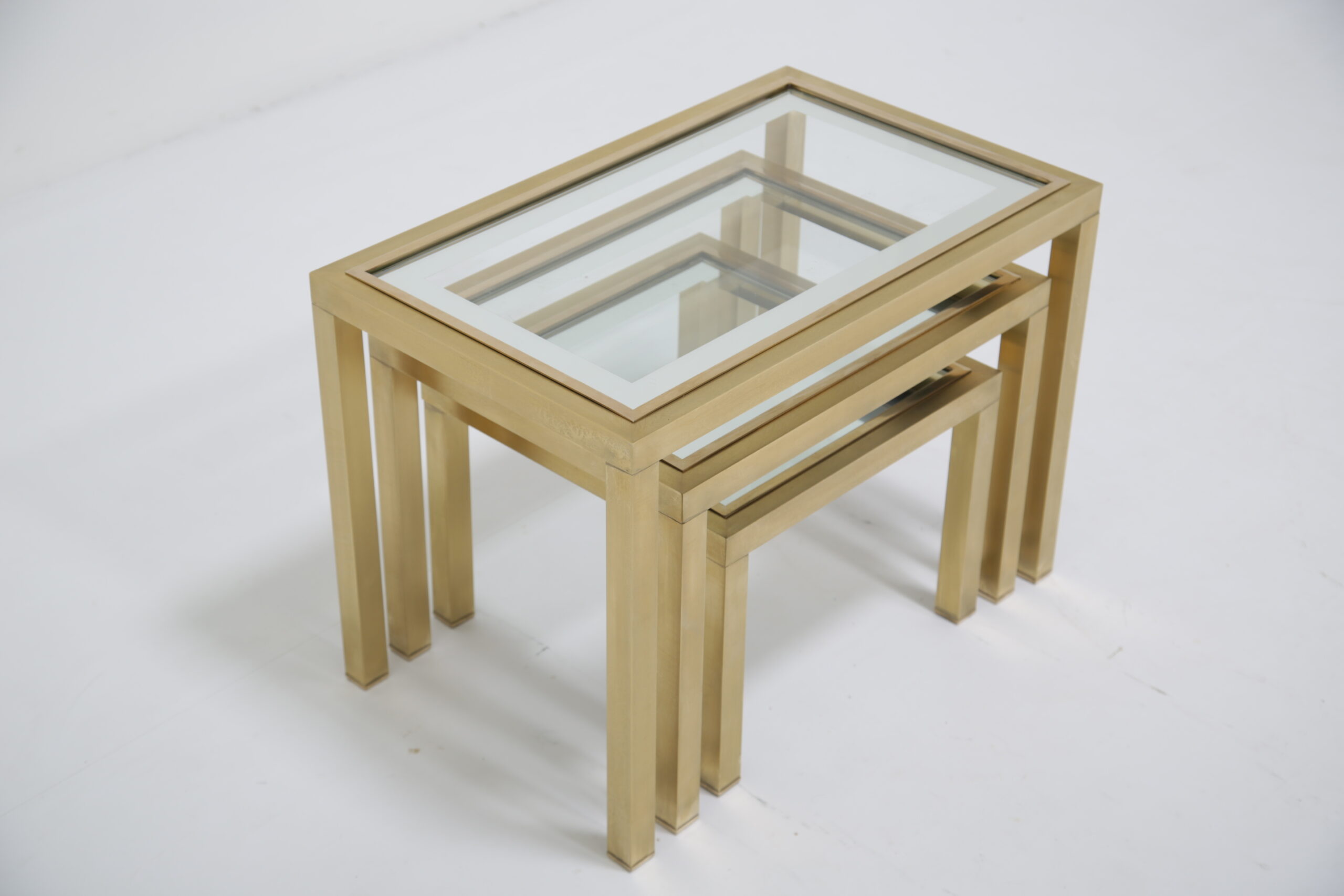 Take a look at these stunning nest of tables in brass with mirrored and clear glass inserts that slots nicely into the frame. These tables are manufactured in solid brass and has been professionally polished for a nice clean finish. Perfect for a living room space that requires extra tables or even for a commercial place such as a lounge or office. Designer remains unknown but these were purchased in Italy.