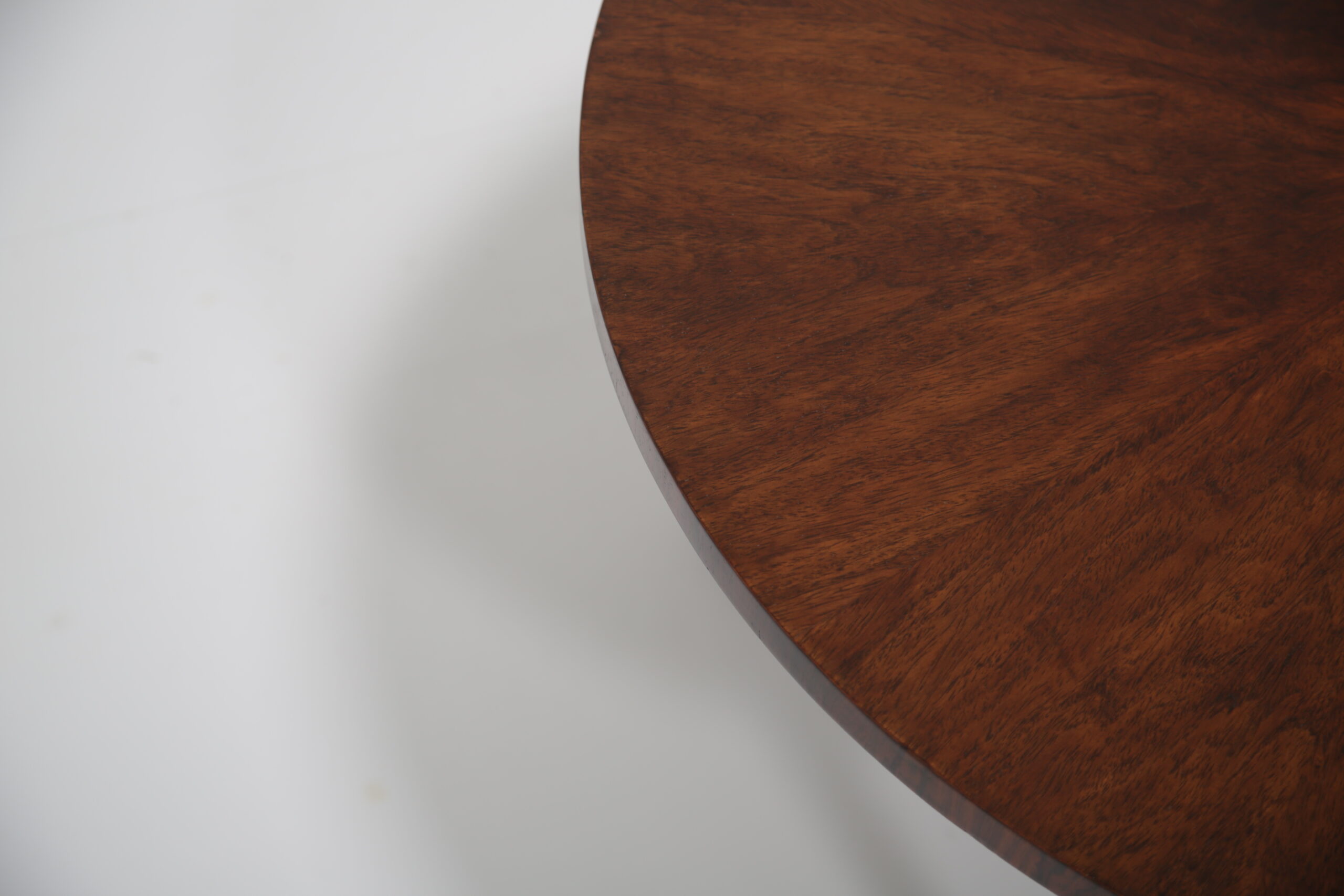 The circular form and compact scale make it ideal for living spaces in need of a warm focal point—balancing rich materials with elegant simplicity.