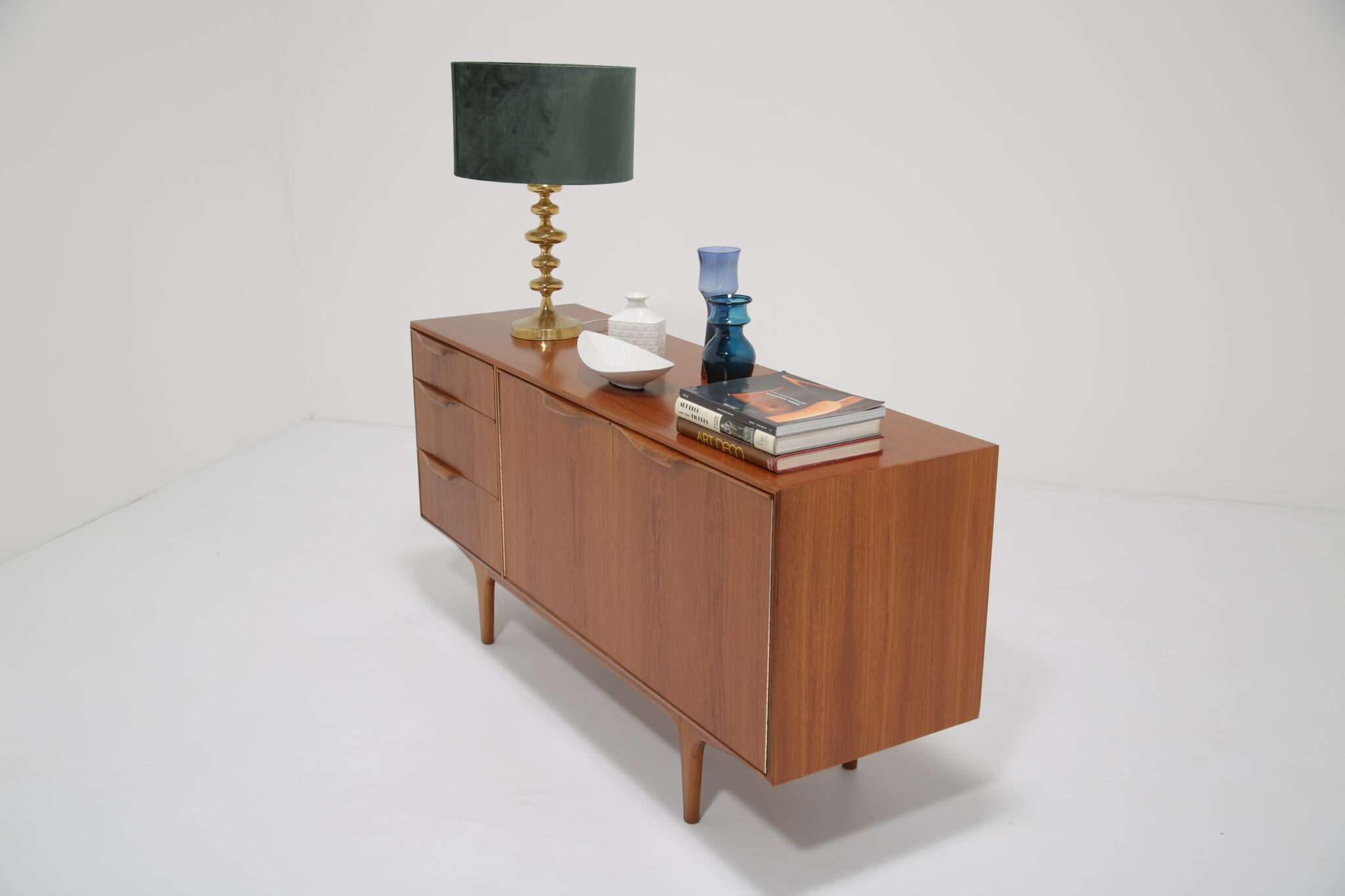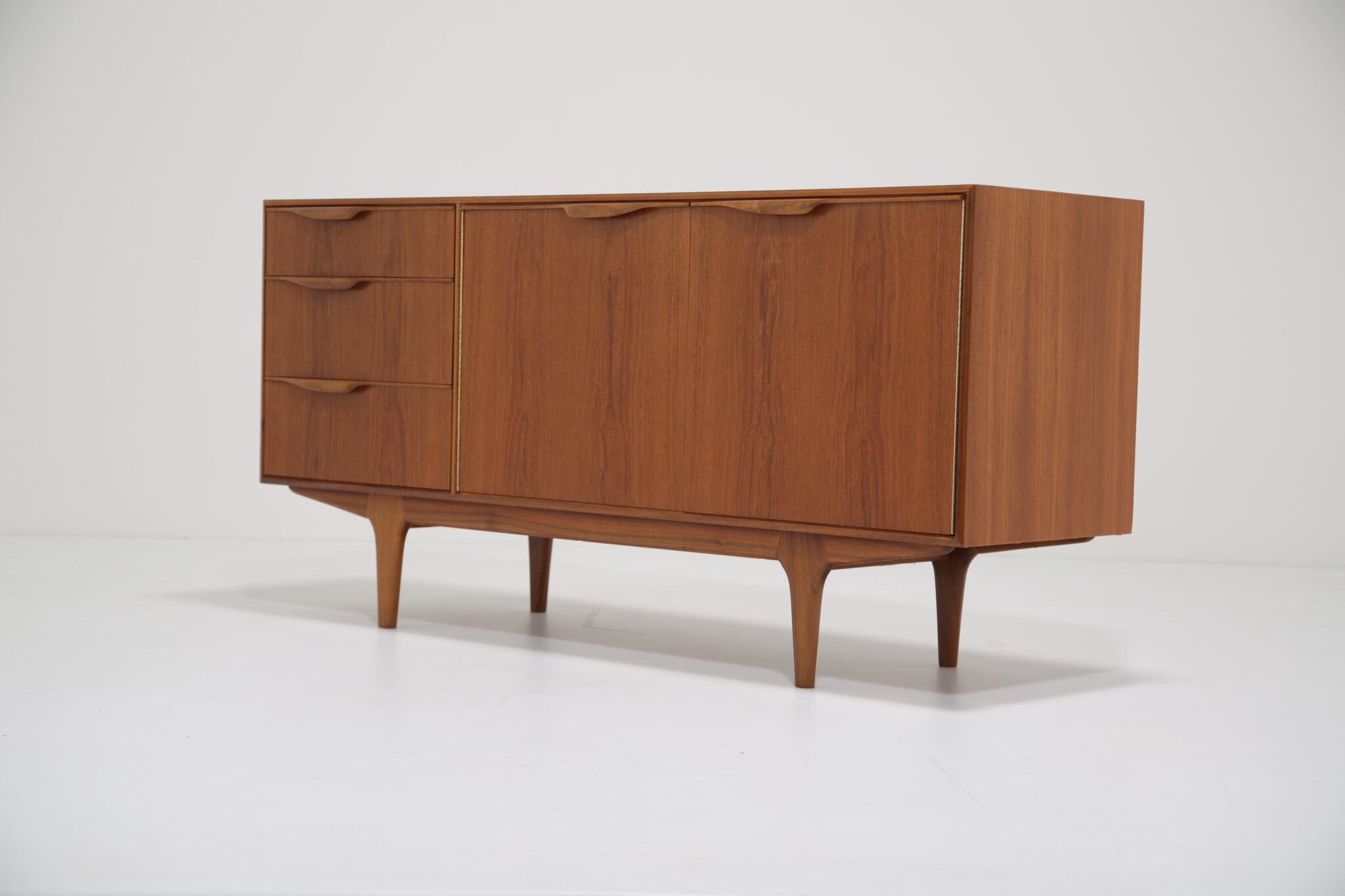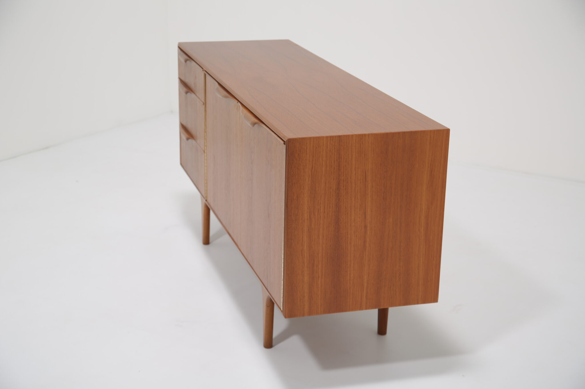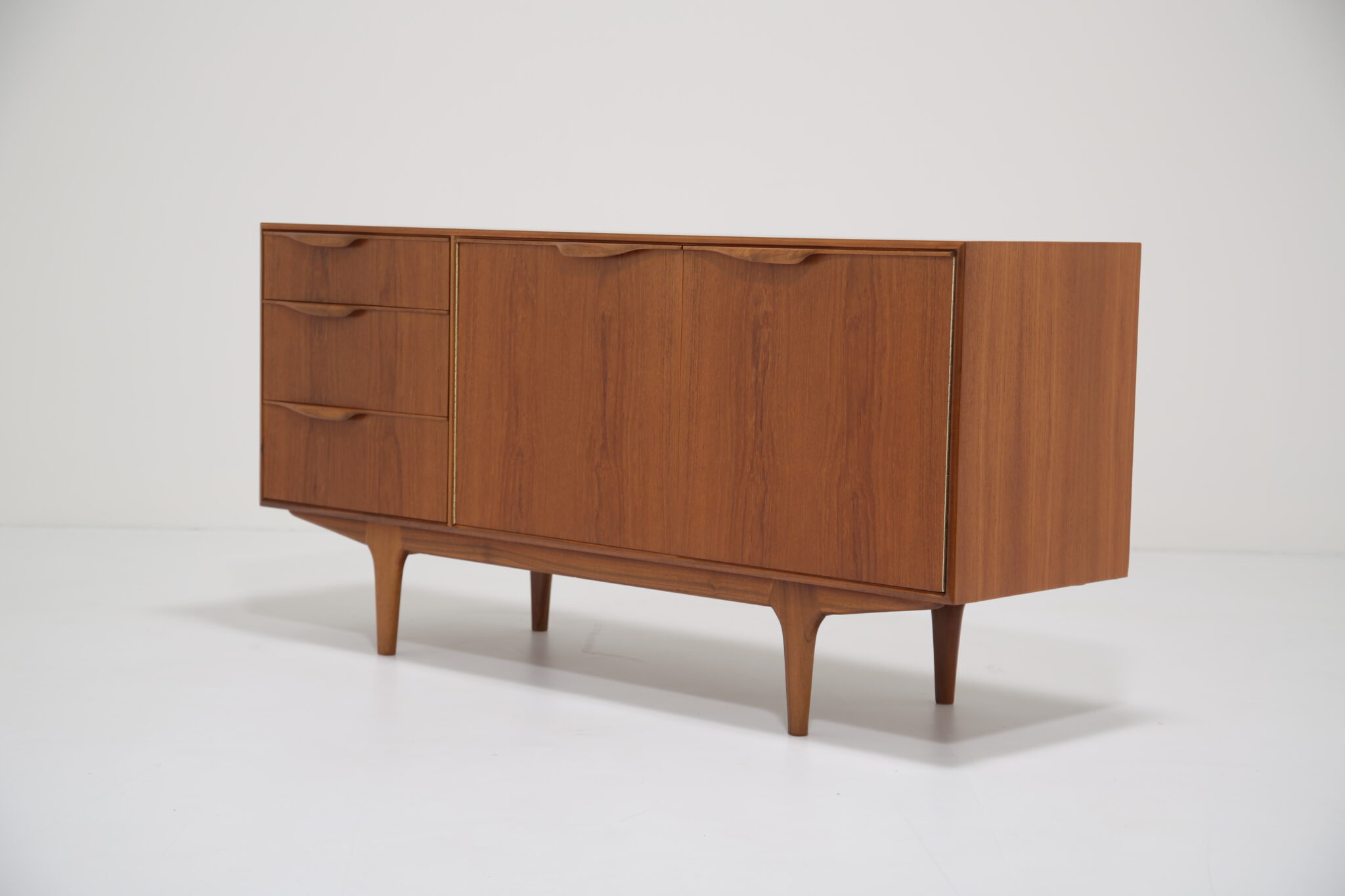 This sideboard exemplifies elegant, functional mid-century Scottish design. Measuring 152 cm wide, it fits perfectly into townhouses, apartments, or any compact space that requires smart storage without compromising style. Its timeless teak finish and clean lines make it a standout piece for modern and vintage interiors alike.