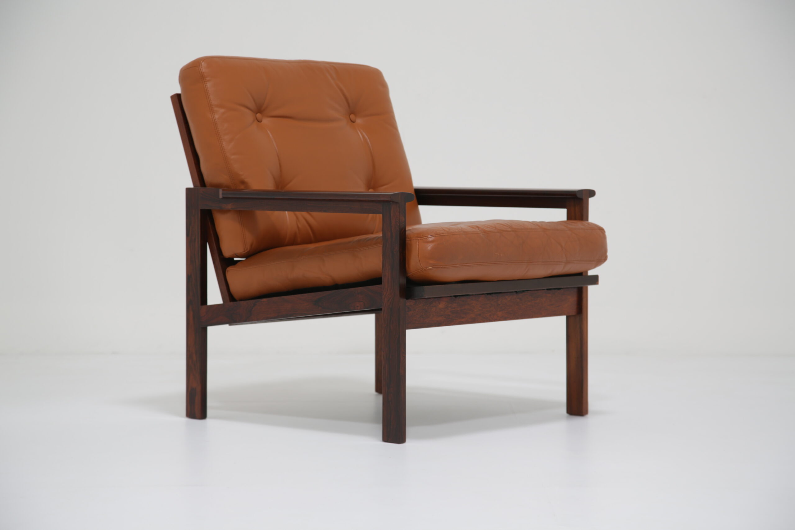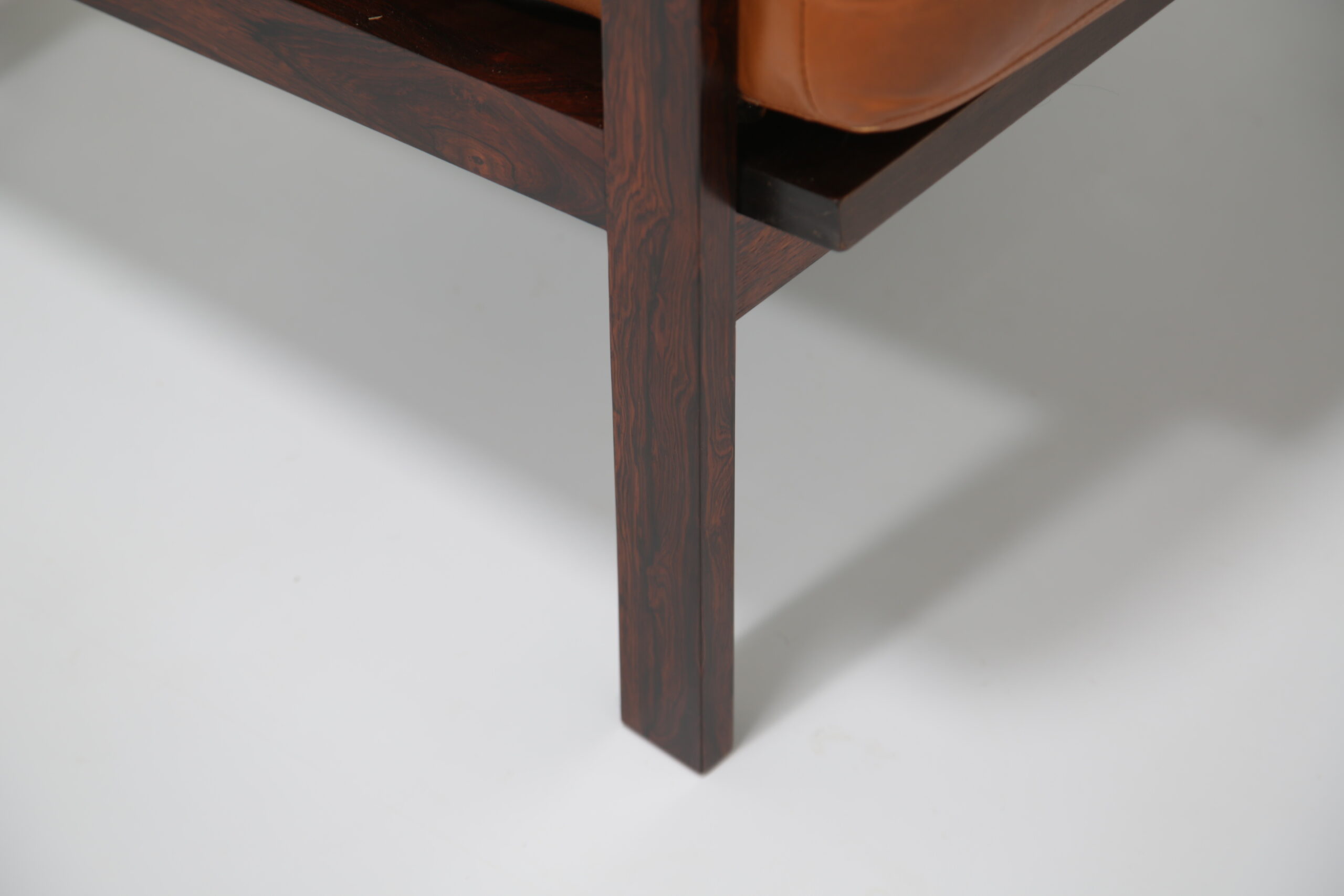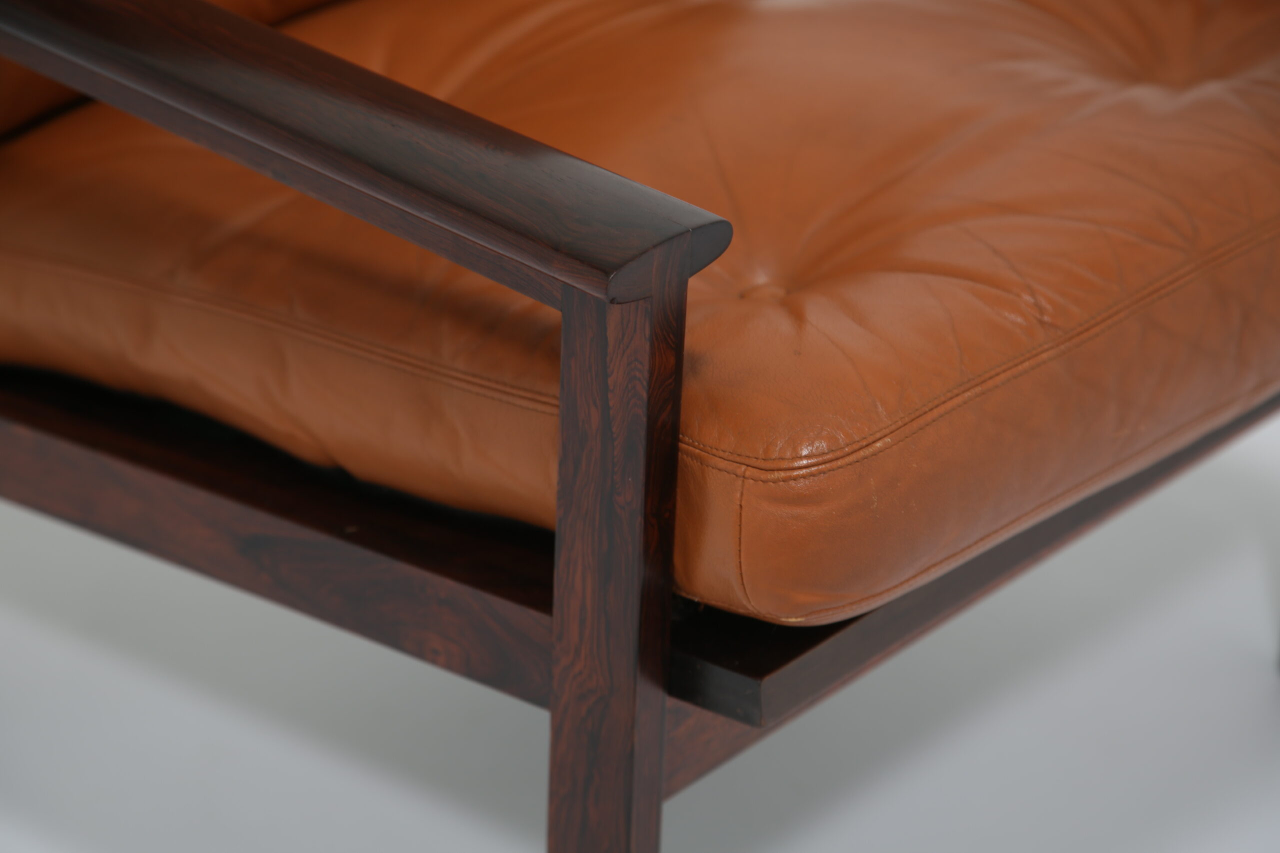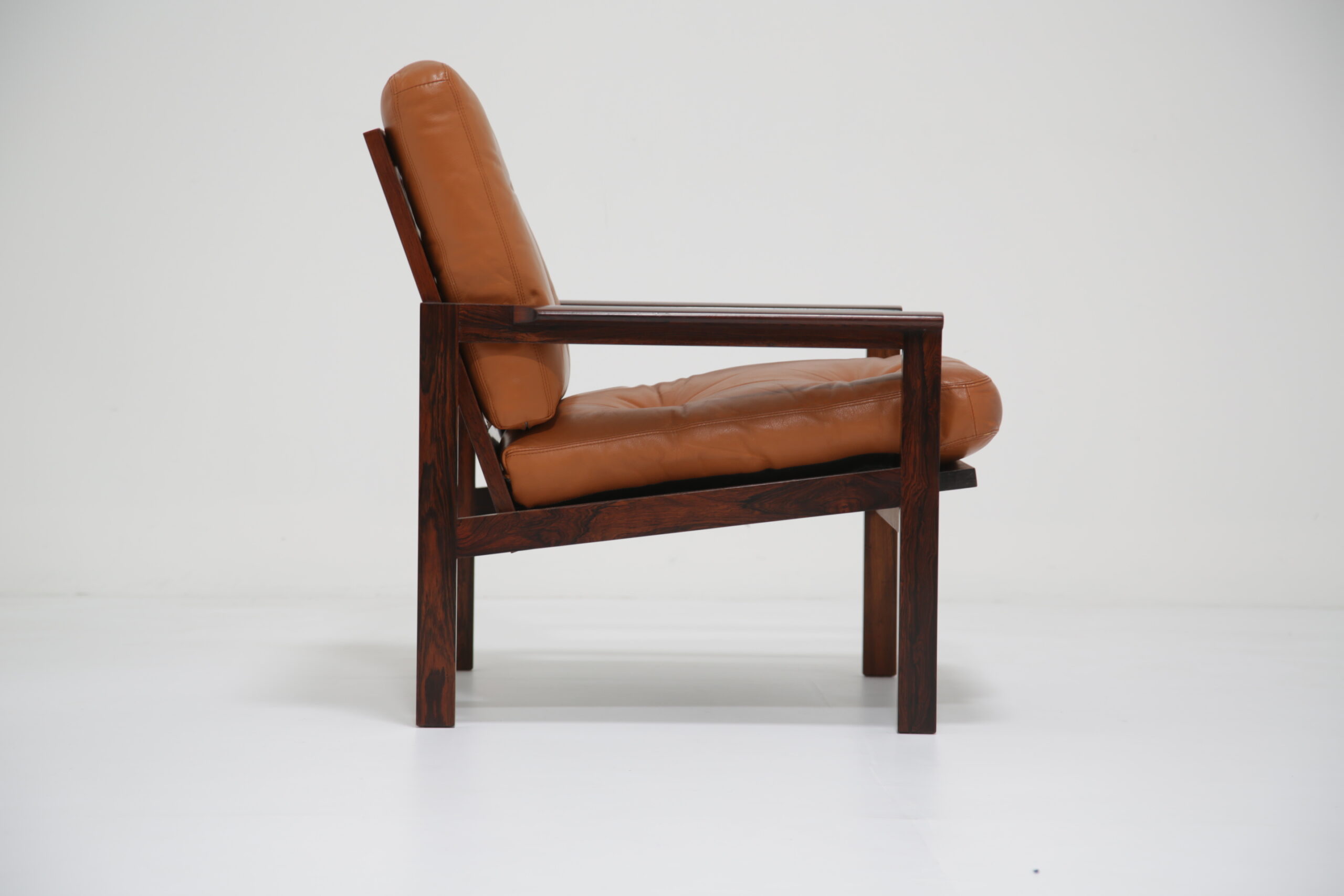 Just added to our collection is this stunning armchair, featuring tan leather cushions and was designed by the renowned Danish designer Illum Wikkelso in the 1950s. Sold under the model name “Capella”. The chair is manufactured in rosewood which has a lovely deep and rich grain, evident throughout the armchair. This armchair would be the perfect addition to any living room, lounge area or office requiring a comfortable chair to sit in to relax, read or just simply watch TV.