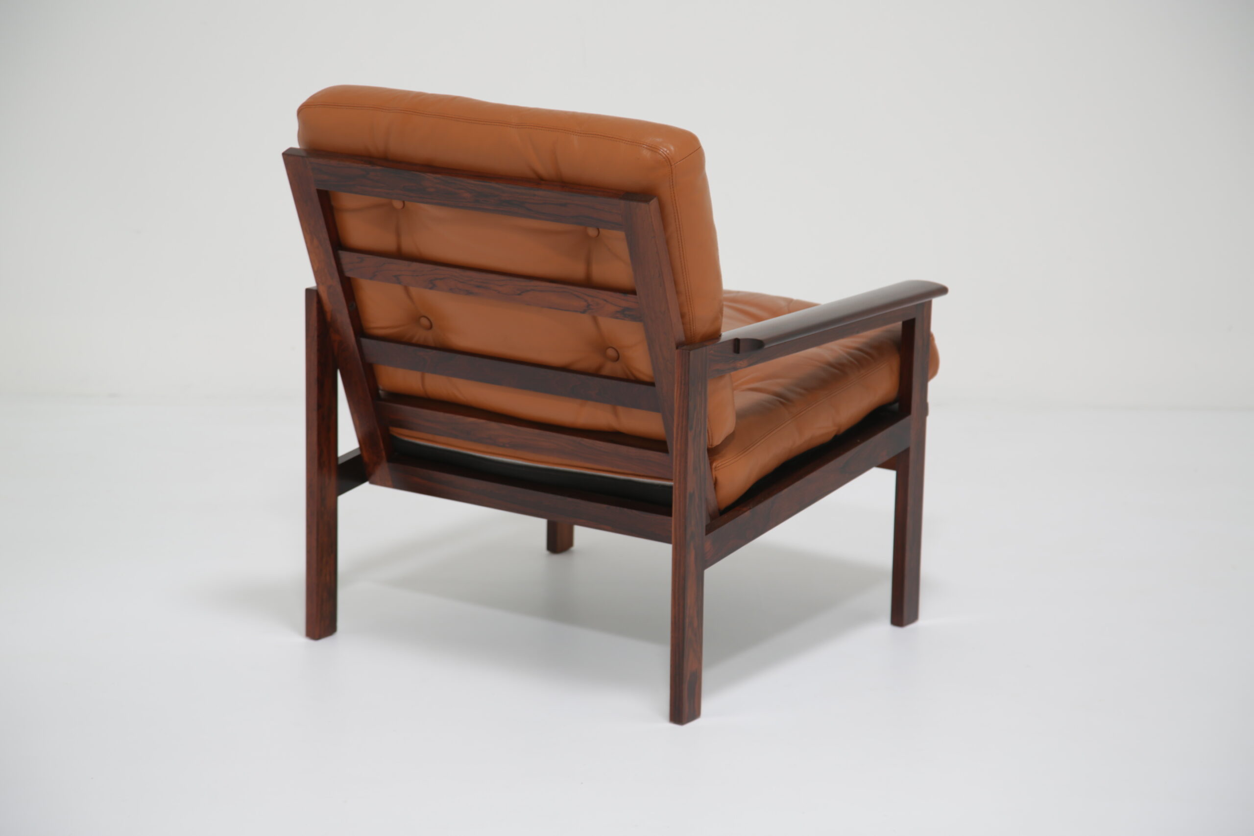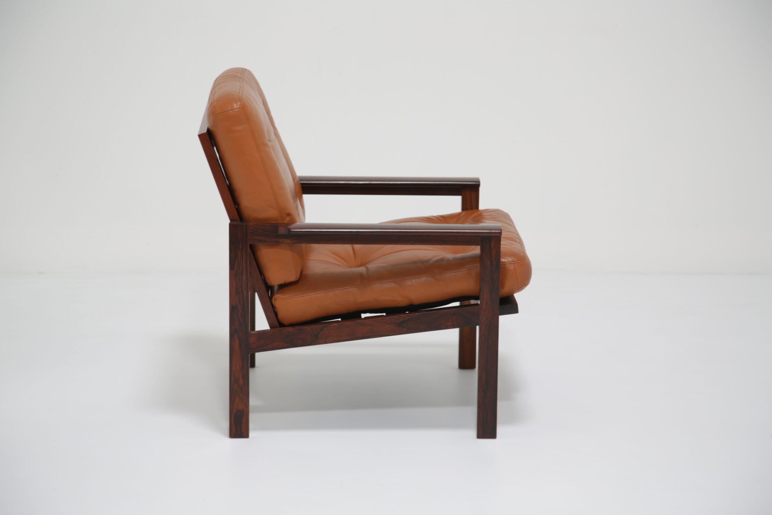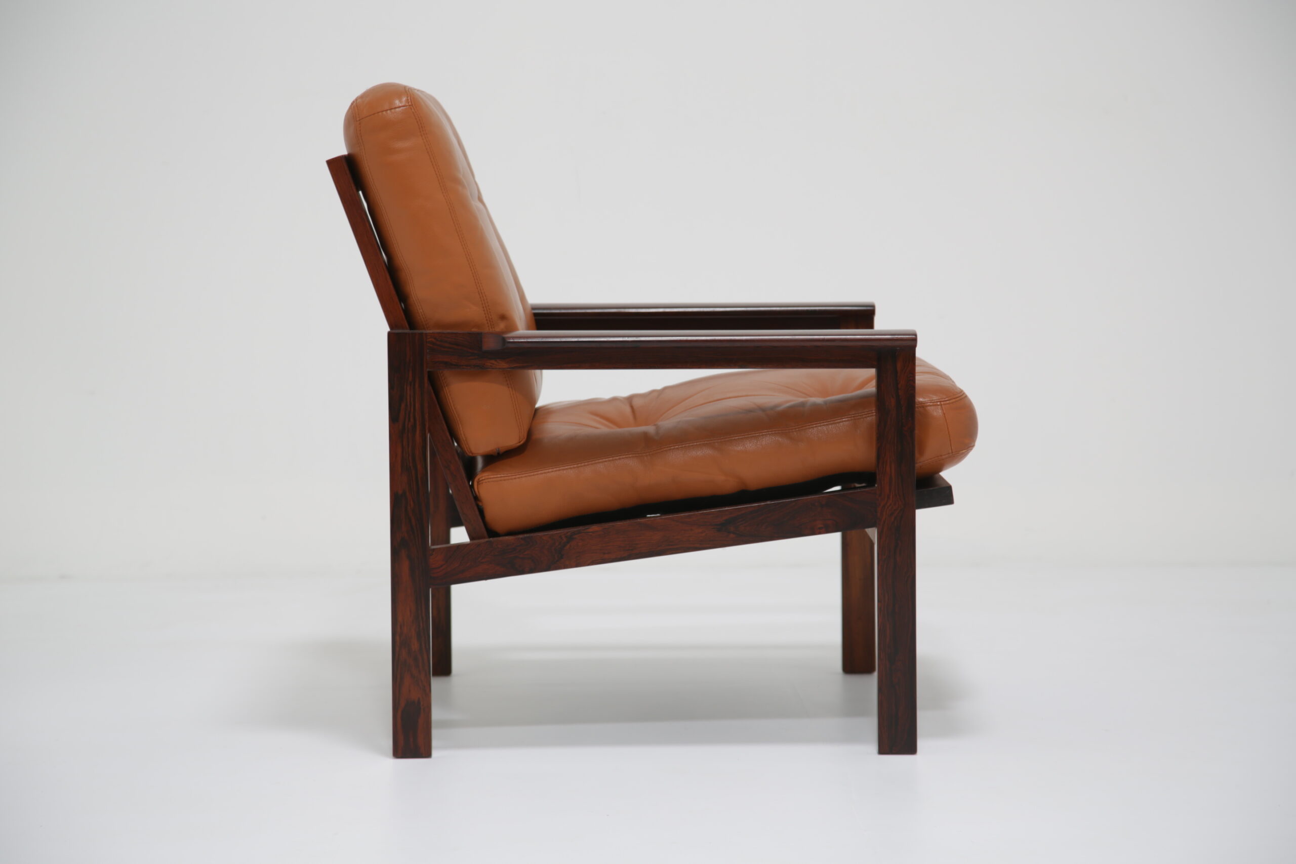 Just added to our collection is this stunning armchair, featuring tan leather cushions and was designed by the renowned Danish designer Illum Wikkelso in the 1950s. Sold under the model name “Capella”. The chair is manufactured in rosewood which has a lovely deep and rich grain, evident throughout the armchair. This armchair would be the perfect addition to any living room, lounge area or office requiring a comfortable chair to sit in to relax, read or just simply watch TV.