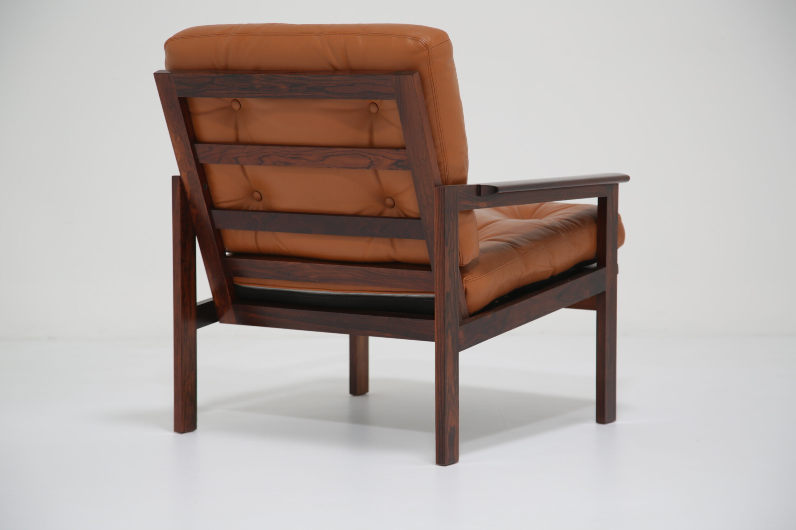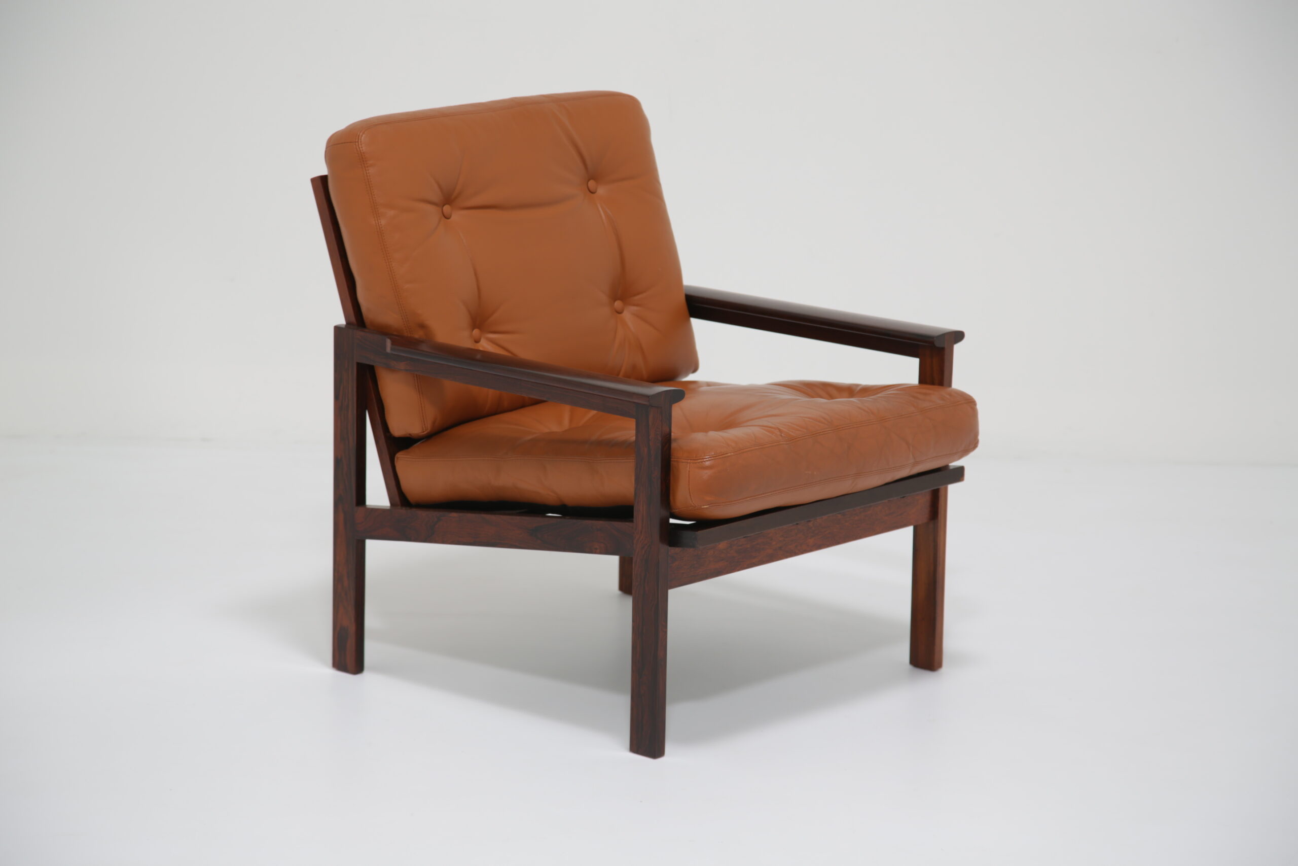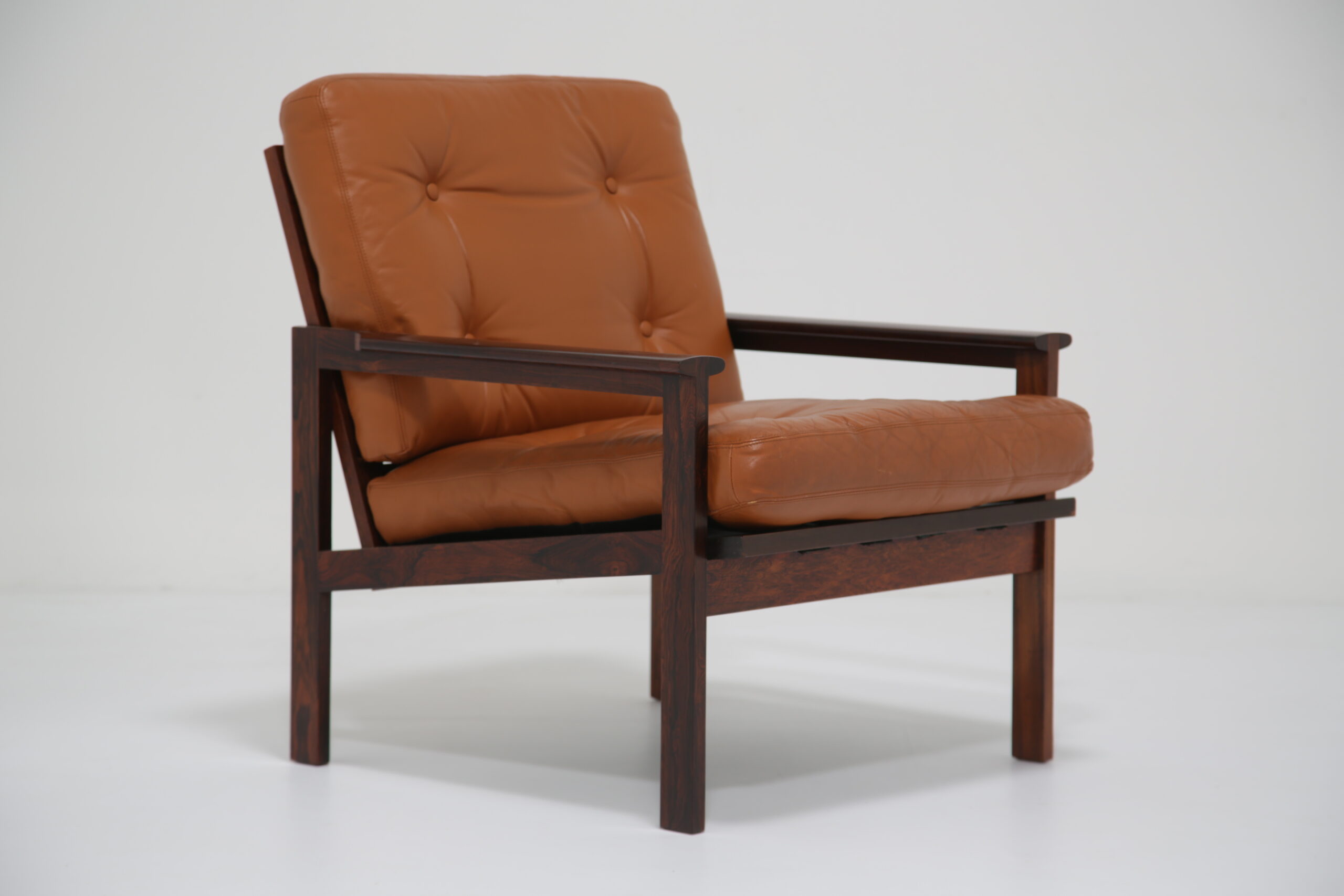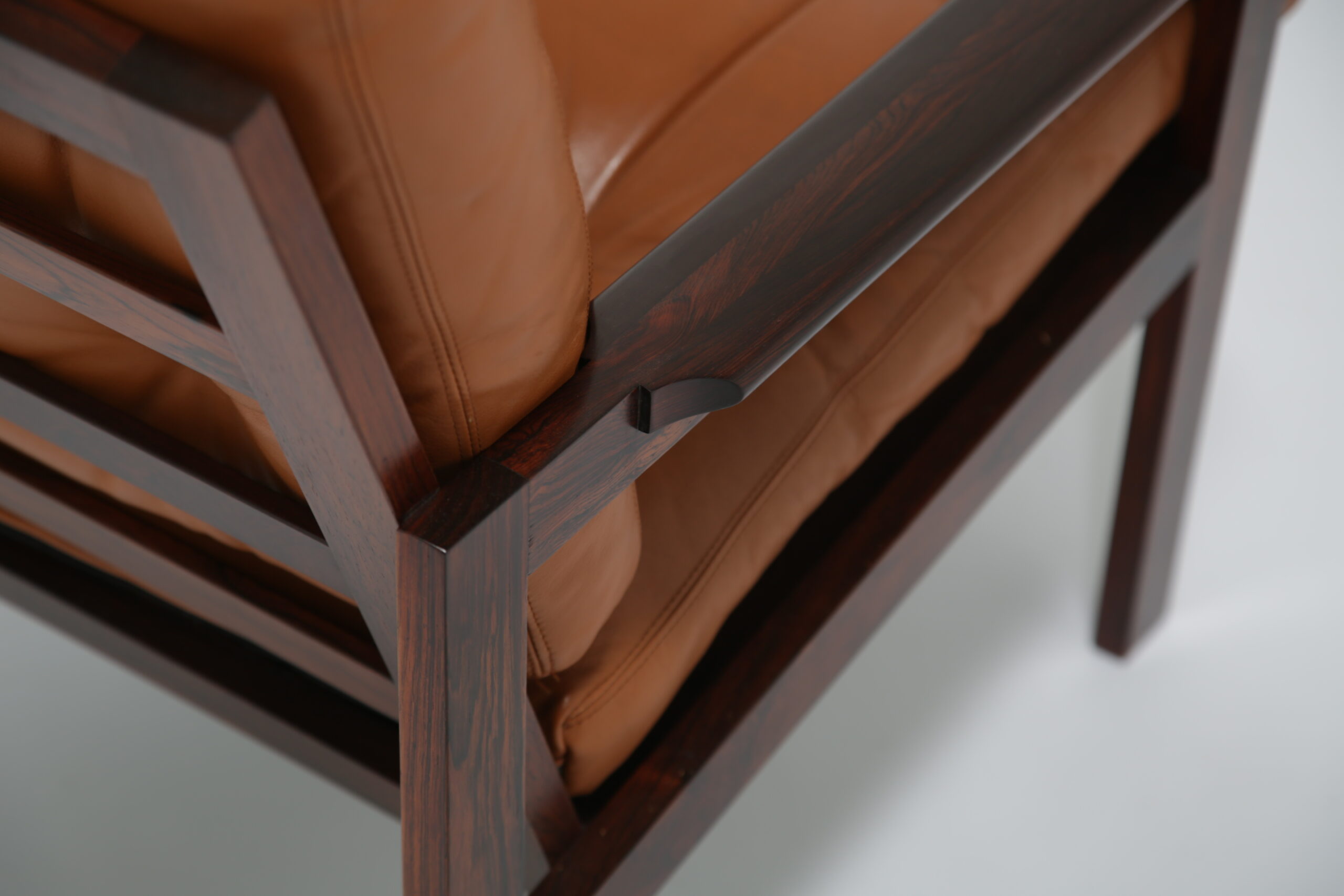 Just added to our collection is this stunning armchair, featuring tan leather cushions and was designed by the renowned Danish designer Illum Wikkelso in the 1950s. Sold under the model name “Capella”. The chair is manufactured in rosewood which has a lovely deep and rich grain, evident throughout the armchair. This armchair would be the perfect addition to any living room, lounge area or office requiring a comfortable chair to sit in to relax, read or just simply watch TV.