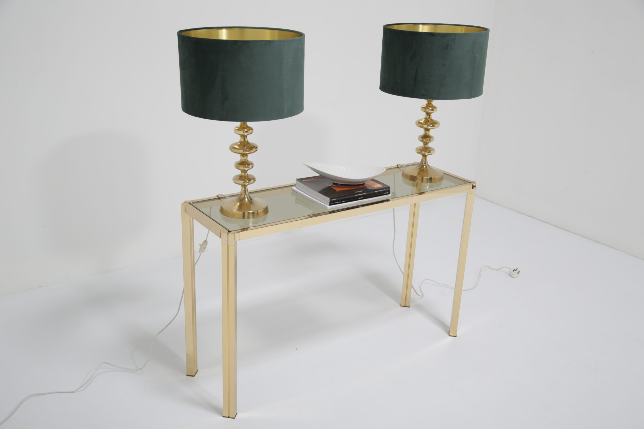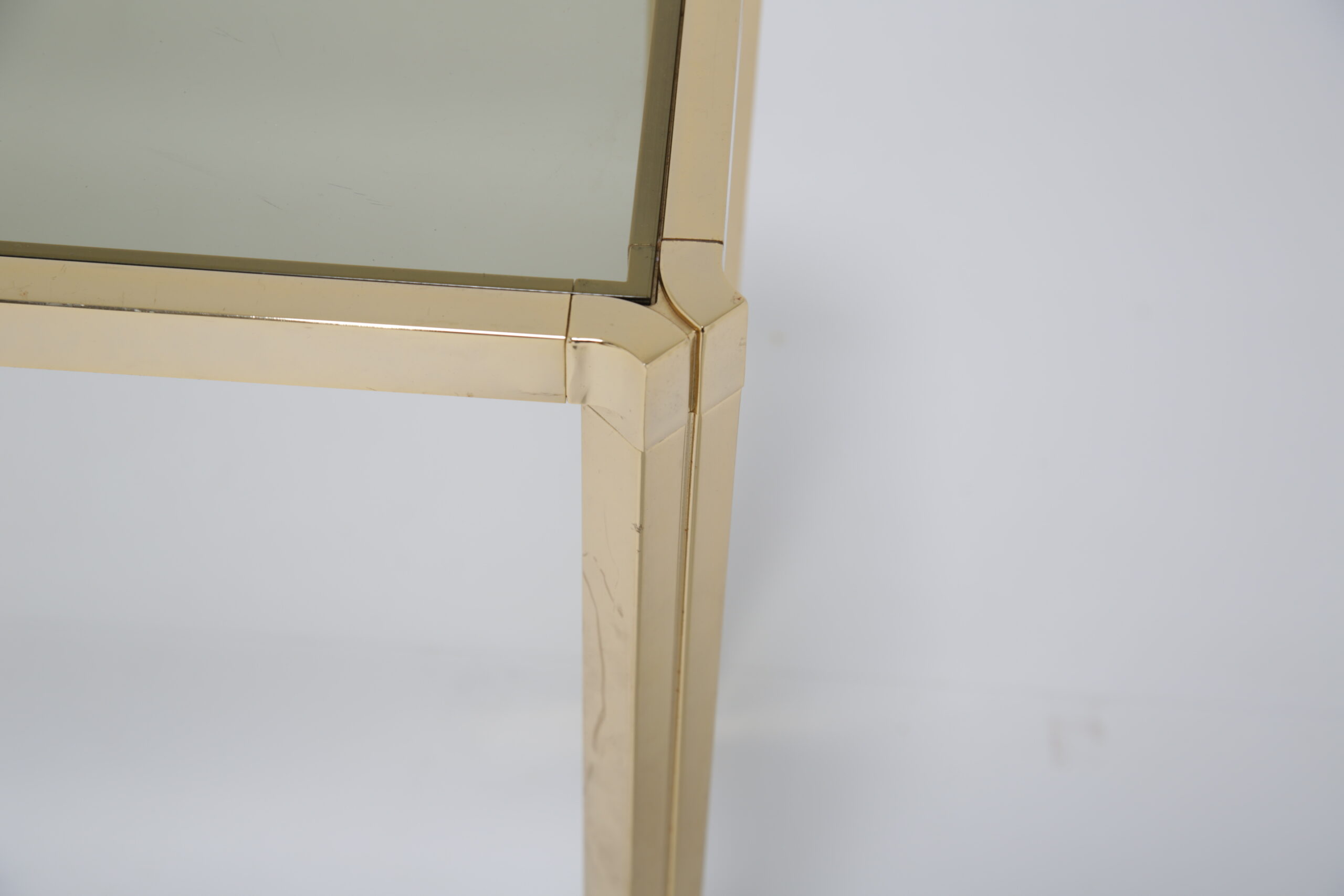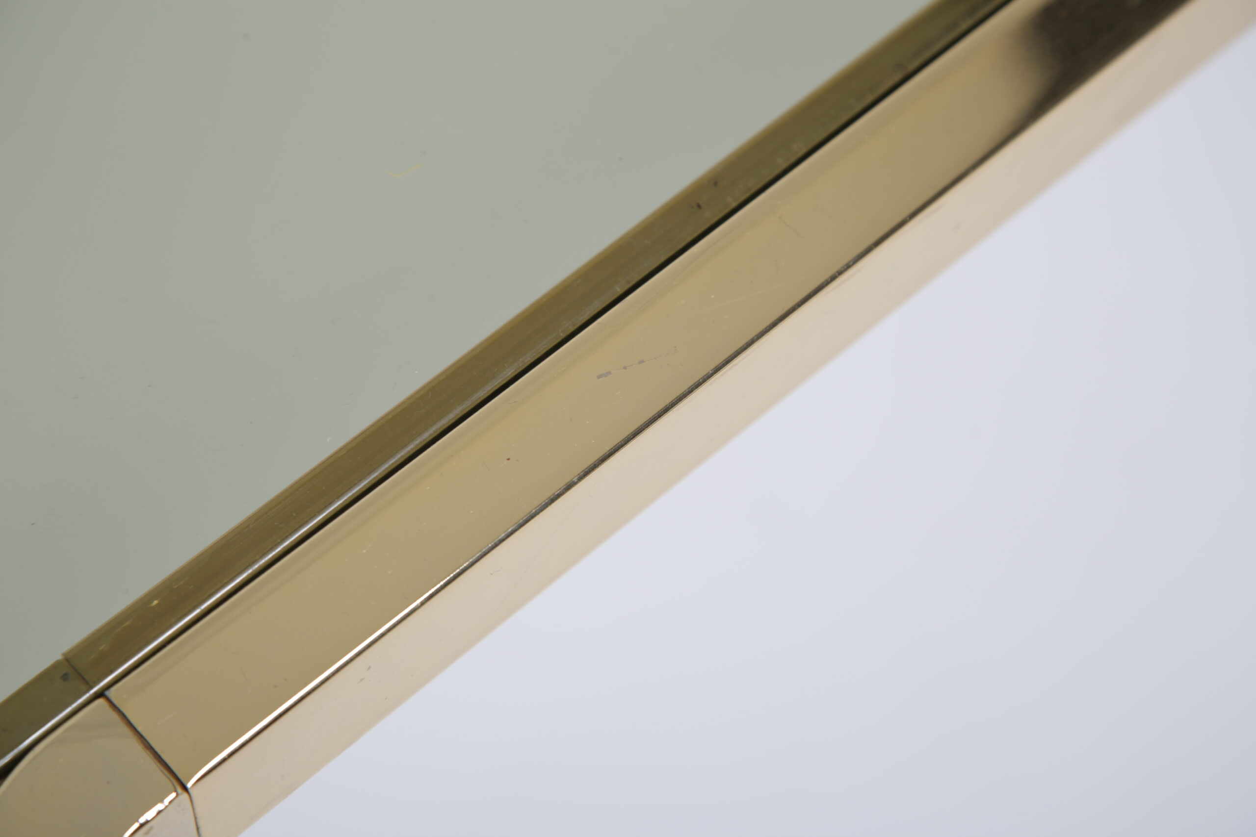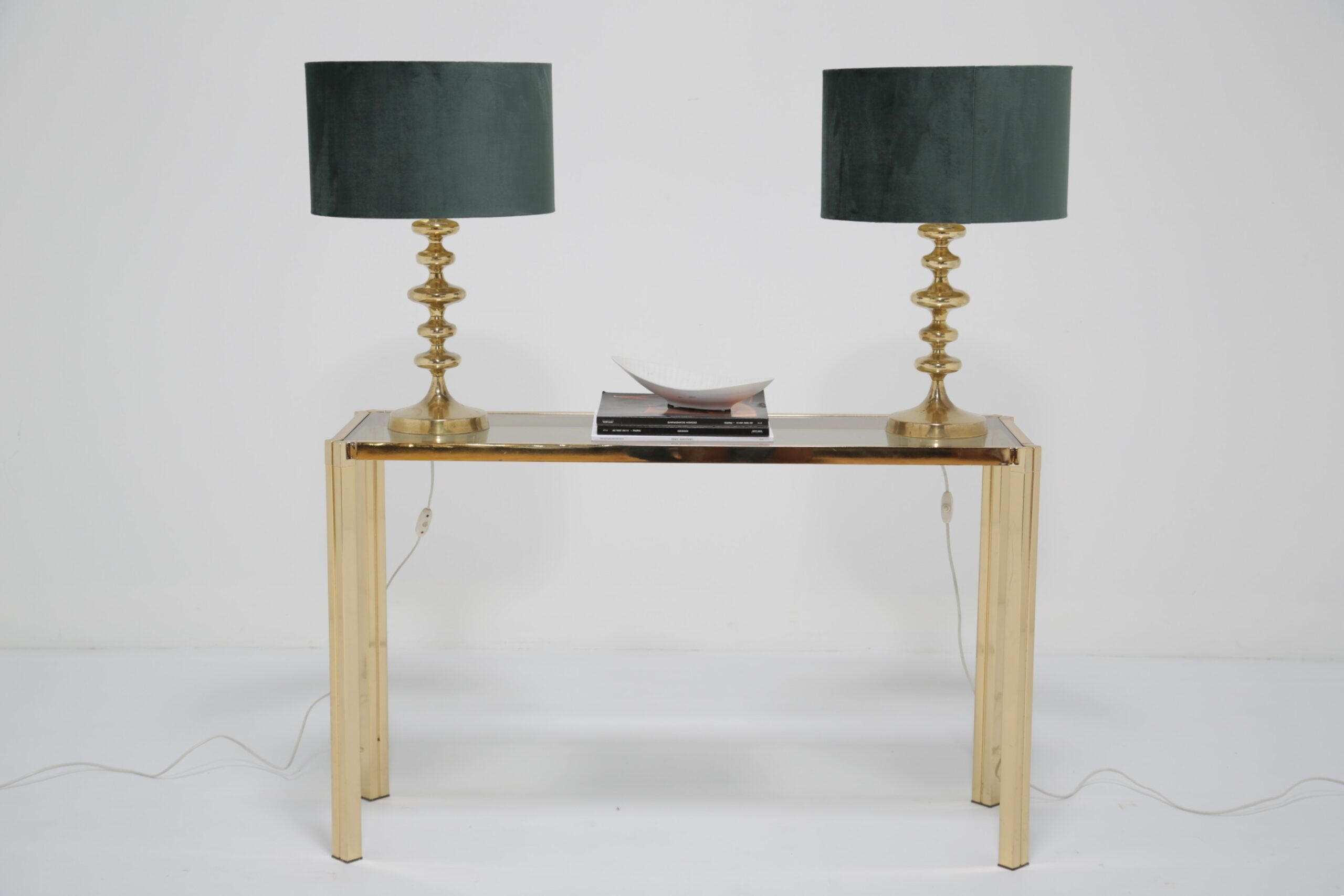 Just added to our extensive collection is this beautiful minimalist console table featuring a sleek modern profile with stepped out and angled legs. Manufactured in Italy, this console is brass plated and will suit a range of interiors and would be perfect in a hall or living room space.