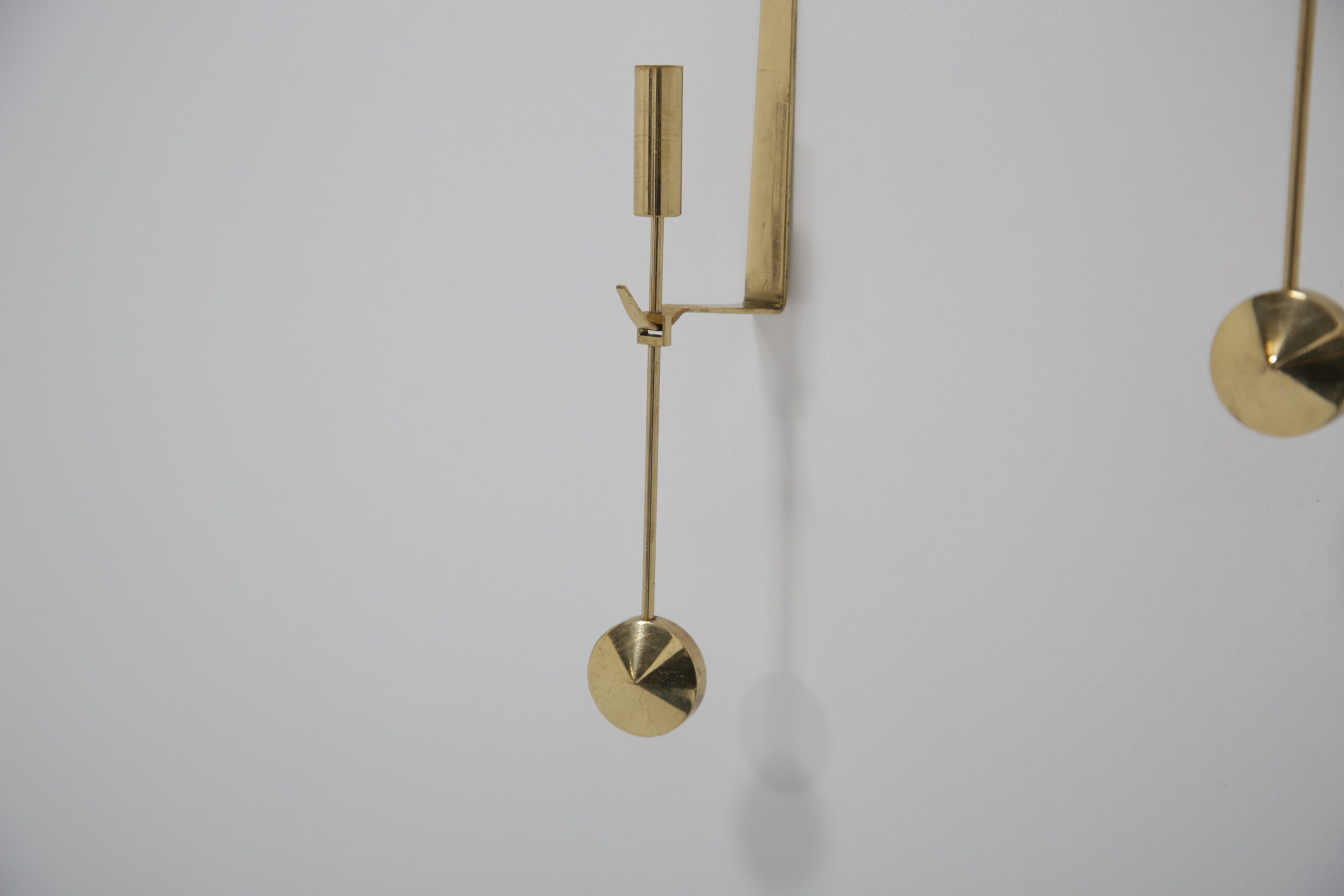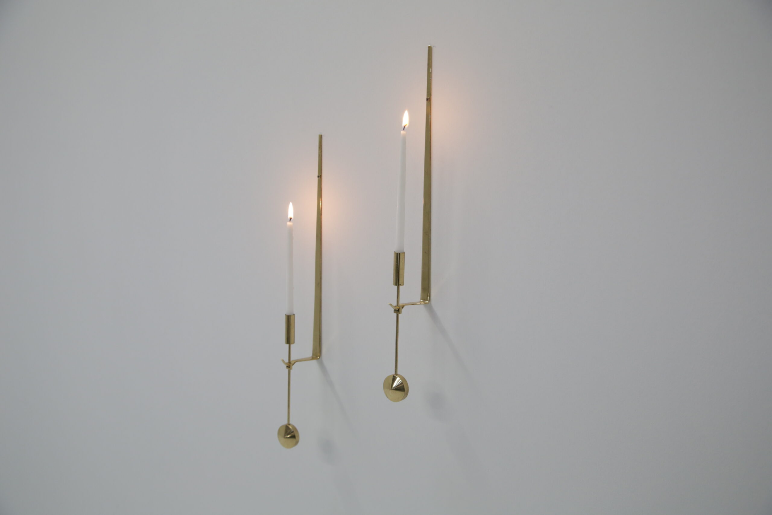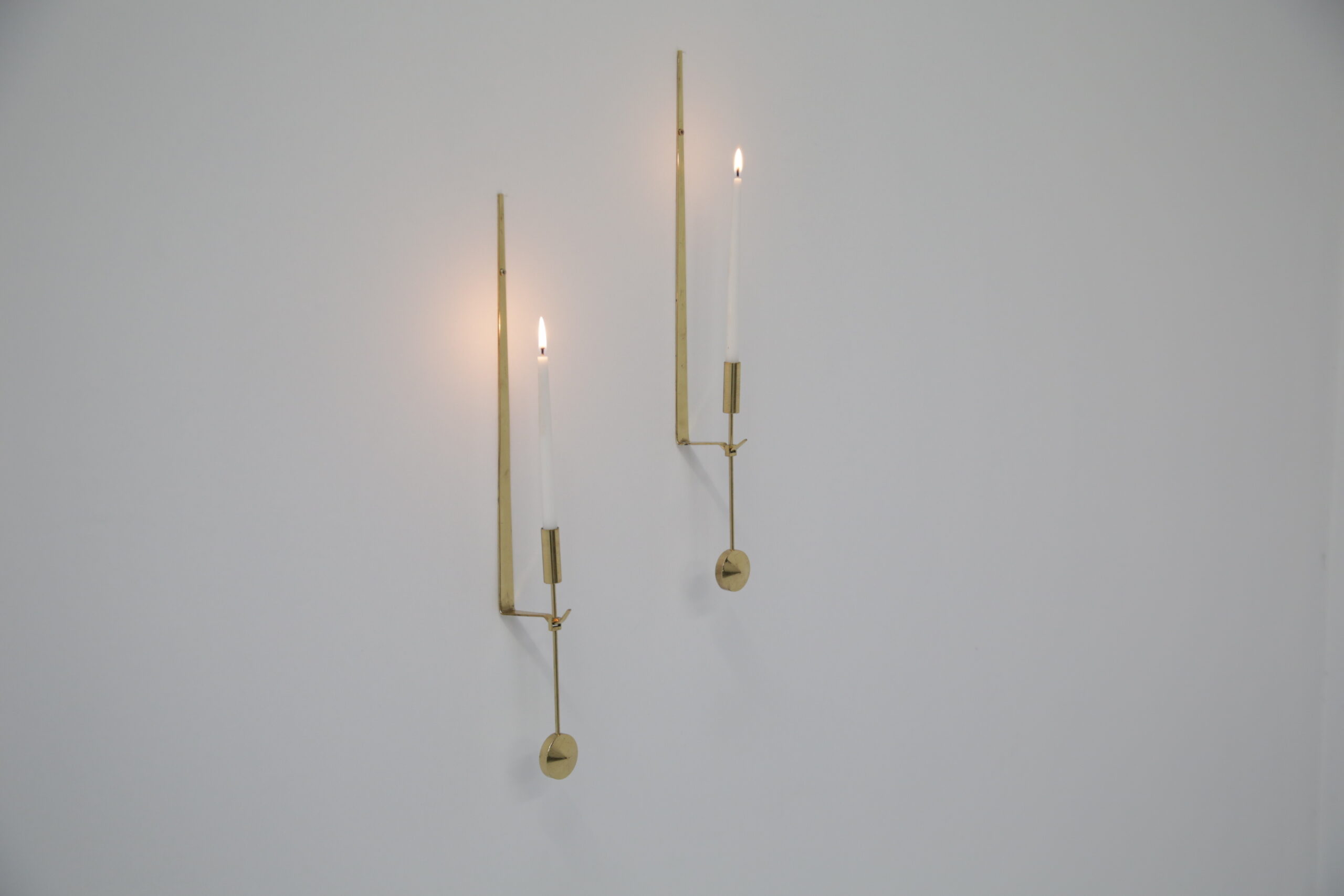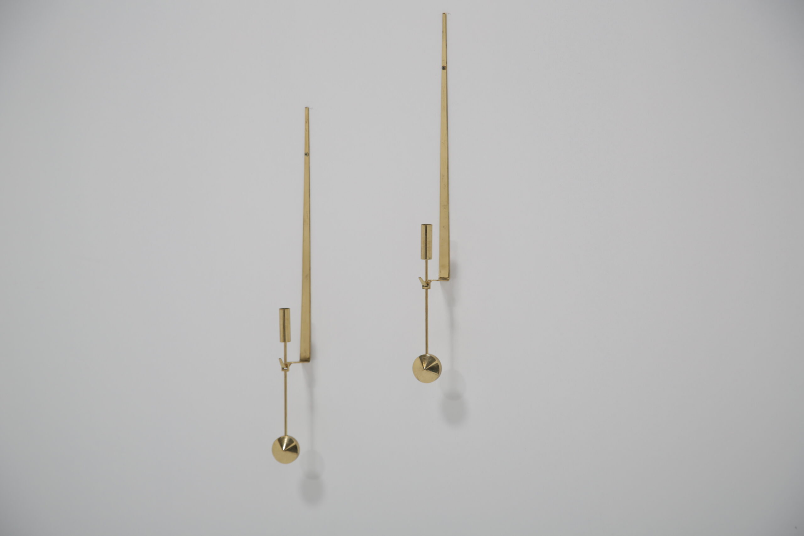 Vintage Pair of Brass Candle Holders by Skultuna. Our Instagram lit up when we did a video on these gorgeous wall sconces, and we know why. They are absolutely beautiful and are timeless. Designed by the Swedish designer Pierre Forsell in the 1950s and manufactured by the Swedish brass works company Skultuna which was founded in 1607. These iconic wall sconces show Pierre’s craftsmanship and attention to detail, minimalism and functionality is the keyword. The wall sconces feature a sleek profile with a pendulum or “Pendyl” design, these pieces feature a sleek, minimalist aesthetic with a delicate hanging pendulum accent—a hallmark of Forssell’s refined craftsmanship. ** We have two pairs available **