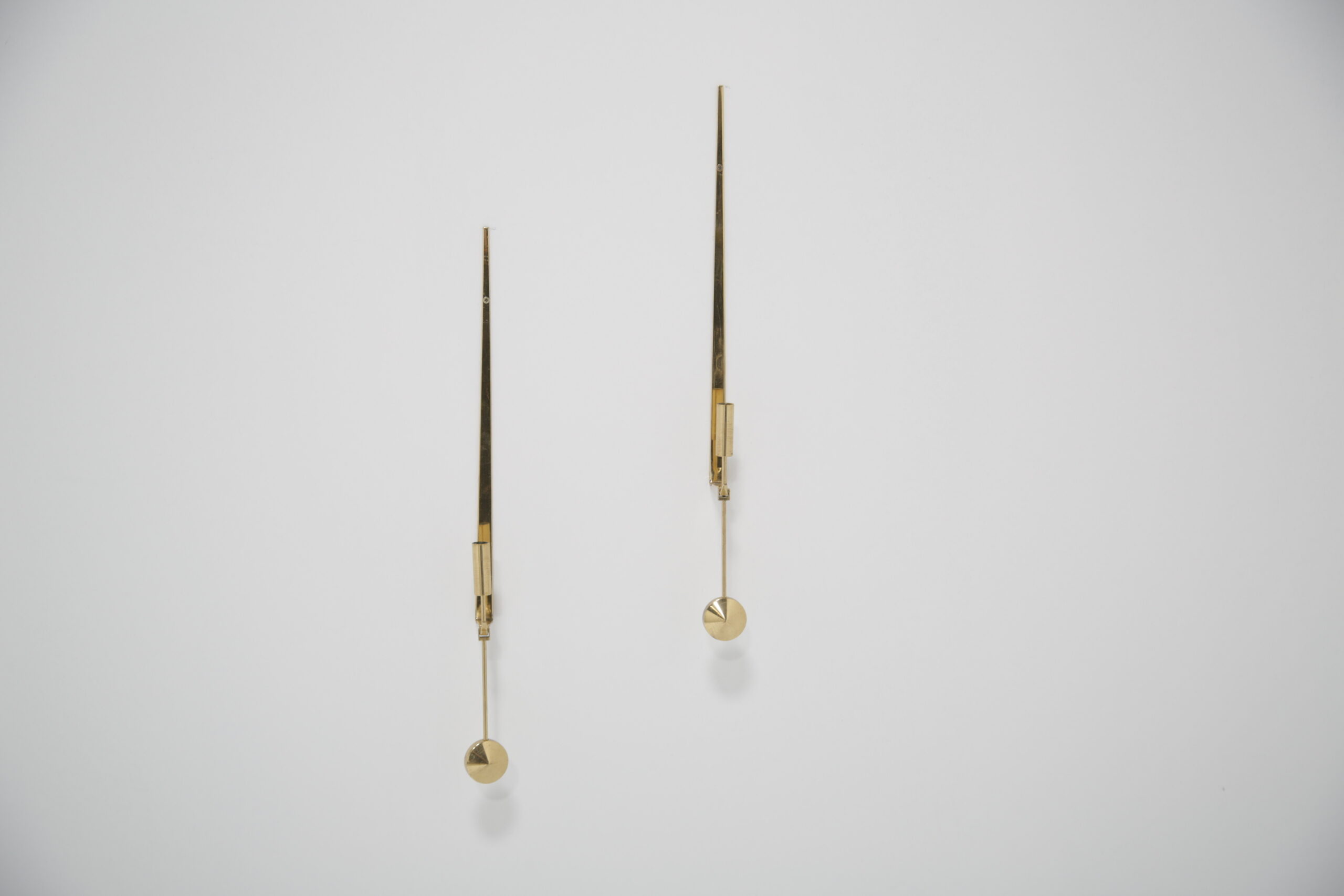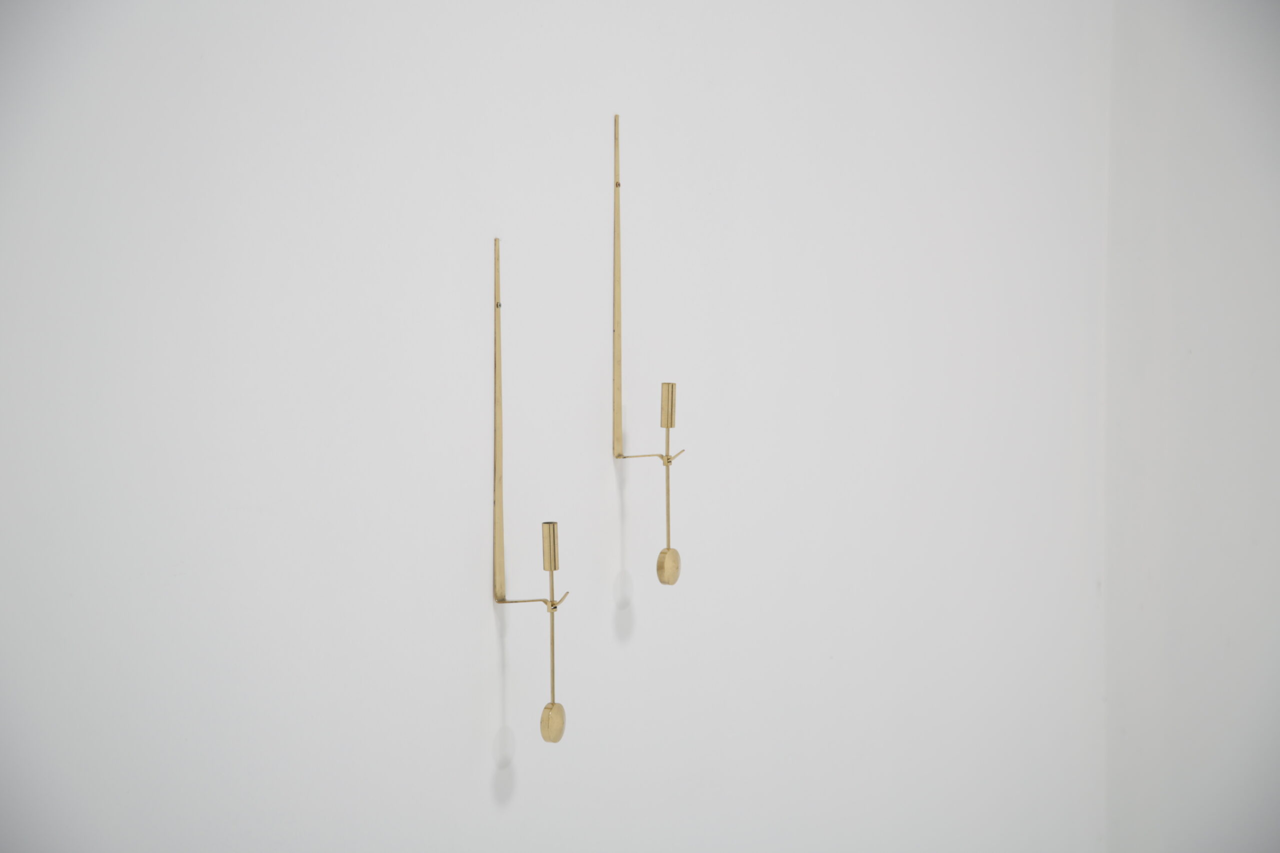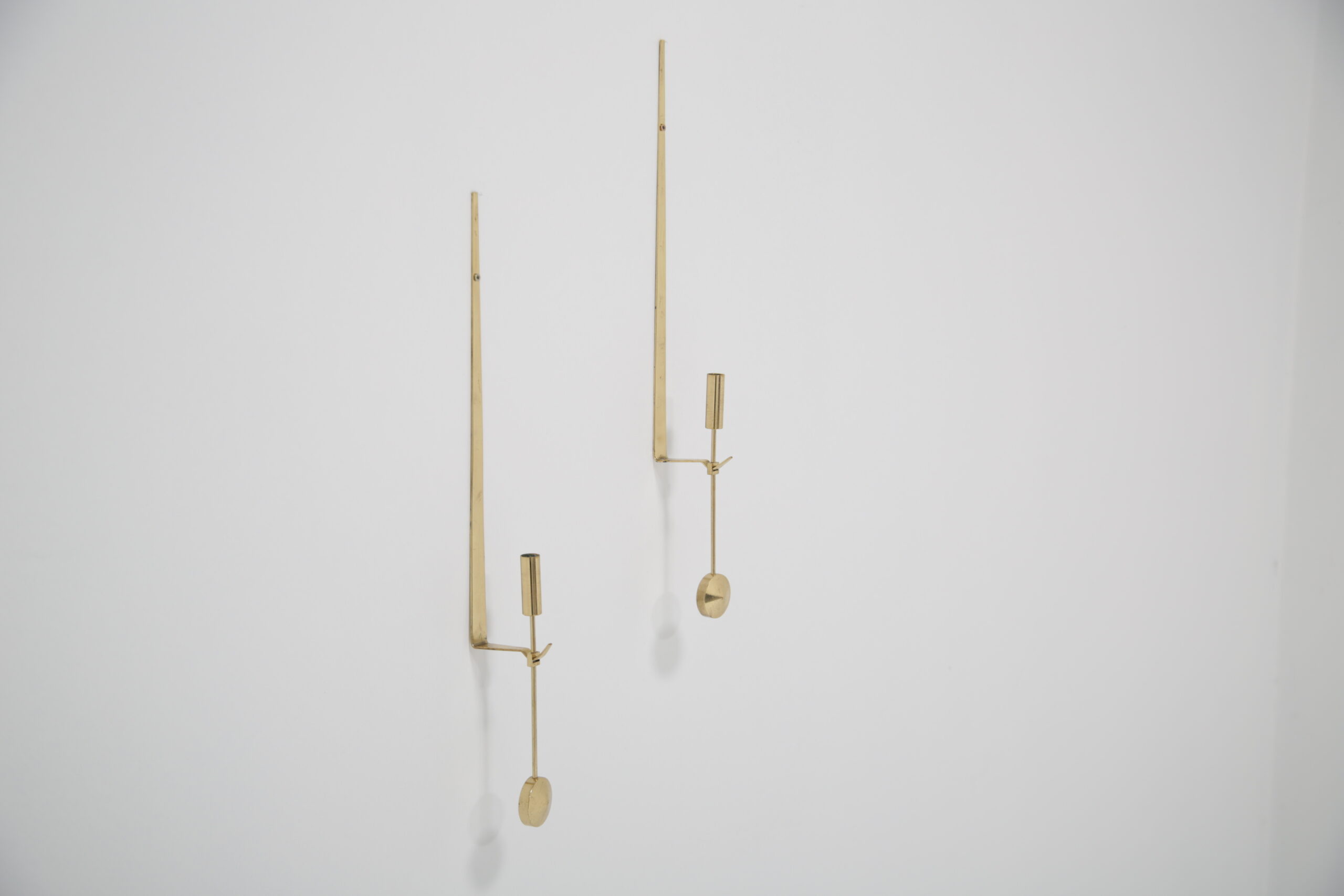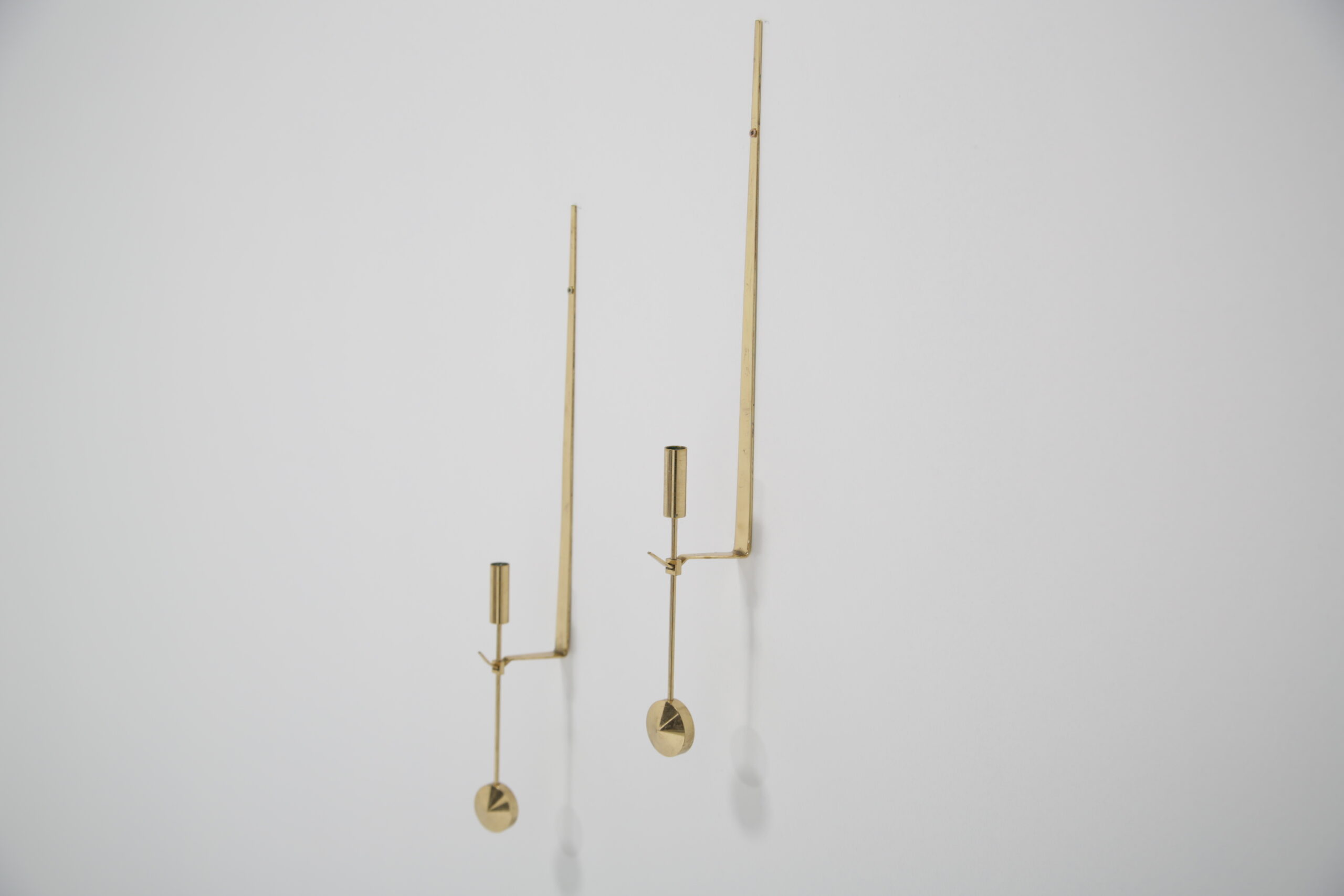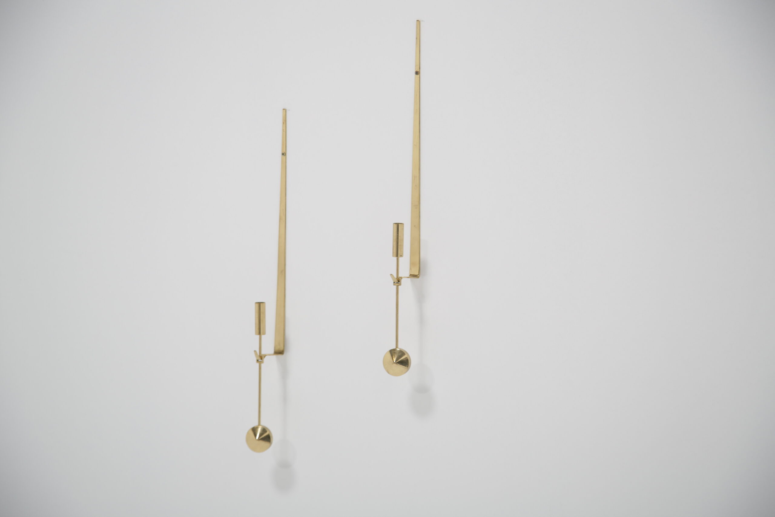 Vintage Pair of Brass Candle Holders by Skultuna. Our Instagram lit up when we did a video on these gorgeous wall sconces, and we know why. They are absolutely beautiful and are timeless. Designed by the Swedish designer Pierre Forsell in the 1950s and manufactured by the Swedish brass works company Skultuna which was founded in 1607. These iconic wall sconces show Pierre’s craftsmanship and attention to detail, minimalism and functionality is the keyword. The wall sconces feature a sleek profile with a pendulum or “Pendyl” design, these pieces feature a sleek, minimalist aesthetic with a delicate hanging pendulum accent—a hallmark of Forssell’s refined craftsmanship. ** We have two pairs available **