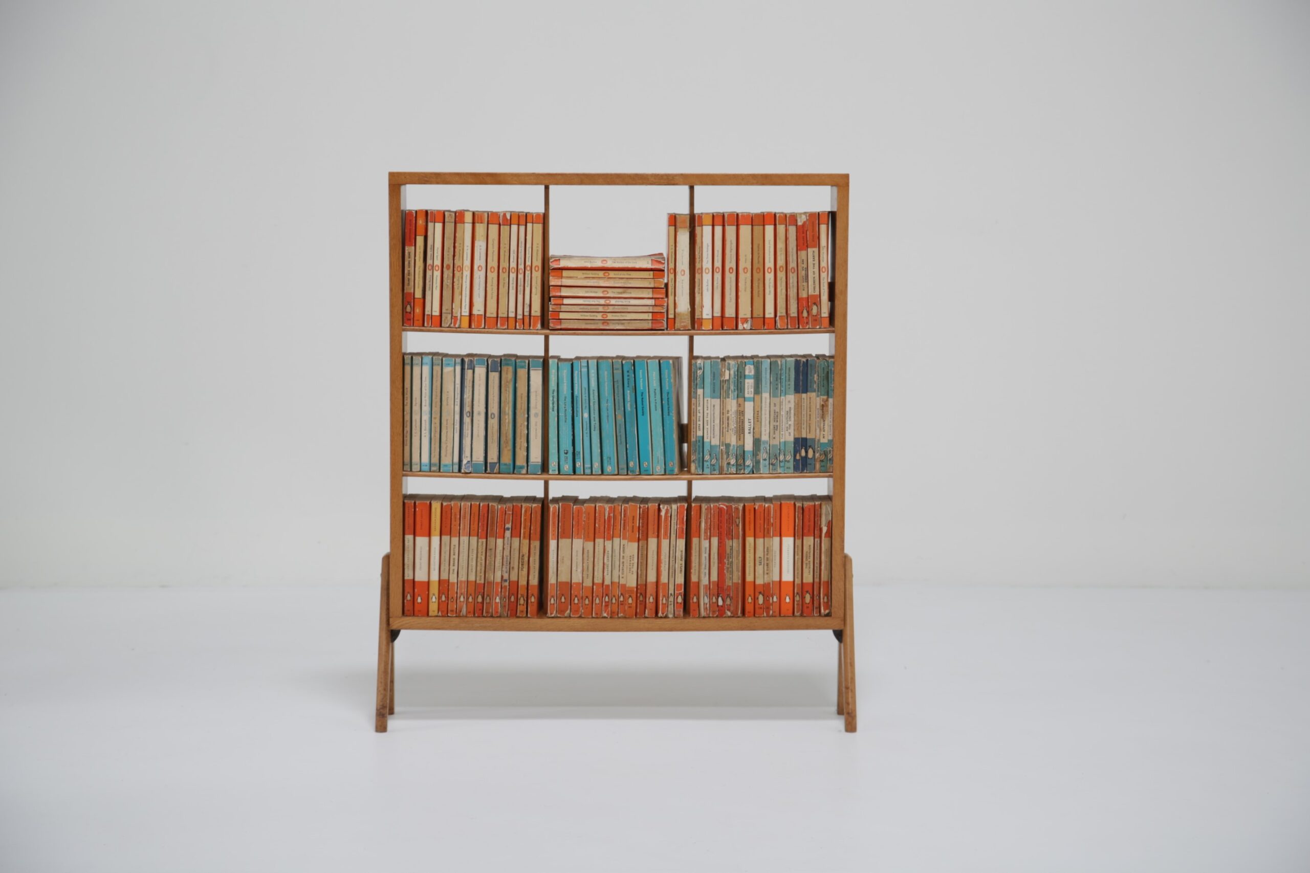 Just added to our collection is this highly sought after and rare bookcase unit manufactured in the 1950s by Beaver & Tapley. These bookcases are highly sought after by collectors as these bookcases were specifically made to hold Penguin books. Featuring a minimalistic design, it is a very practical and stylish bookcase. Very nostalgic! Books are included in the purchase.