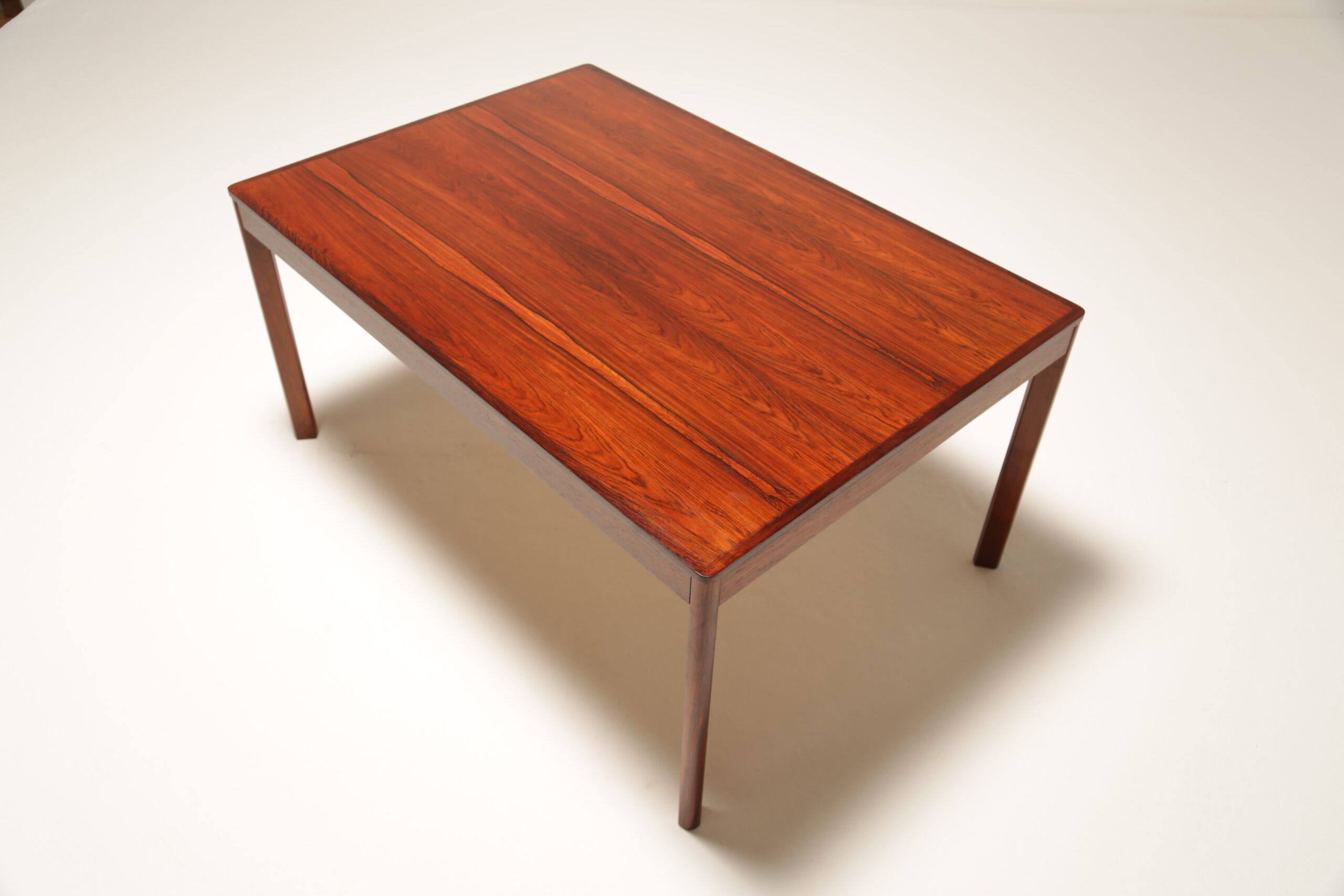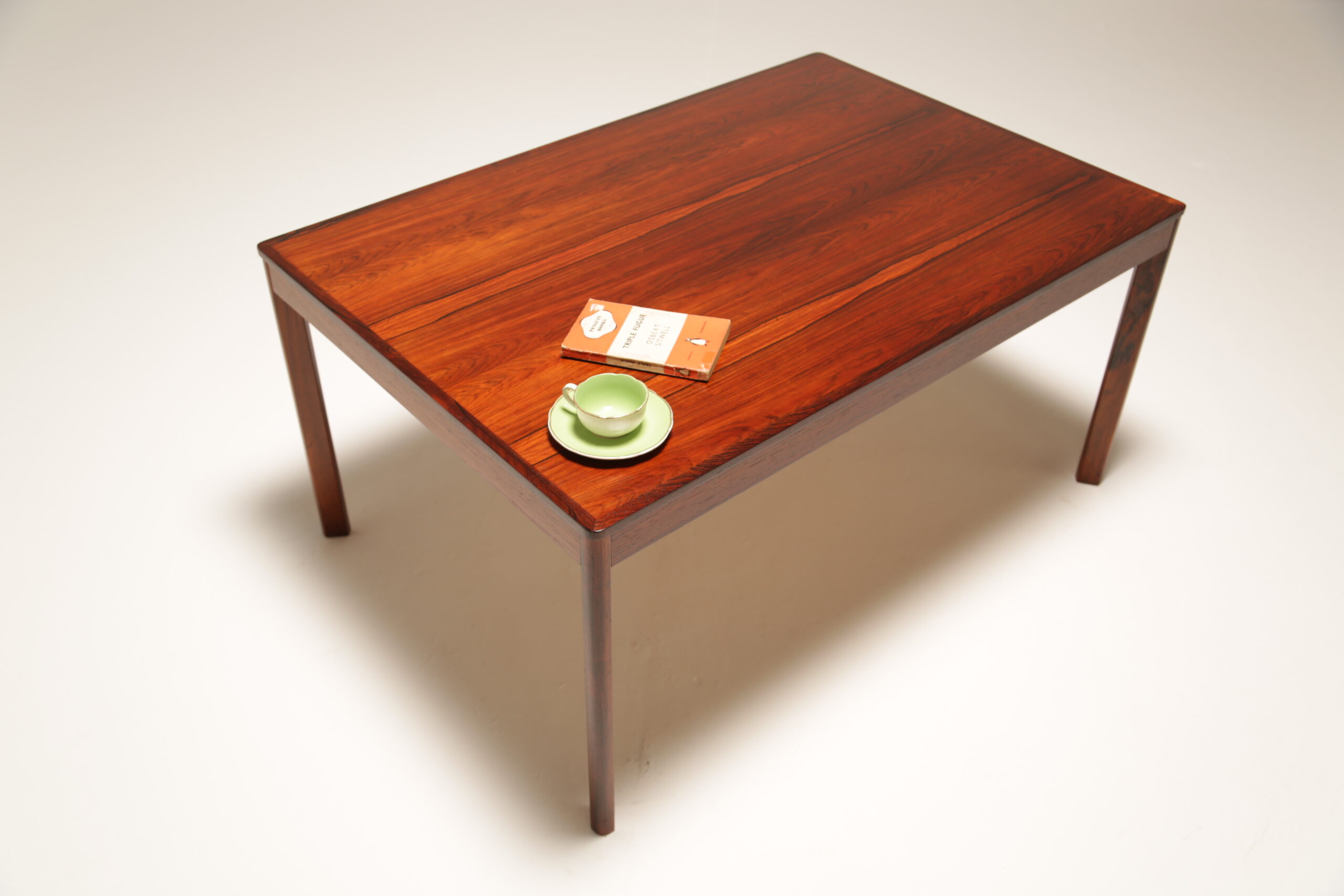 Stunning rosewood coffee table with a large top, lovely deep rosewood grain, beautifully shaped legs. We purchased this coffee table in Sweden and it has been fully restored by our in-house restoration team.