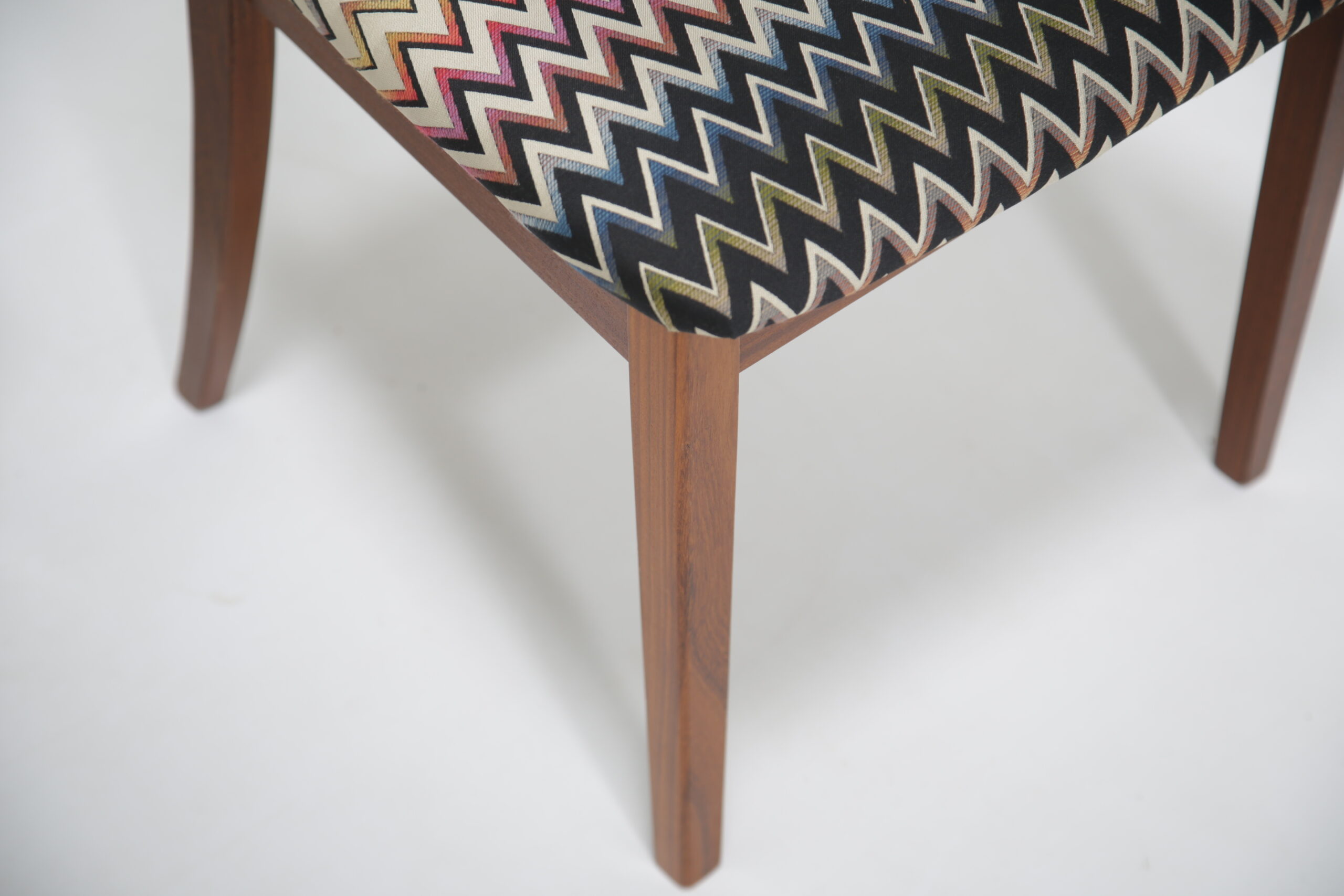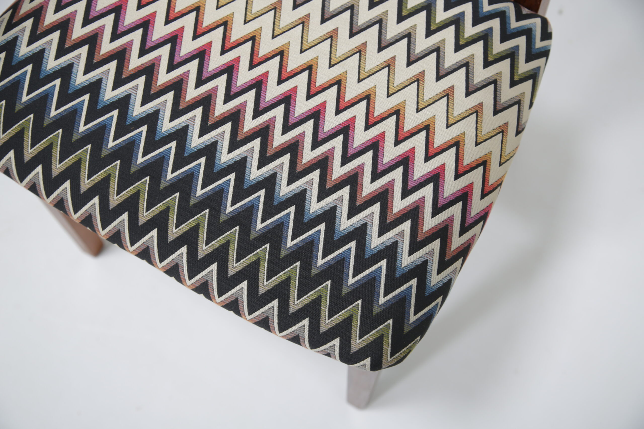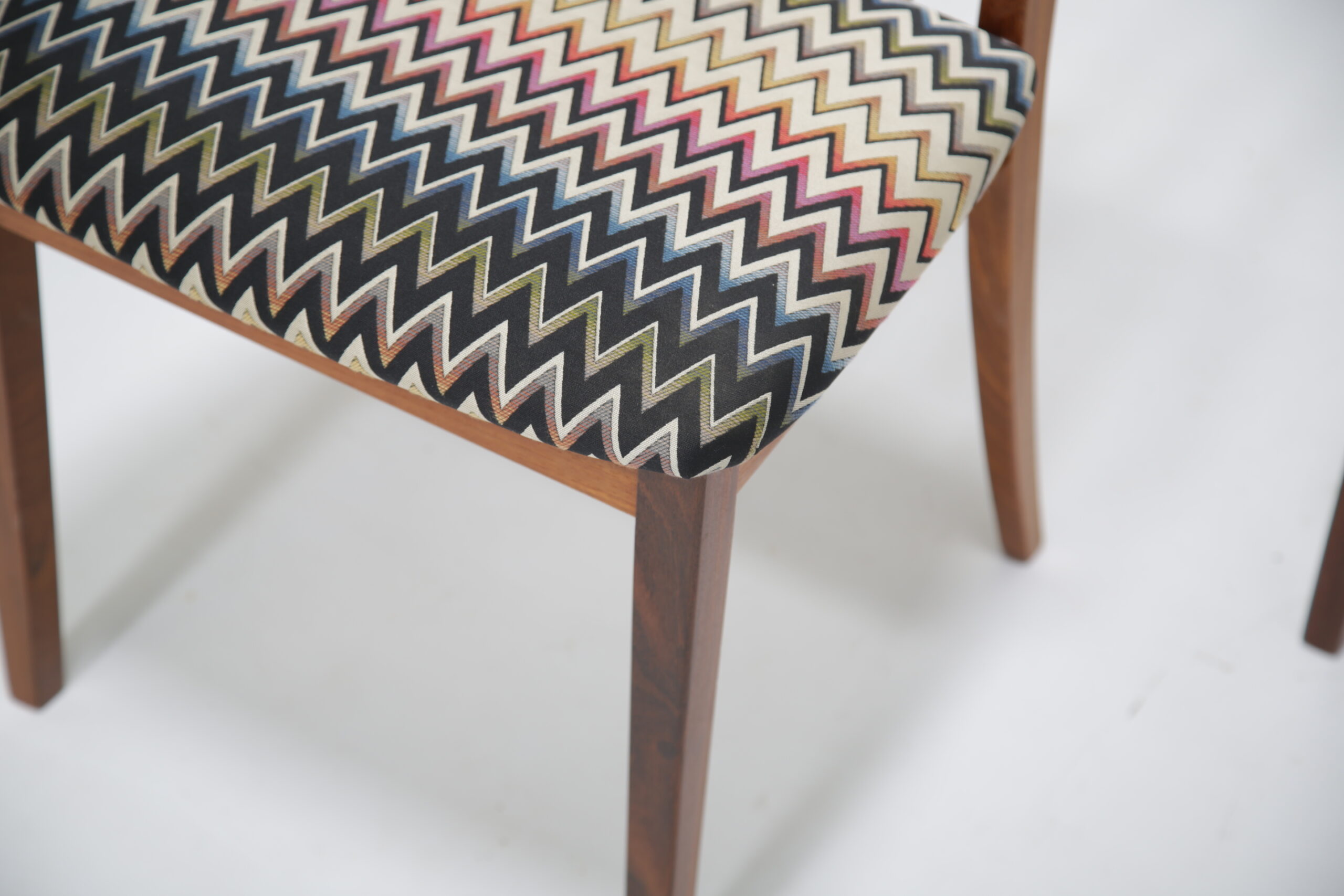 The frames have been fully restored by our in-house restoration team which includes stripping, sanding and polishing of each frame, ensuring that each joint is in perfect condition. Each seat has been newly upholstered in a modern fabric and have new foam.