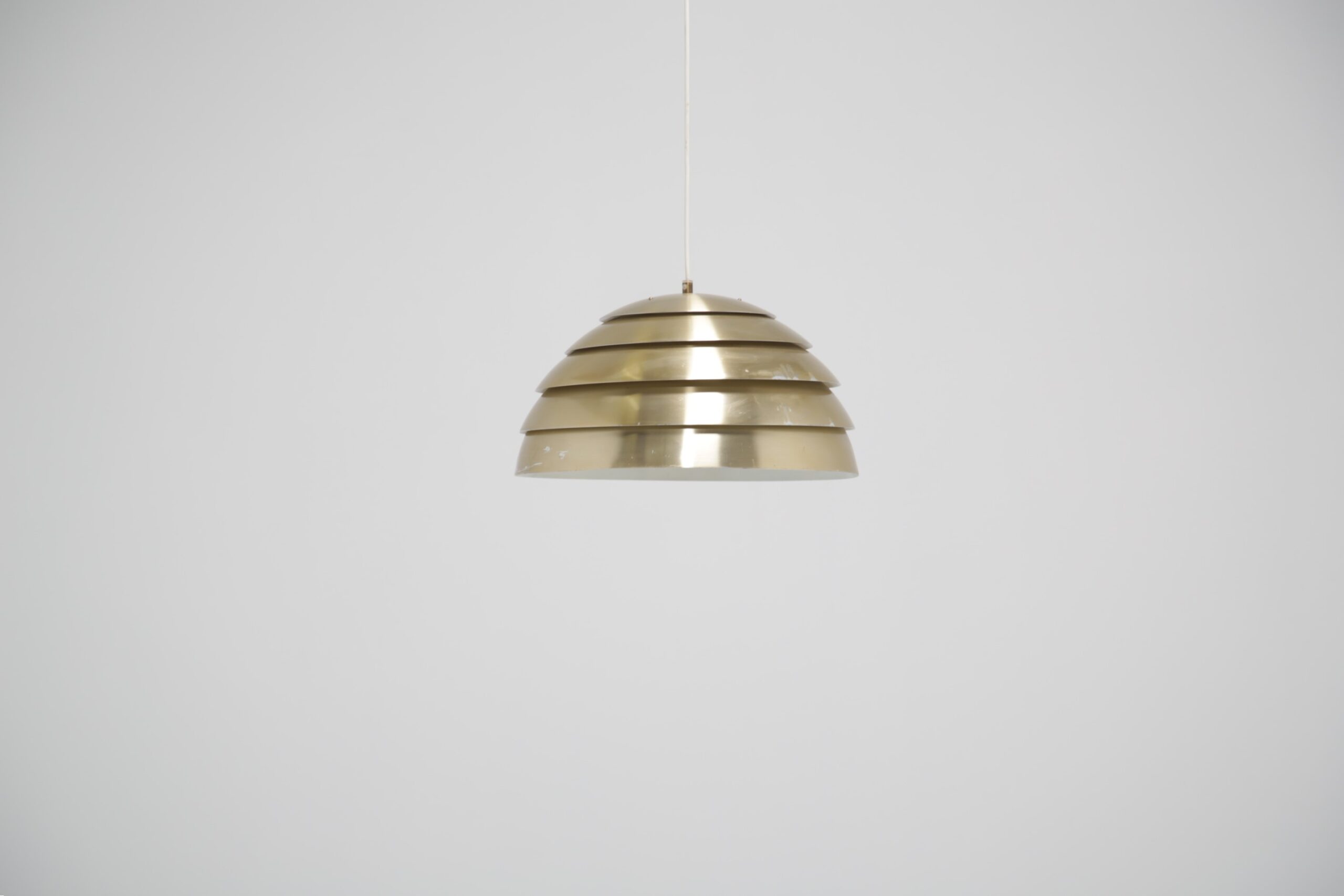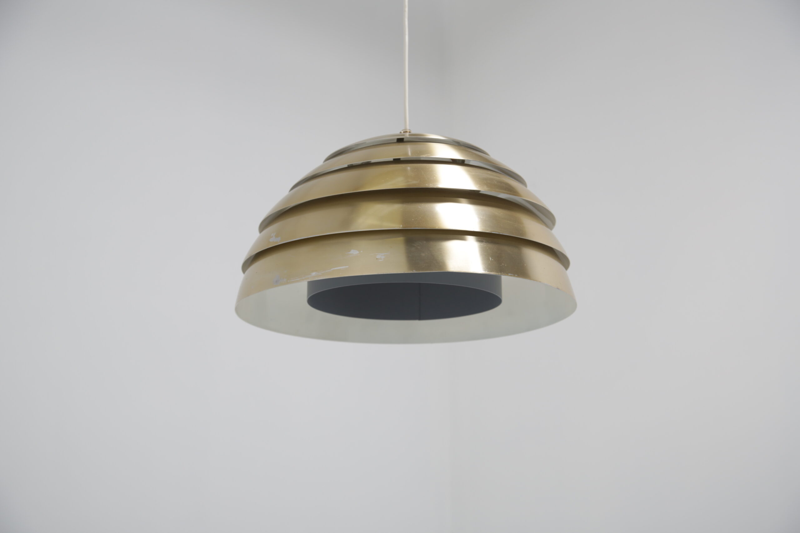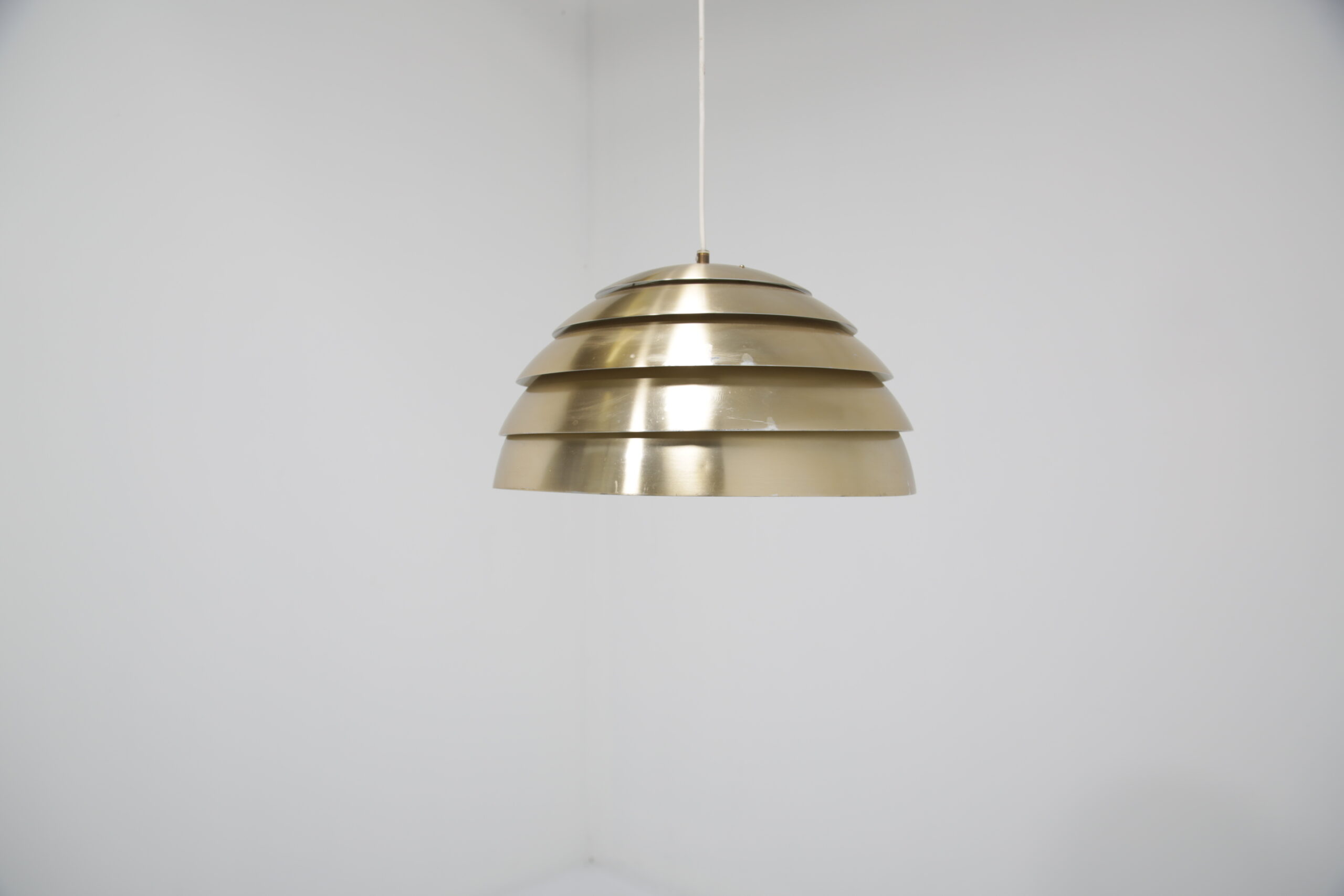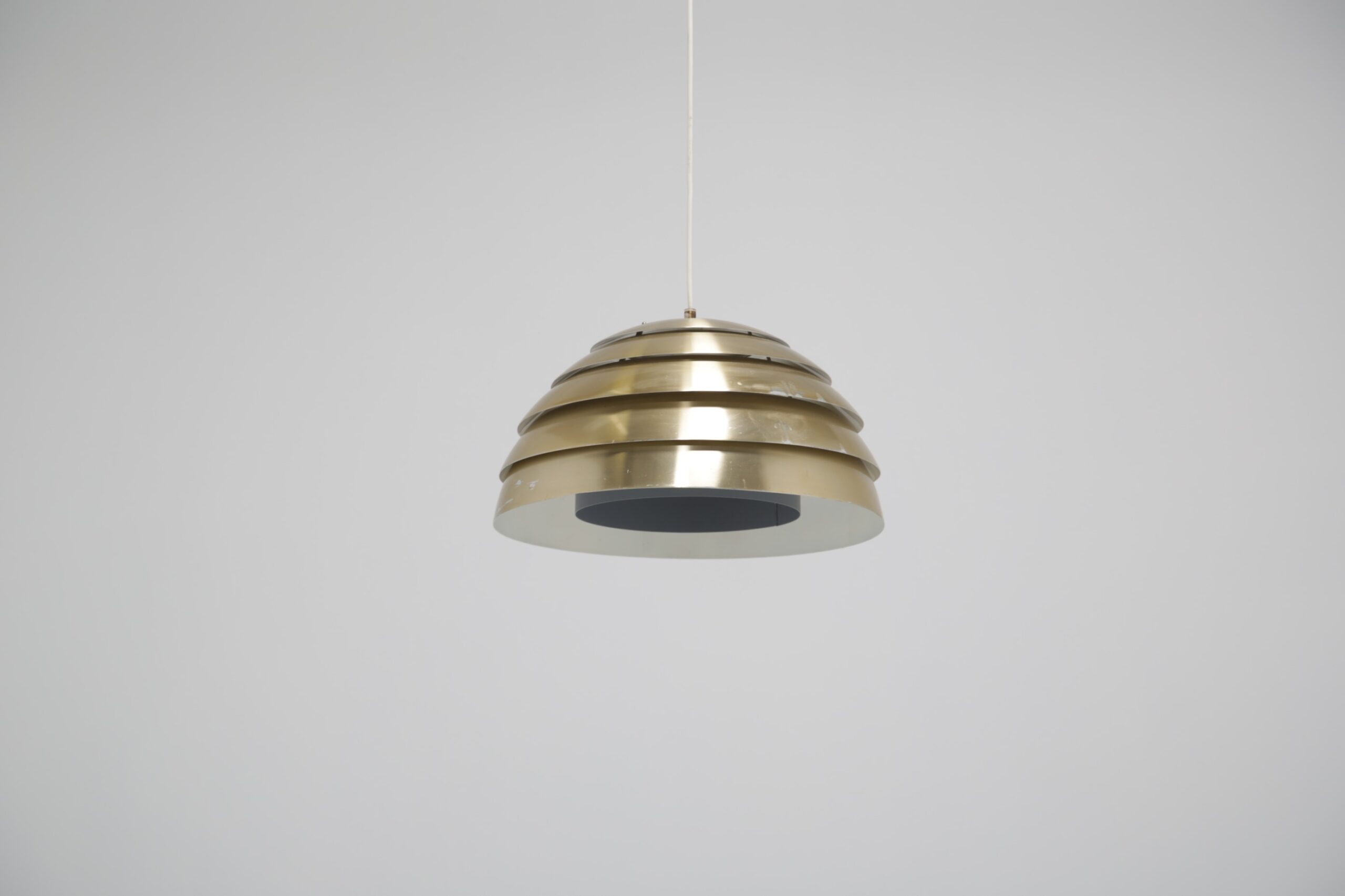 Bring a cozy atmosphere to your dining or living room area with this stunning ceiling lamp, designed by Hans-Agne Jakobsson in the 1960s. The design is replicating a beehive, with each level allowing light to protrude creating a soft glow when lit. The lamp is manufactured in aluminum which is spray-painted during manufacturing.