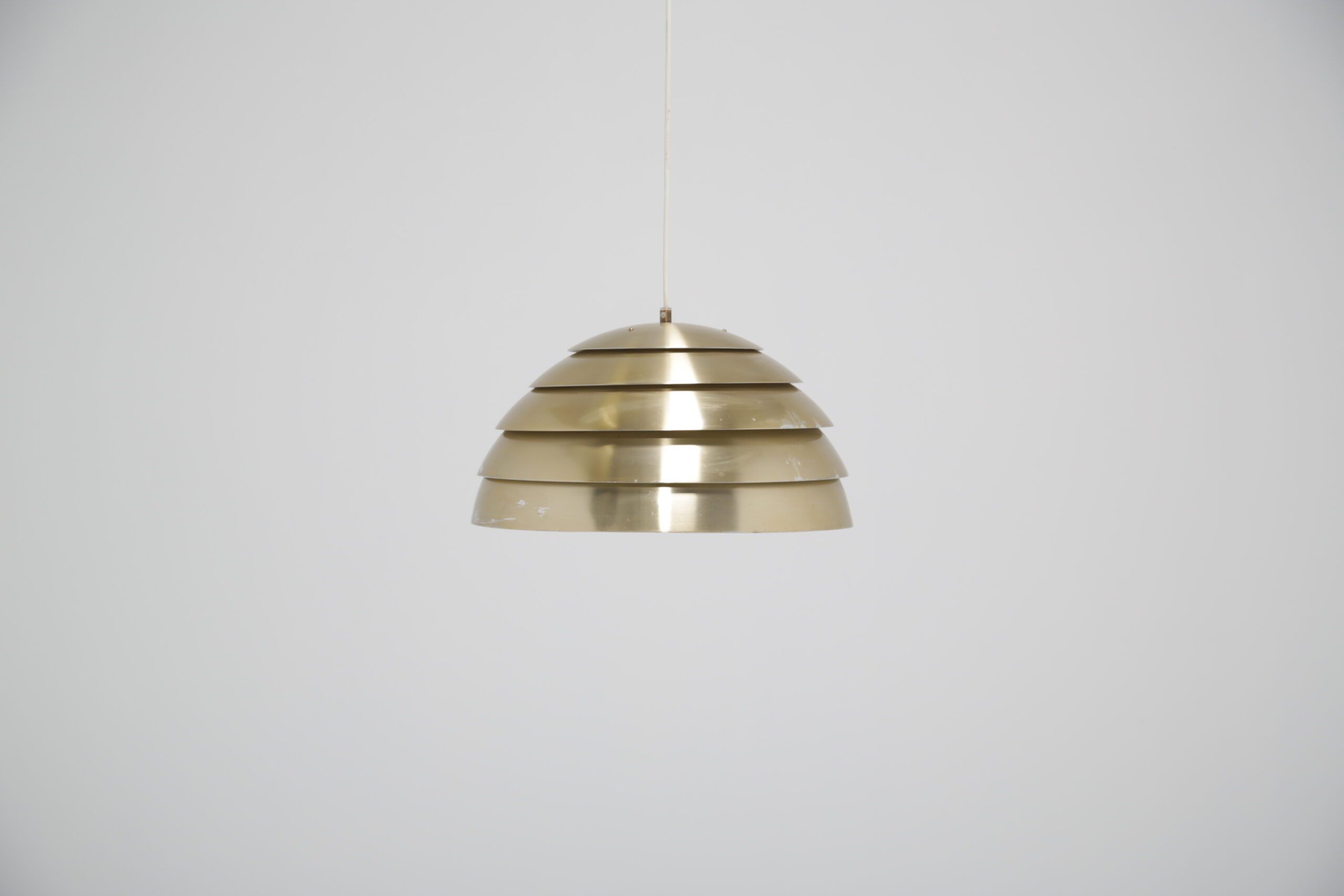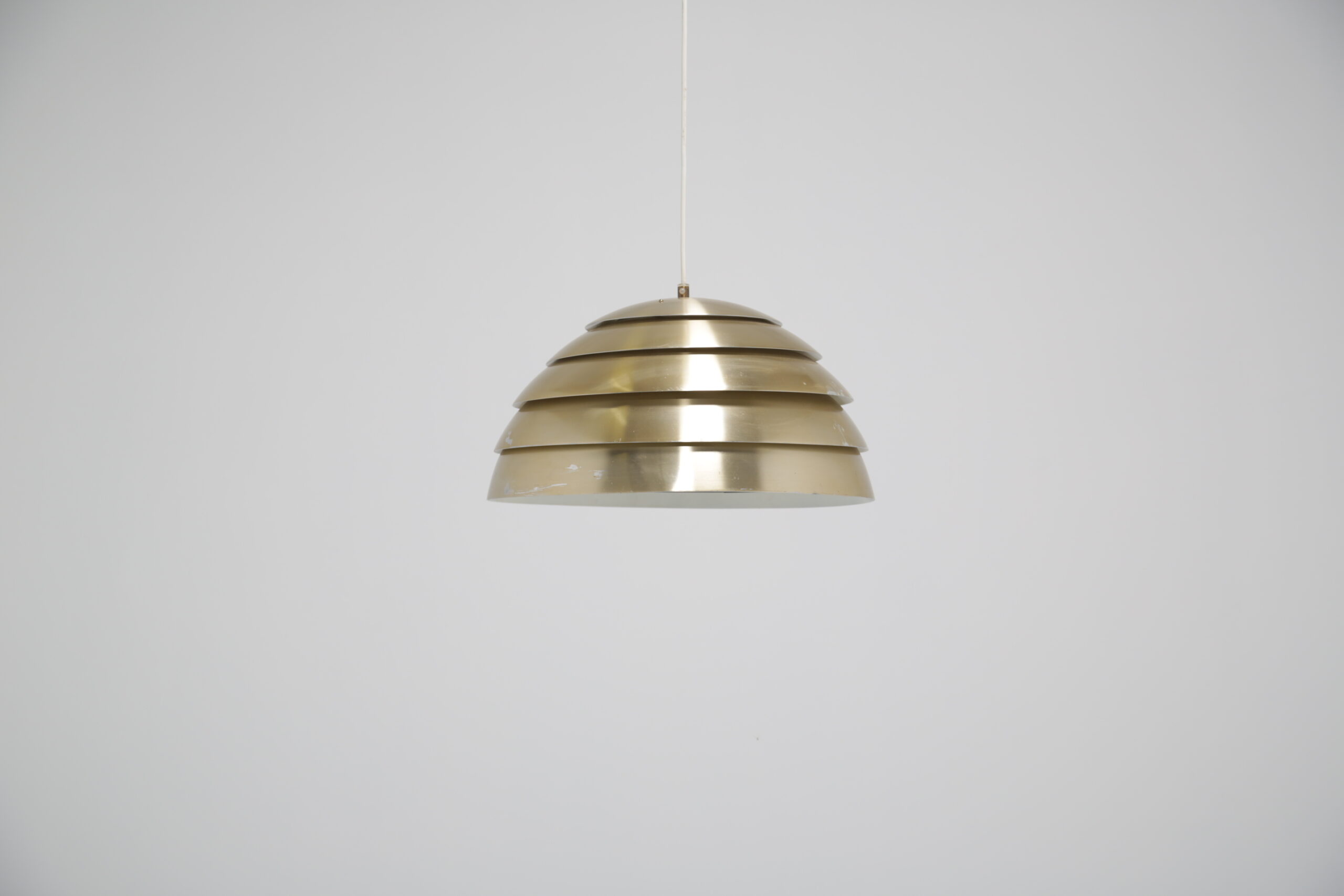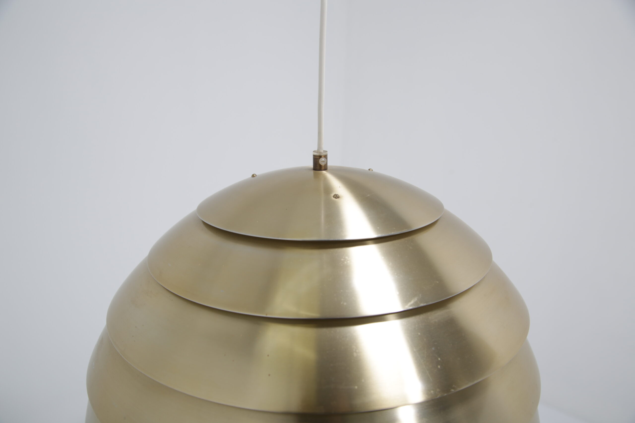 Bring a cozy atmosphere to your dining or living room area with this stunning ceiling lamp, designed by Hans-Agne Jakobsson in the 1960s. The design is replicating a beehive, with each level allowing light to protrude creating a soft glow when lit. The lamp is manufactured in aluminum which is spray-painted during manufacturing.