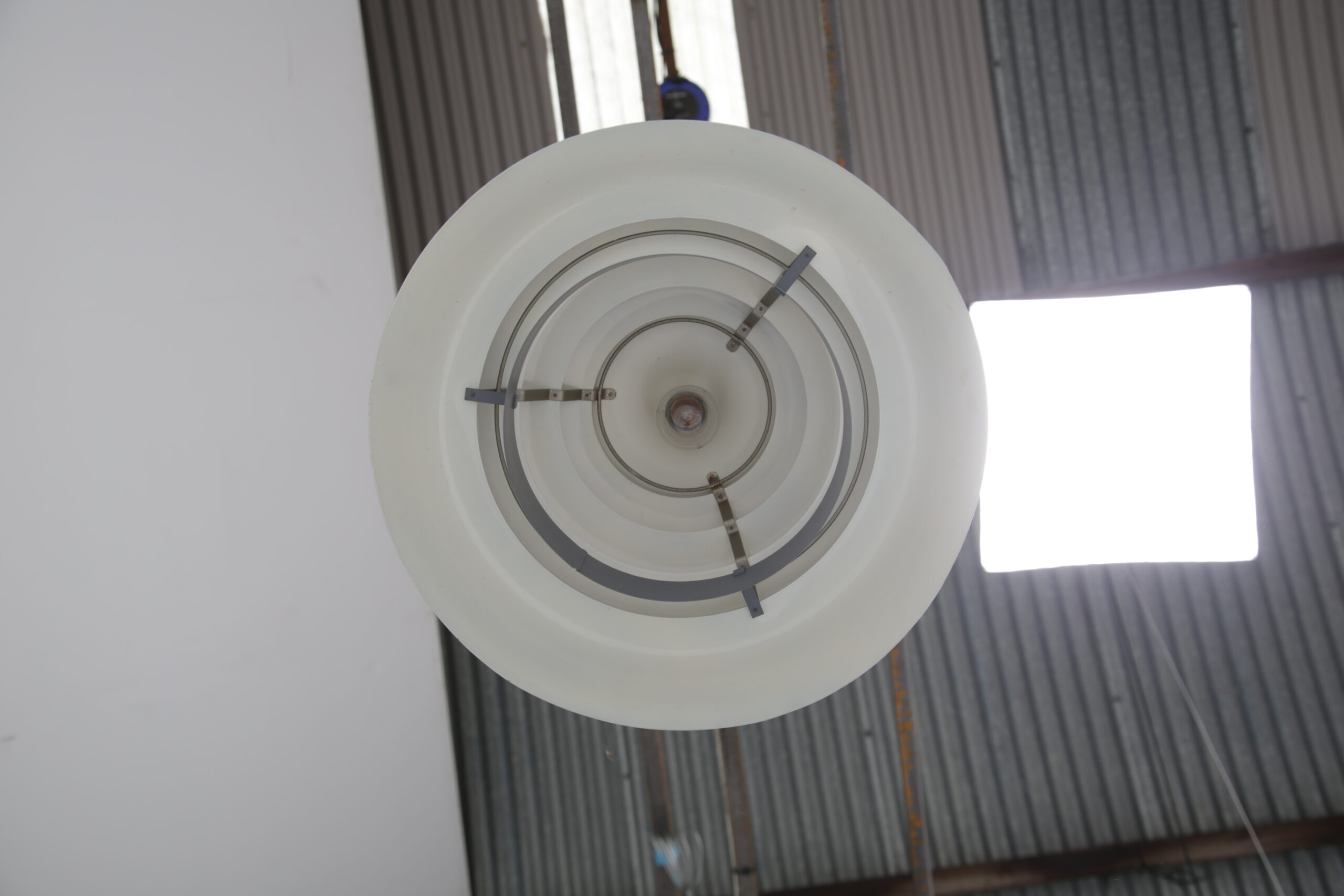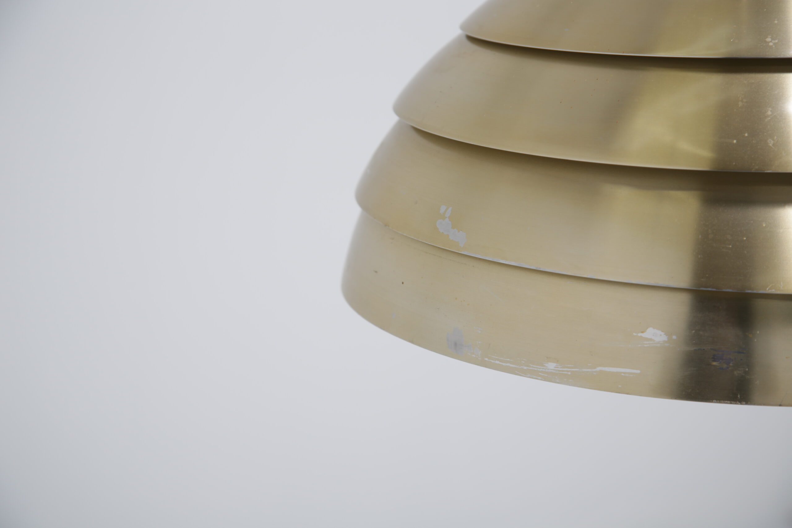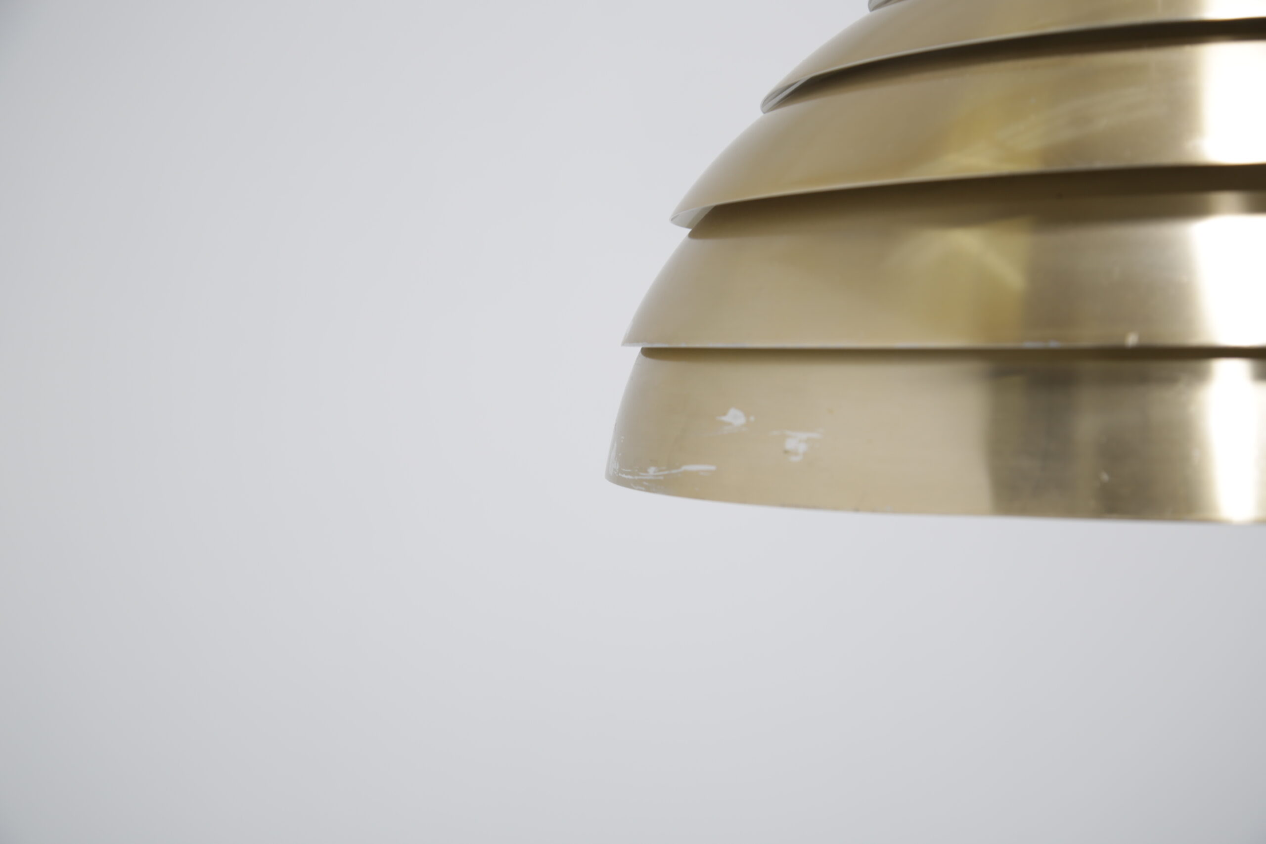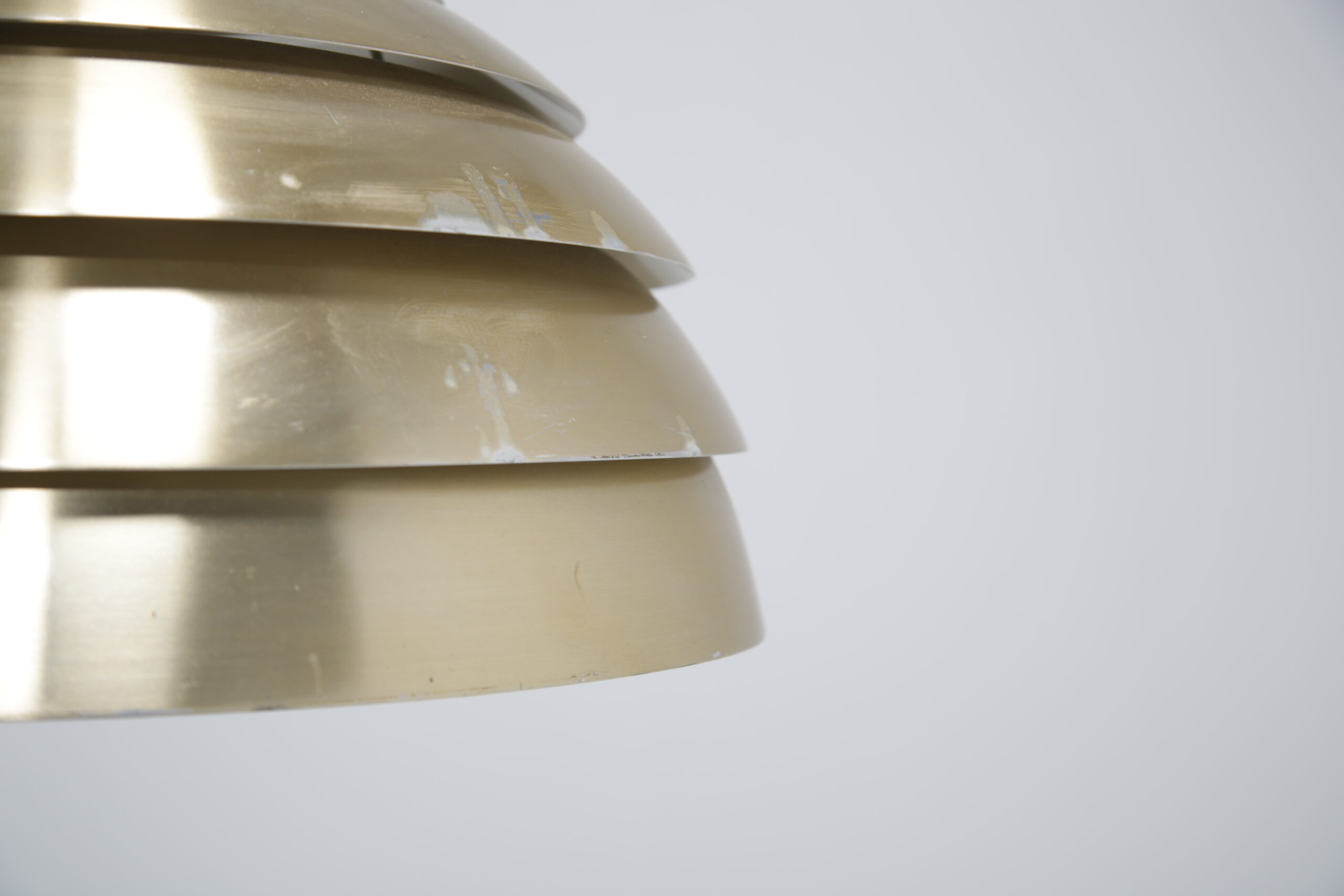 Bring a cozy atmosphere to your dining or living room area with this stunning ceiling lamp, designed by Hans-Agne Jakobsson in the 1960s. The design is replicating a beehive, with each level allowing light to protrude creating a soft glow when lit. The lamp is manufactured in aluminum which is spray-painted during manufacturing.