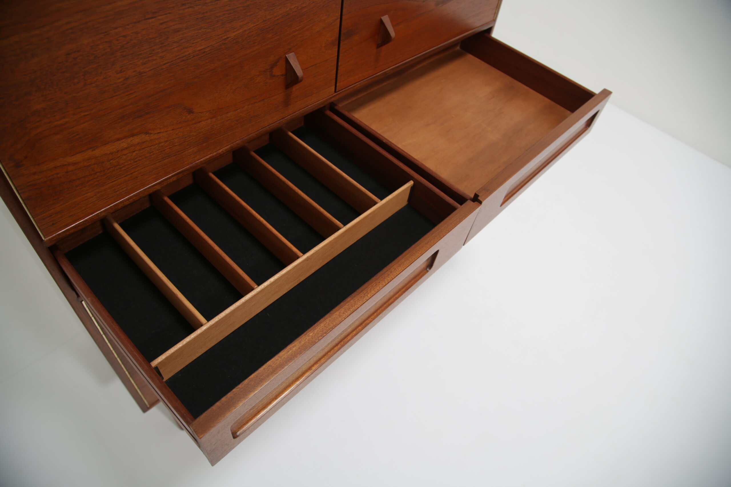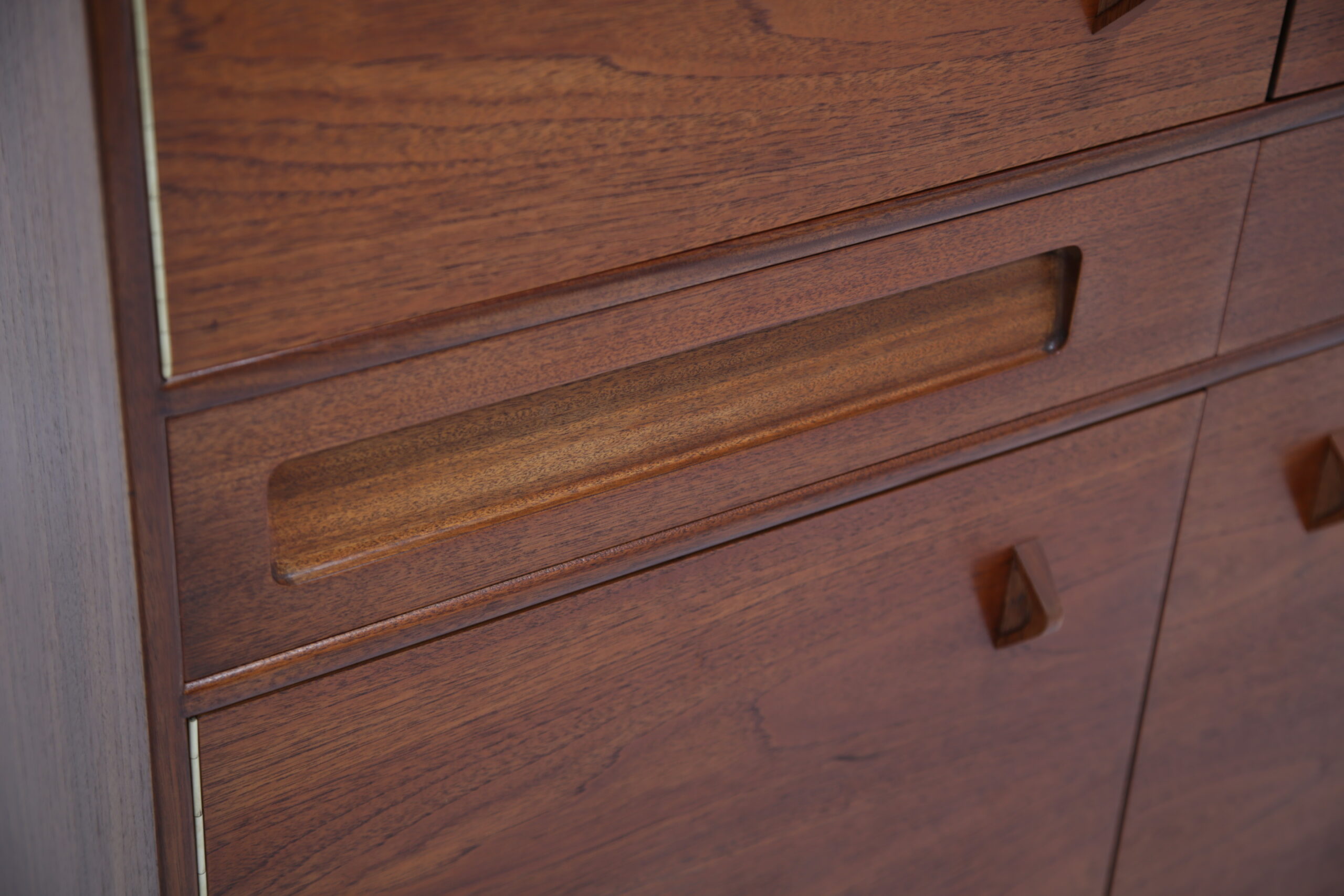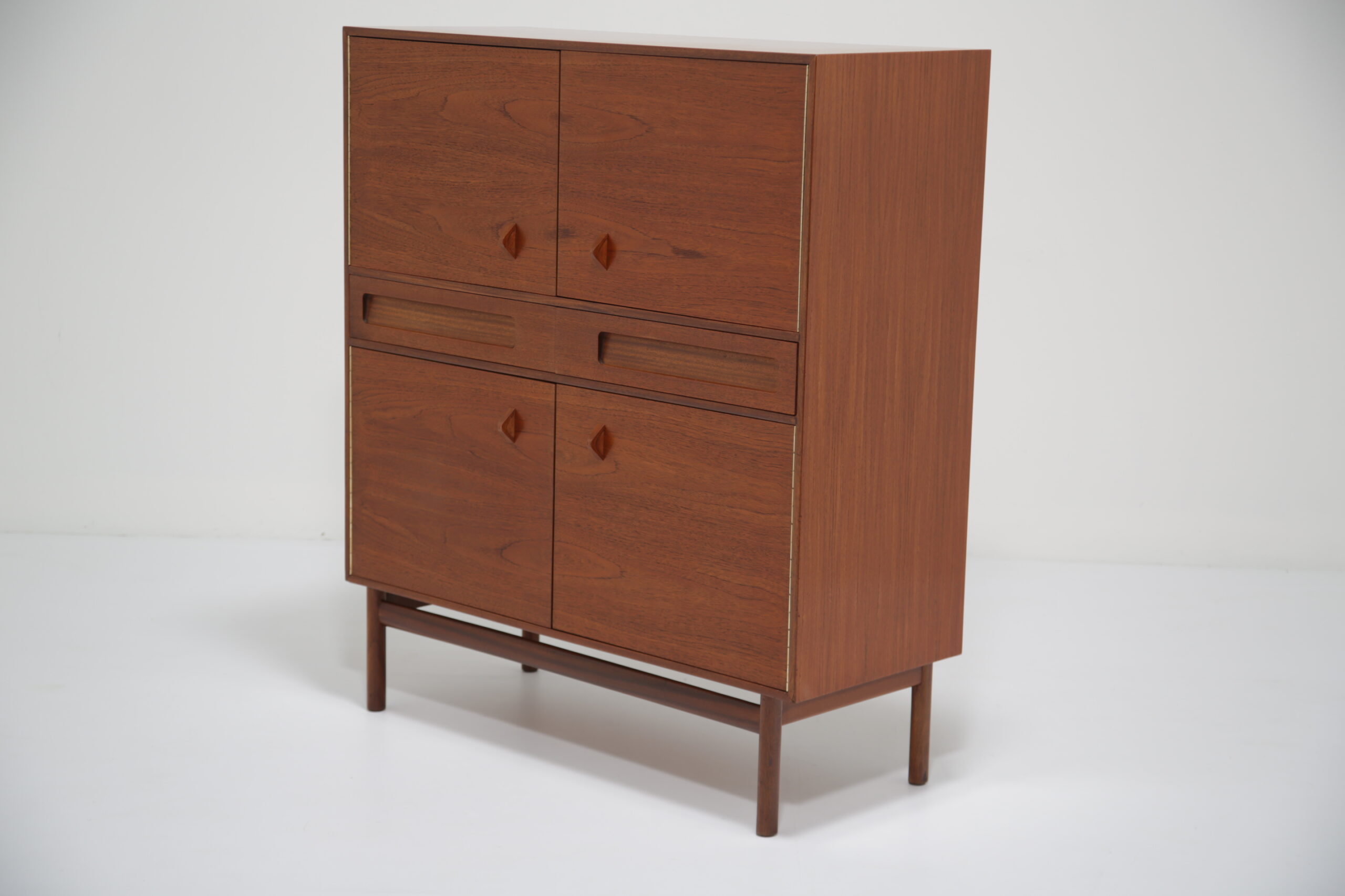 Some might describe this as a cocktail bar cabinet, others as a sideboard. This is a unit that will function as both. Featuring four cabinets and two pull out drawers, this unit offers plenty of space for storing anything from crockery, spirits, glassware to boardgames and much more. The unit has been expertly restored by our talented in-house restoration team and the unit is in excellent condition, we have brought this back to it’s former glory.