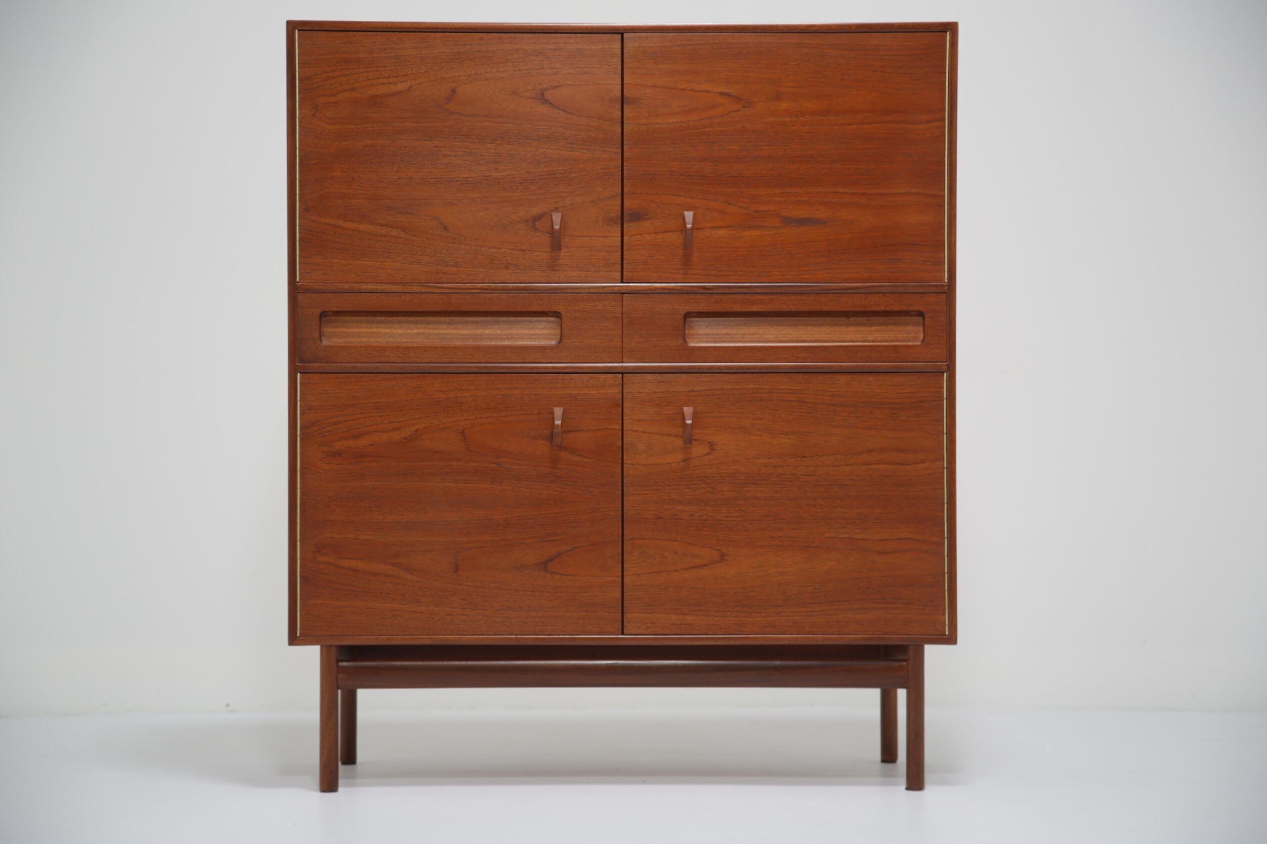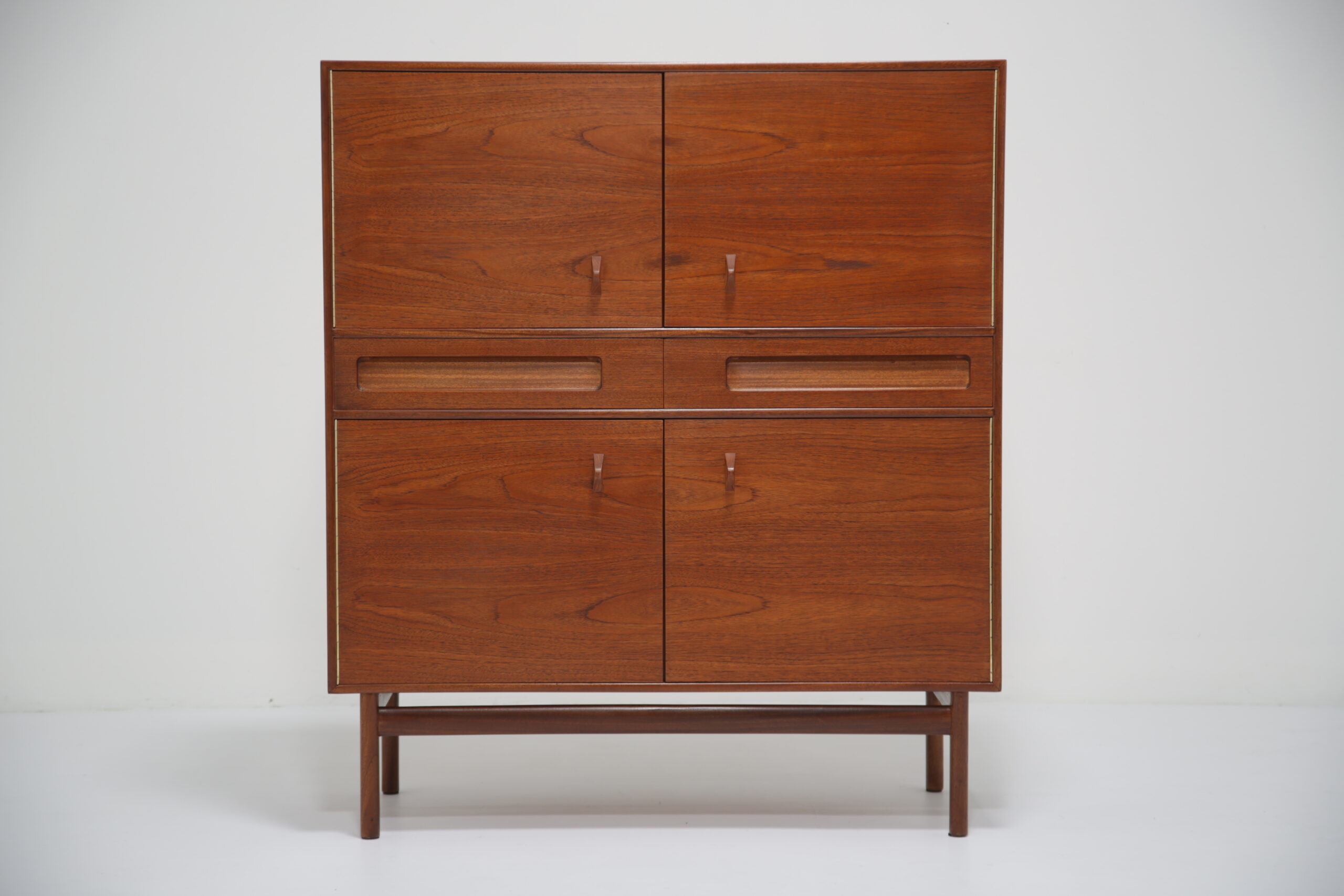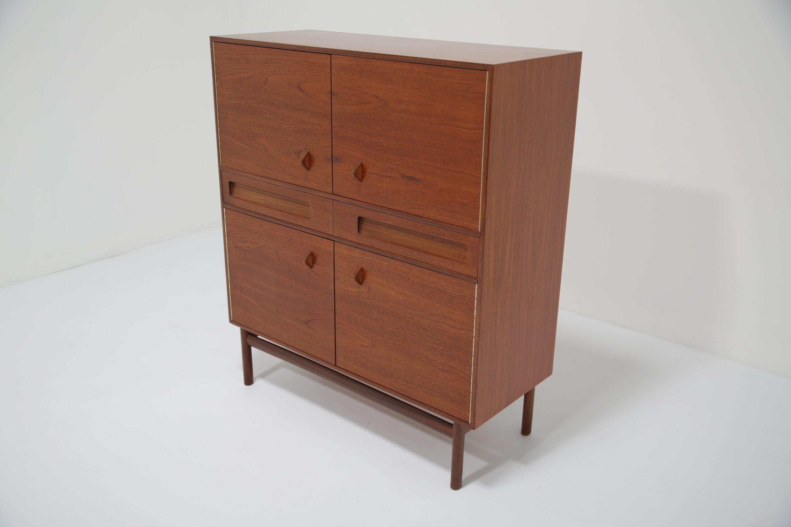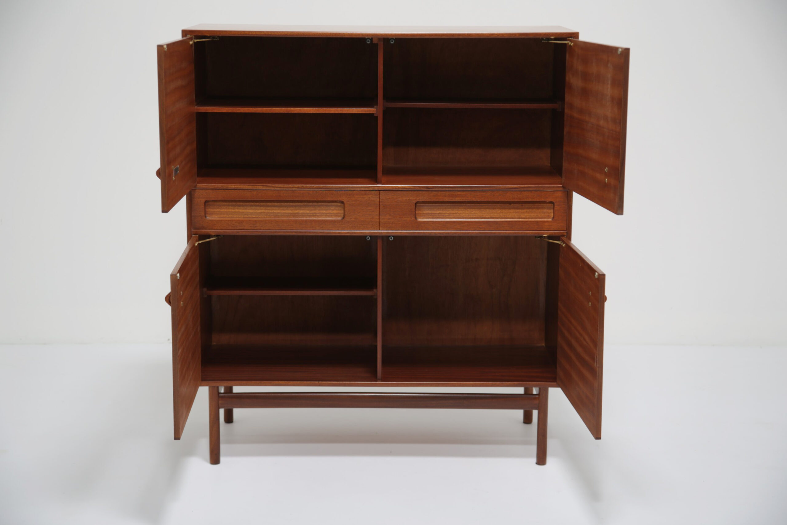 Some might describe this as a cocktail bar cabinet, others as a sideboard. This is a unit that will function as both. Featuring four cabinets and two pull out drawers, this unit offers plenty of space for storing anything from crockery, spirits, glassware to boardgames and much more. The unit has been expertly restored by our talented in-house restoration team and the unit is in excellent condition, we have brought this back to it’s former glory.