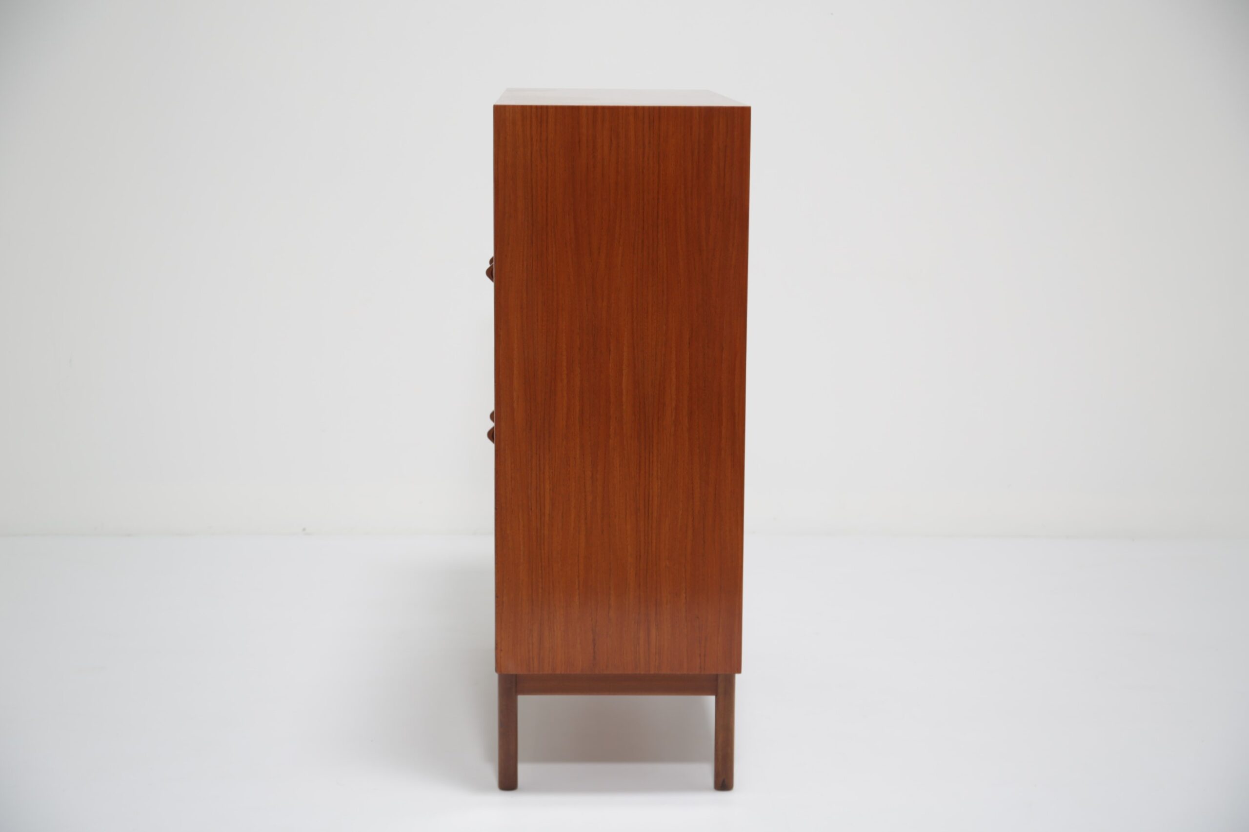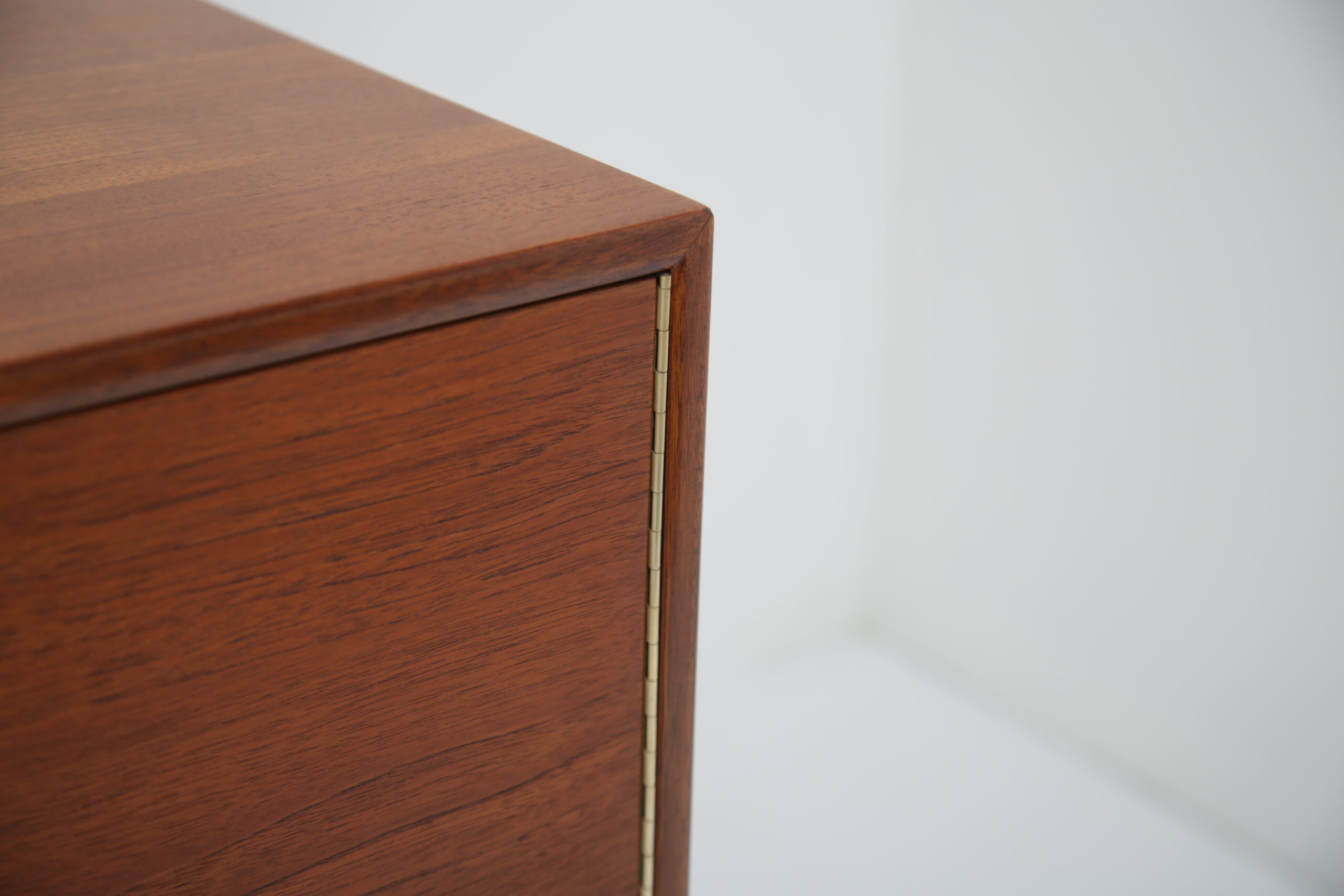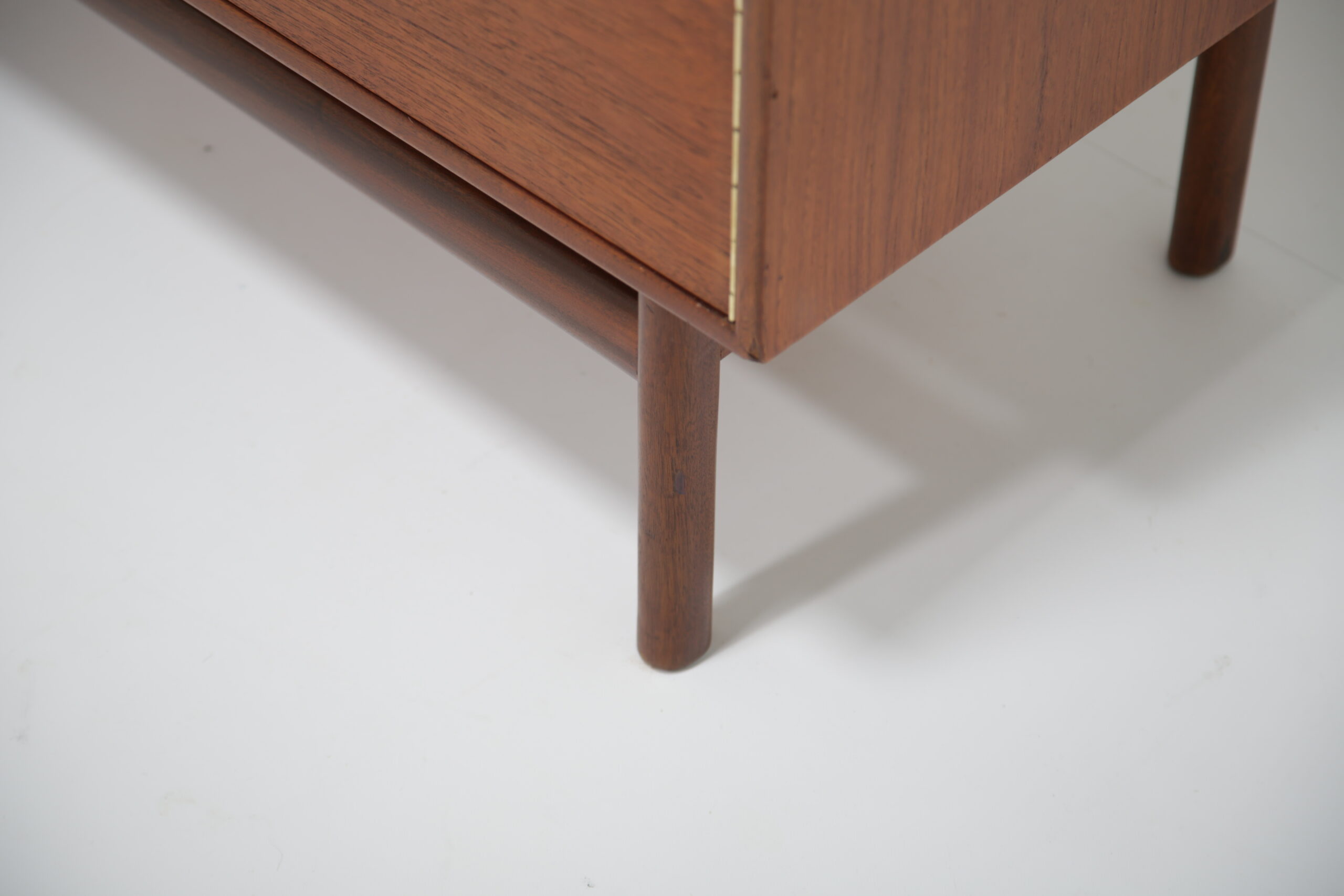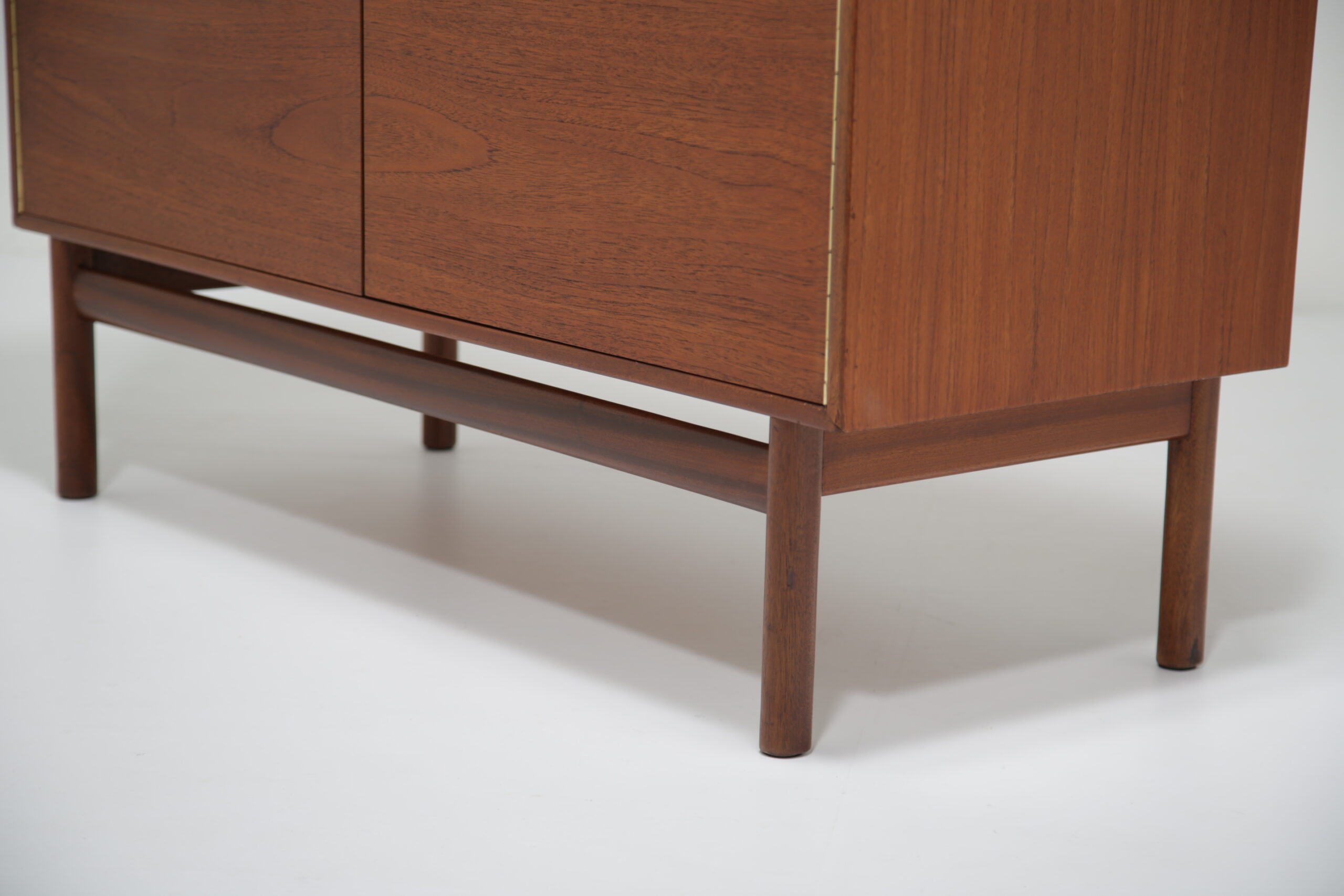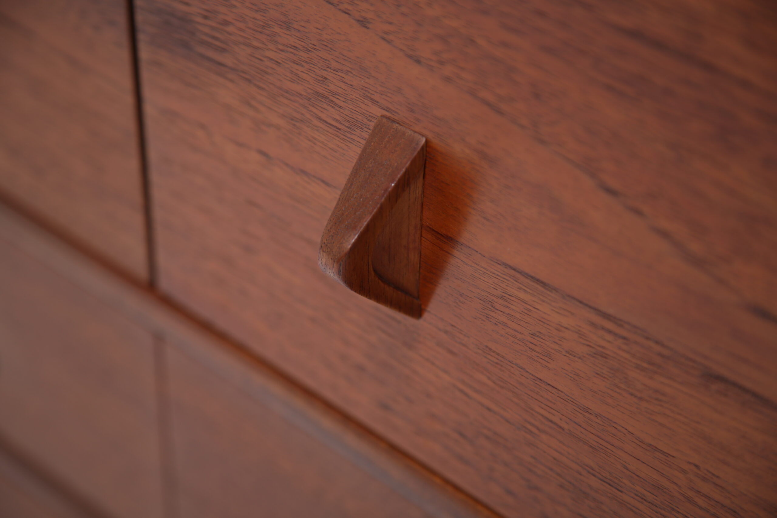 The design is minimalistic with clean lines, rounded legs but the sculpted handles stand out with nicely grooved out sides for the perfect grip. The left two cabinets both have fixed shelves whereas the right side has a fixed half shelf and one section that is fully open that would allow storage of larger vases, bottles, etc.