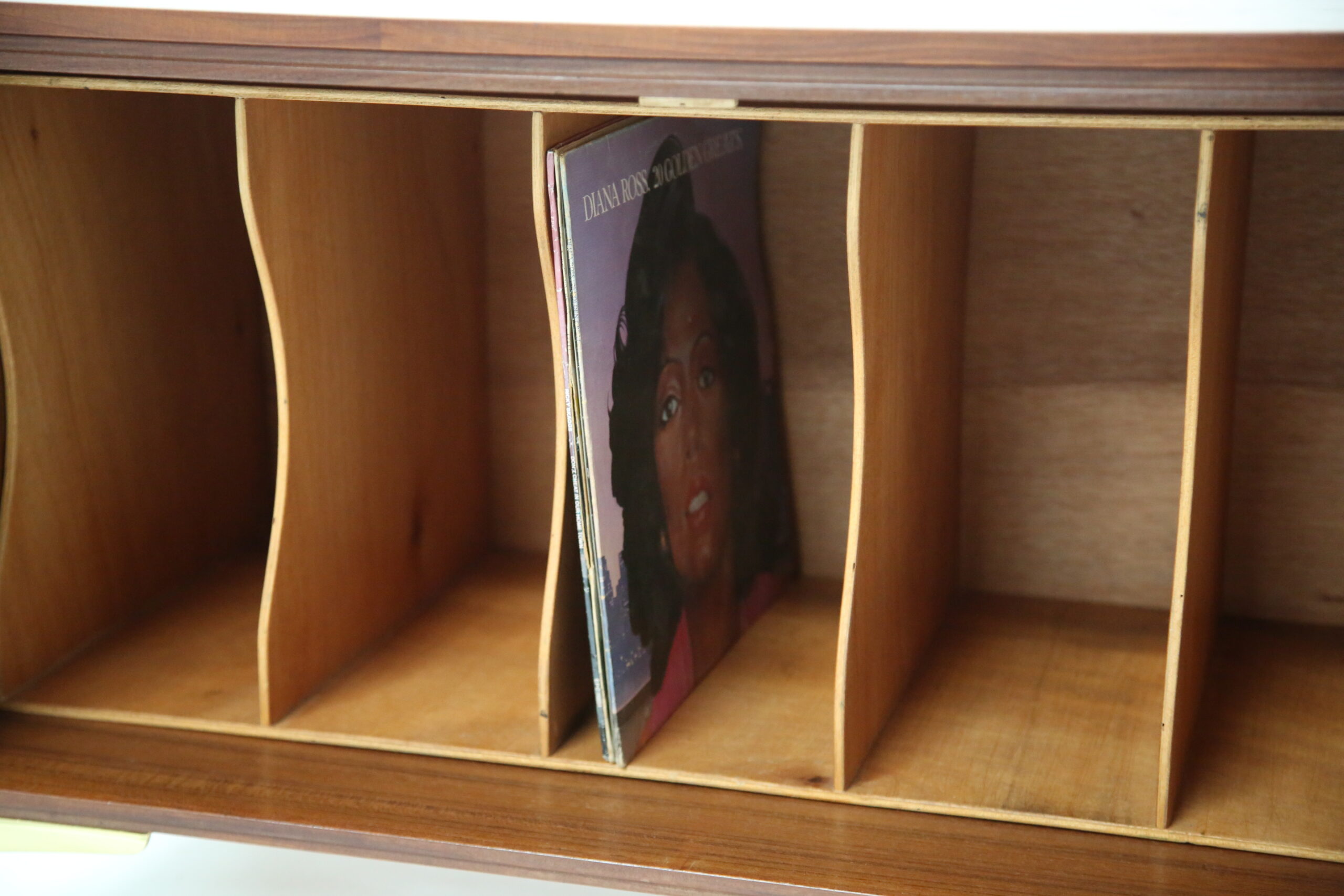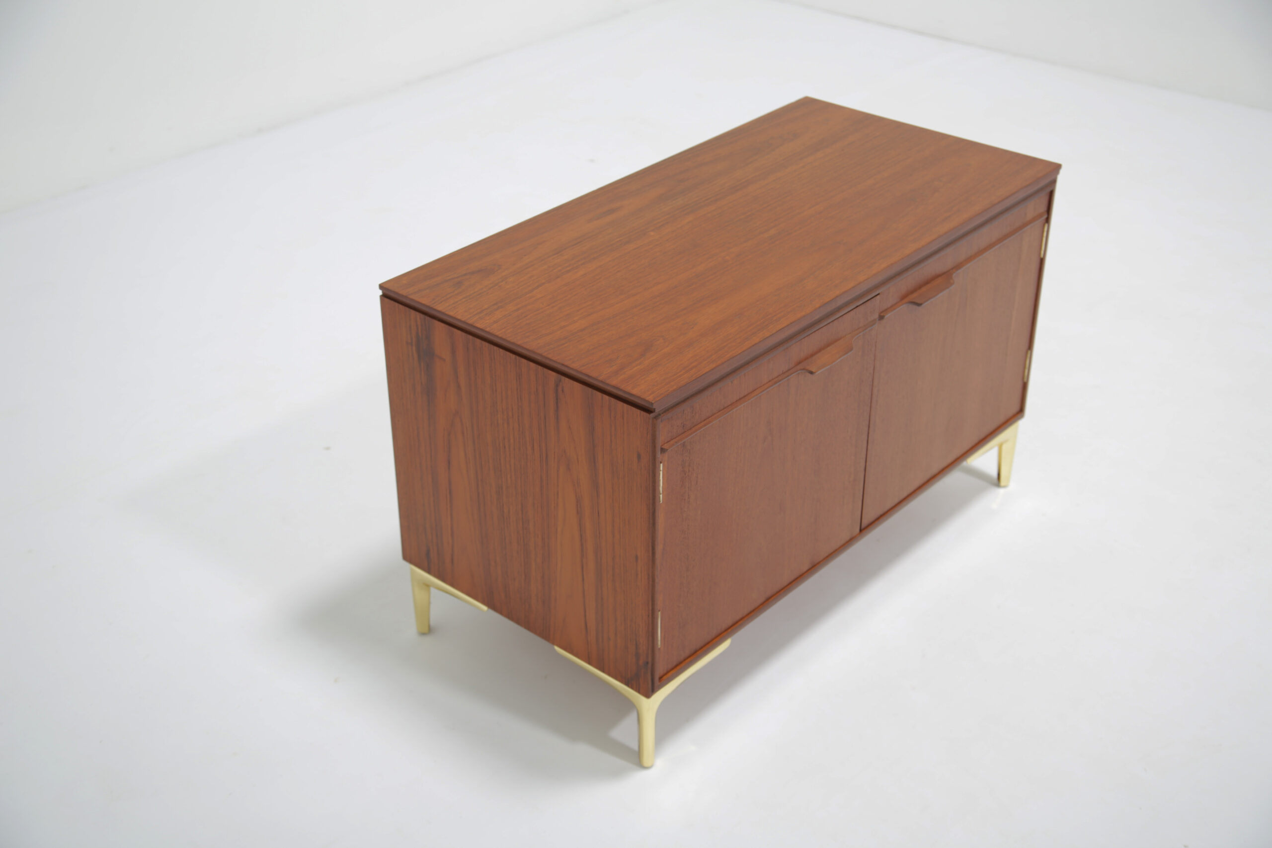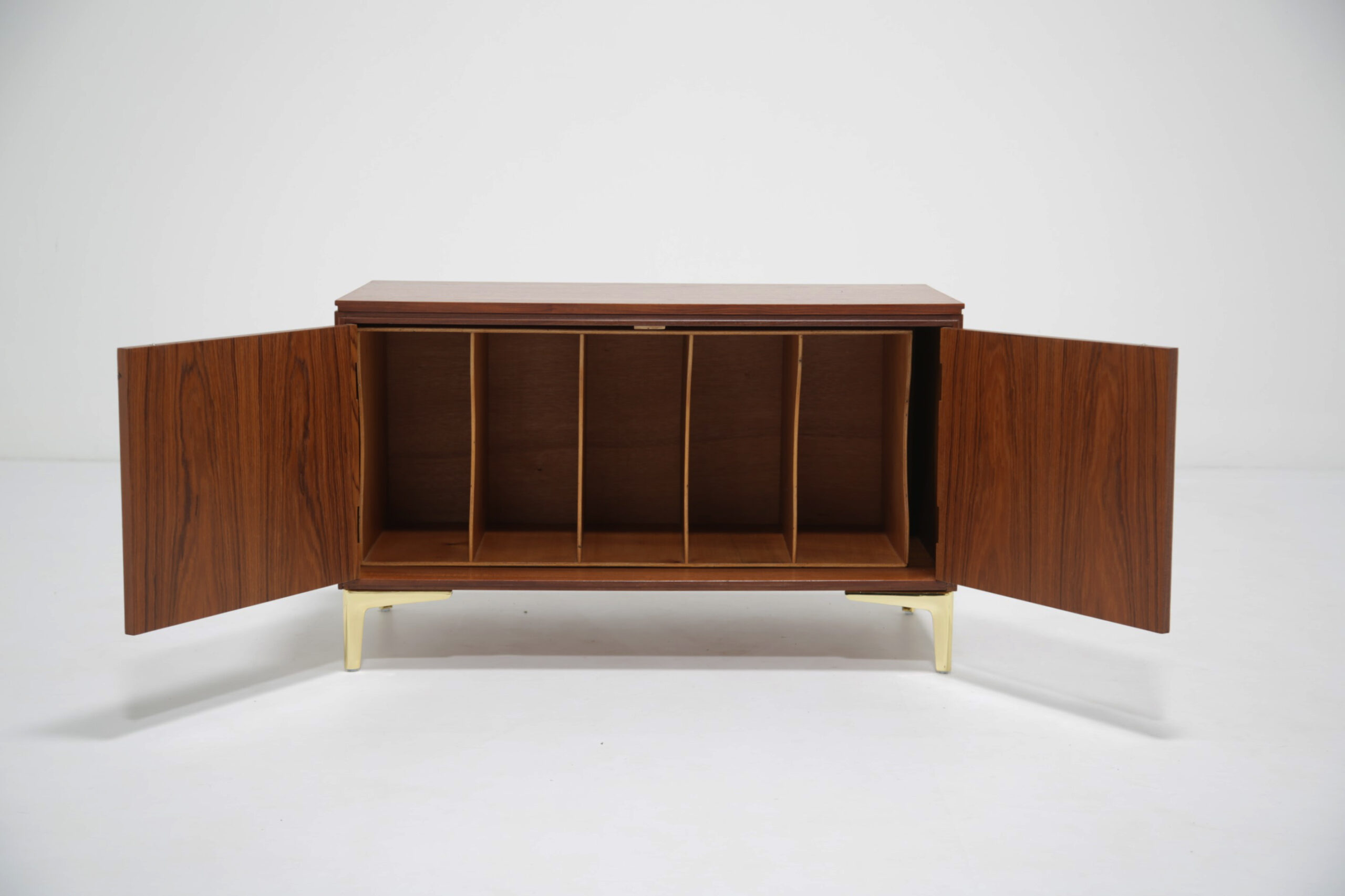Store your beloved records with our stunning Swedish teak records holder unit paired with four brass feet. This unit is compact but will give you plenty of storage for your vinyl’s. The design is sleek, minimalistic with clean straight lines with two sculpted handles. The teak grain is beautifully pronounced on the sides and top.