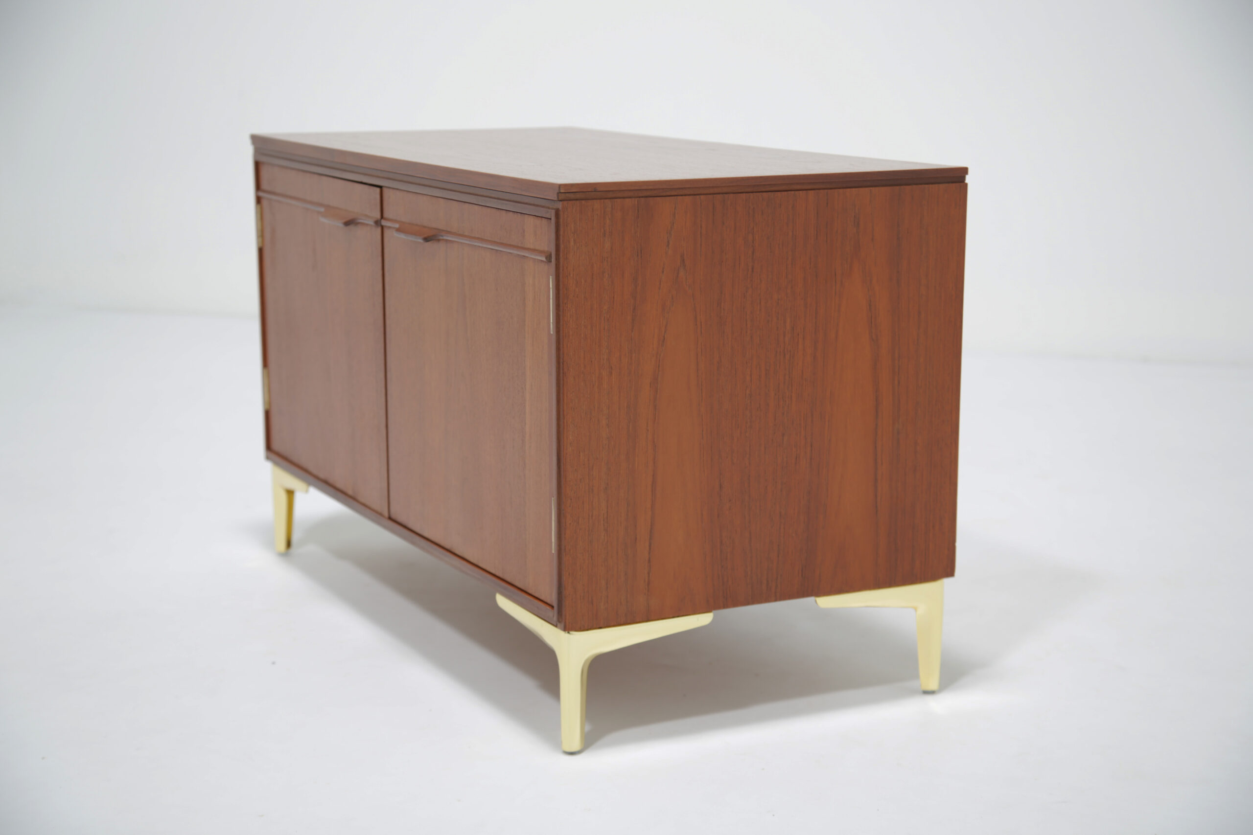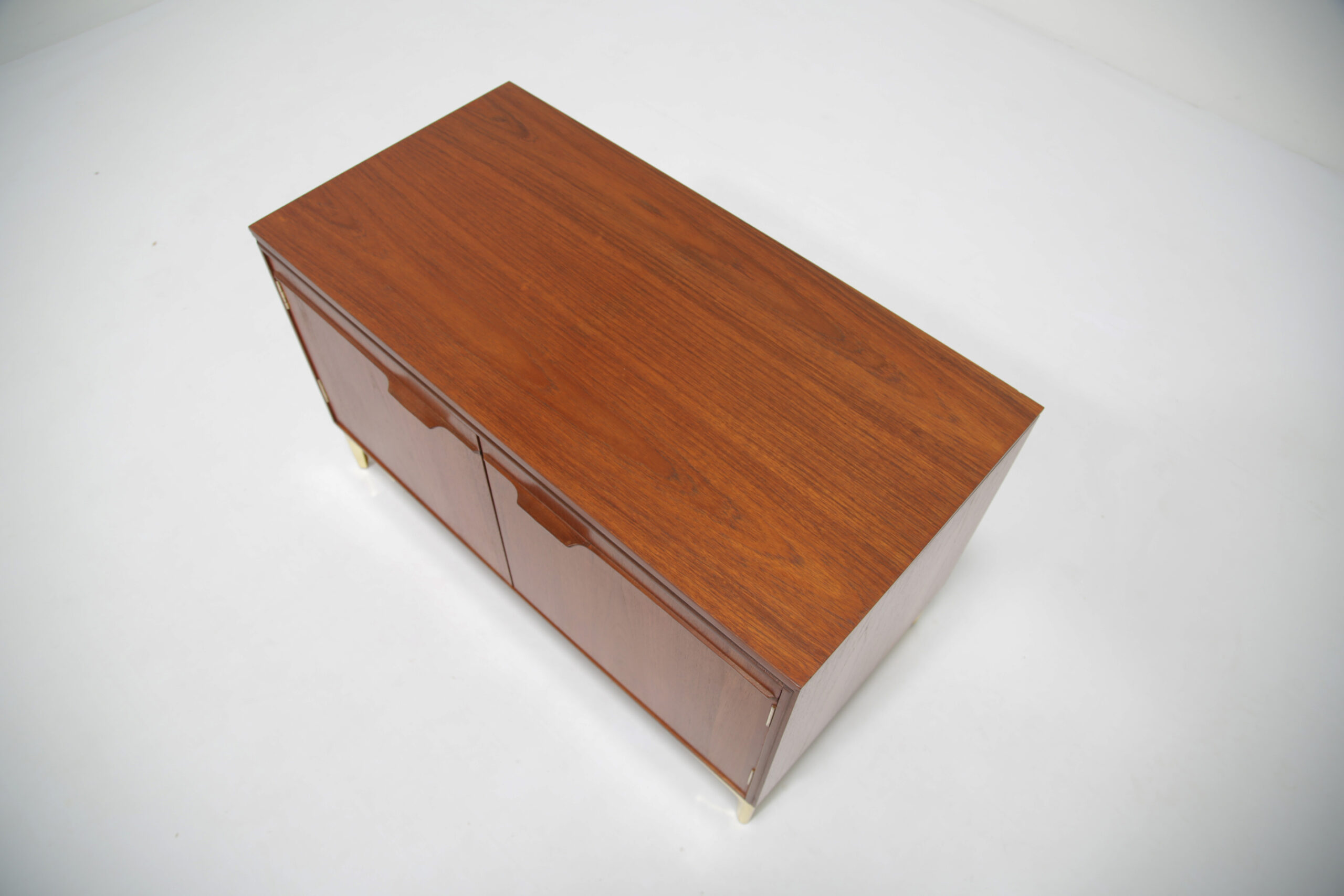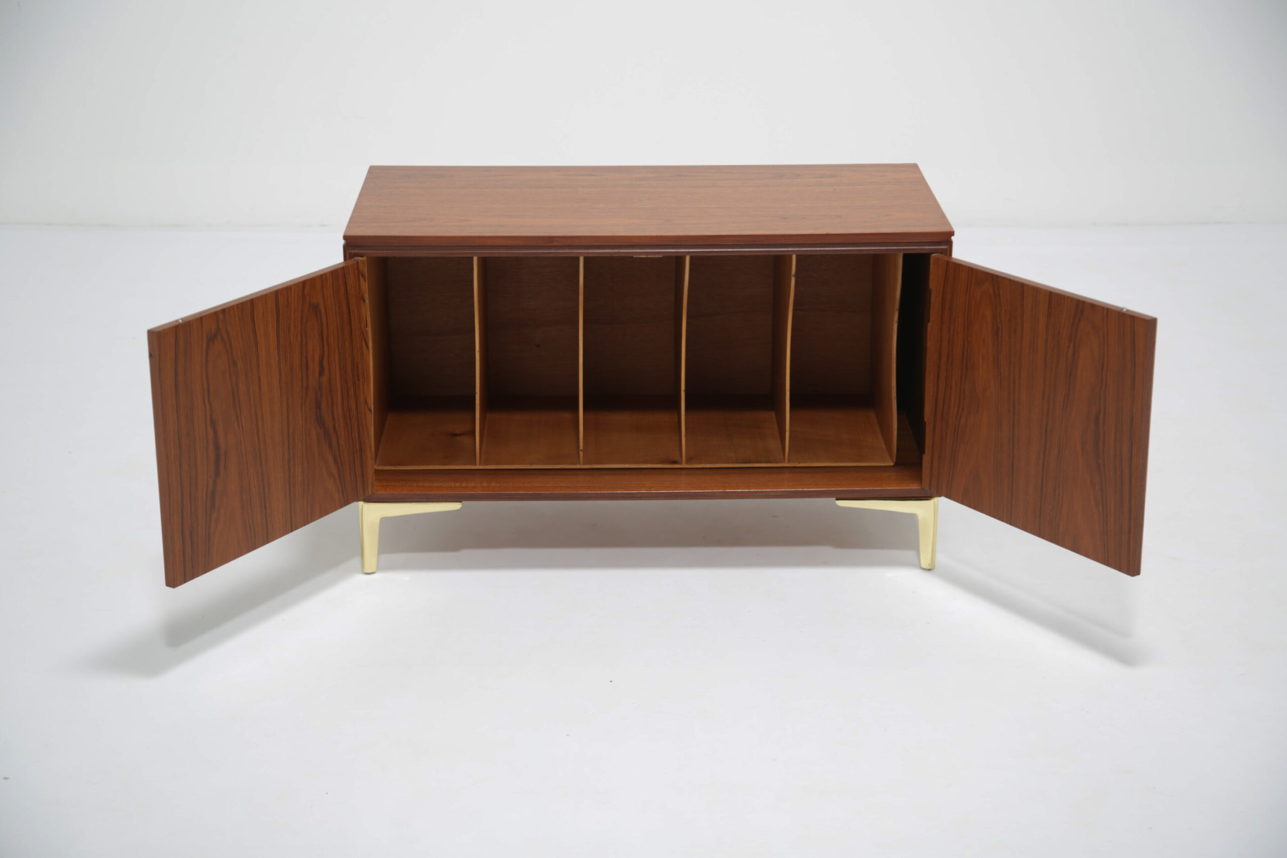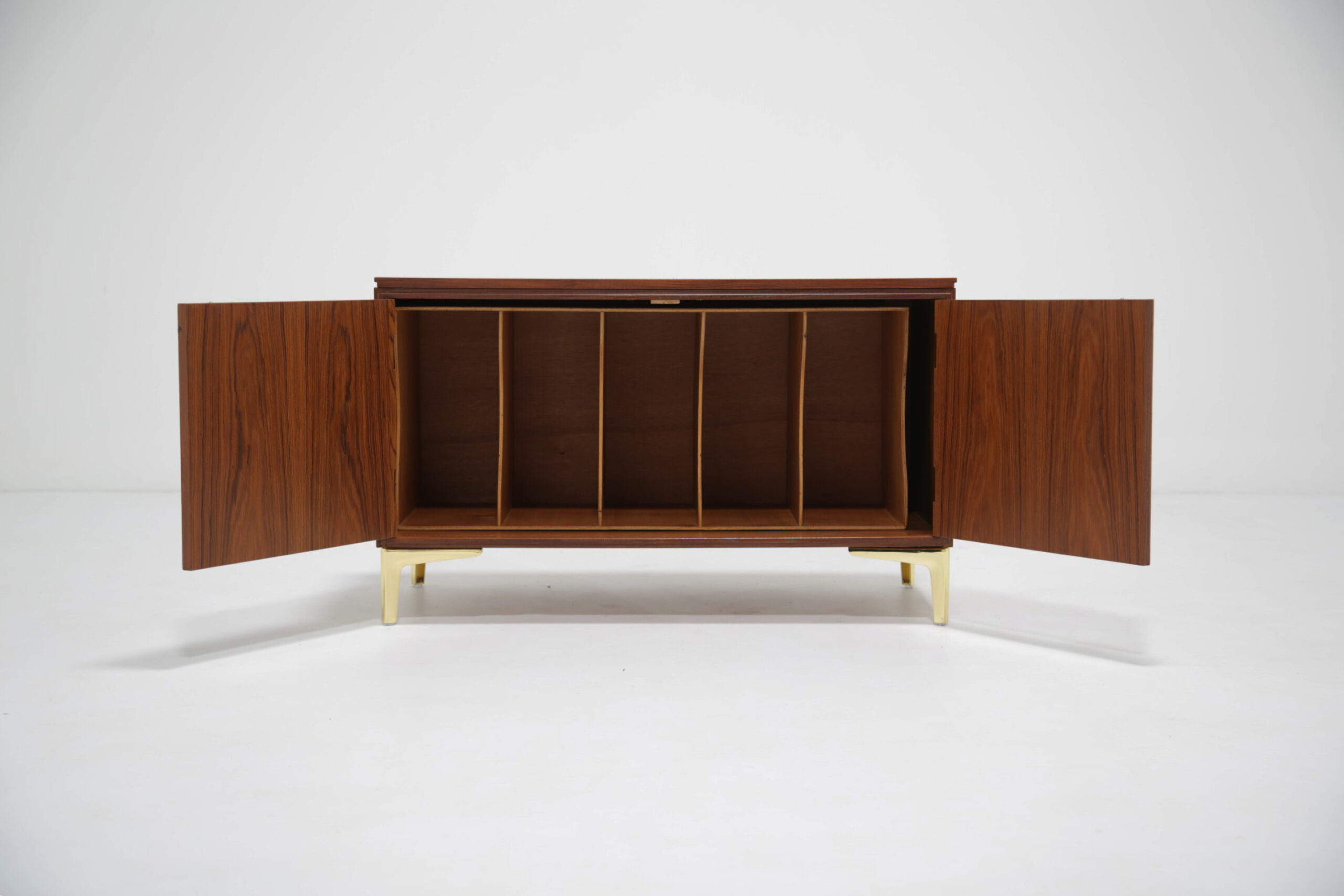Store your beloved records with our stunning Swedish teak records holder unit paired with four brass feet. This unit is compact but will give you plenty of storage for your vinyl’s. The design is sleek, minimalistic with clean straight lines with two sculpted handles. The teak grain is beautifully pronounced on the sides and top.